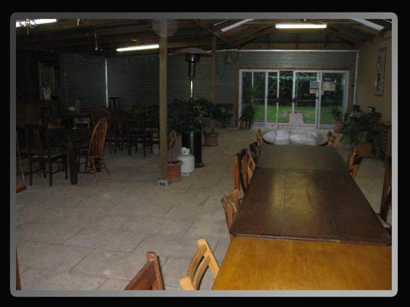 Attached building: This large entertaining area was run as a restaurant/caf and is still currently licensed. The main area is fully paved, disabled toilets, display room with polished timber floor, pizza oven, open kitchen/store room with roller access door along with another spare room. This area could easily be set up as a self contained flat and still retain the entertaining area.