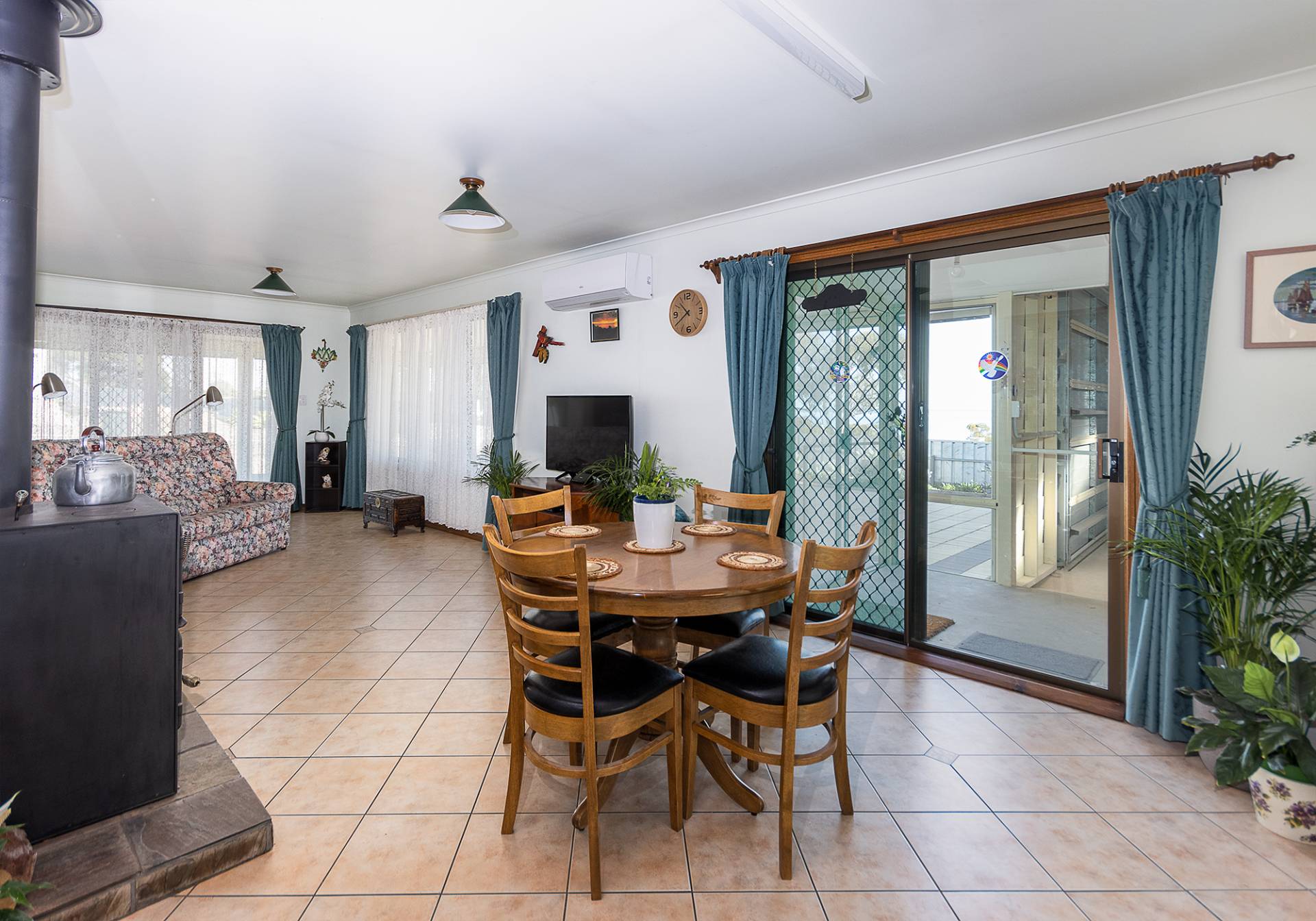 Brick veneer homestead style home comprising 3 to 4 bedrooms with the main offering a walk-through robe to an ensuite. There is a huge living and dining area with a slow combustion heater and split system air conditioner. The kitchen has Baltic pine style cupboards with a wall oven, hotplate and large walk-in pantry. The bathroom has a bath, separate shower and vanity and the large laundry is well located. Outside has so much to offer as well with the 6m x 9m Carport with auto roller door plus a 6m x 15m garage with a separate studio for you to utilize to suit your needs. Loads or rainwater to the house plus a bonus solar power system. Fishing, crabbing and relaxation are a drawcard to this quiet seaside community.