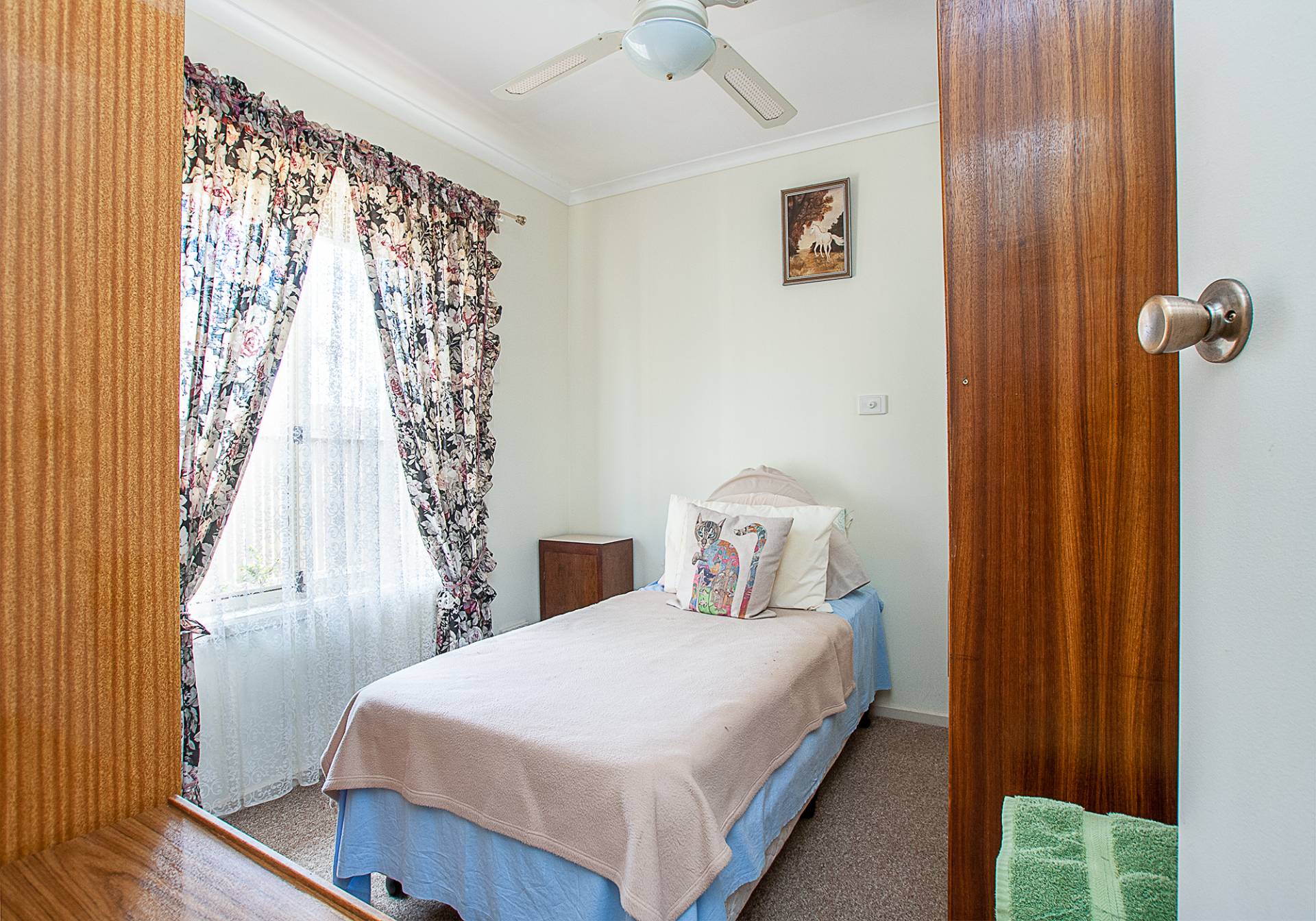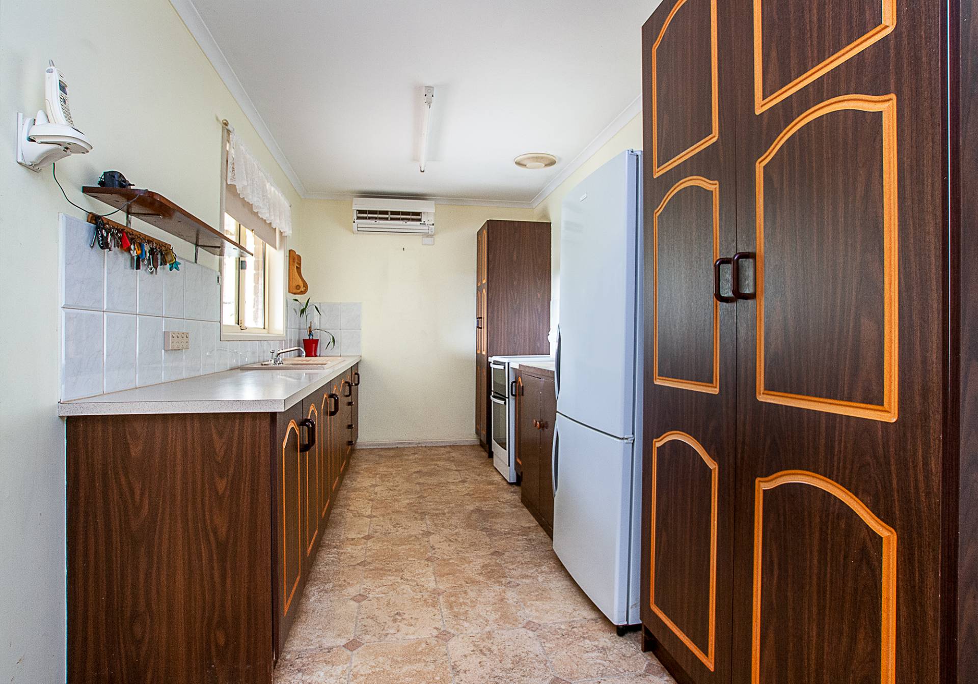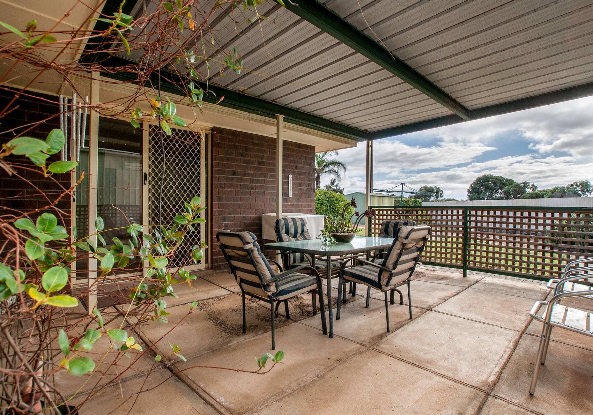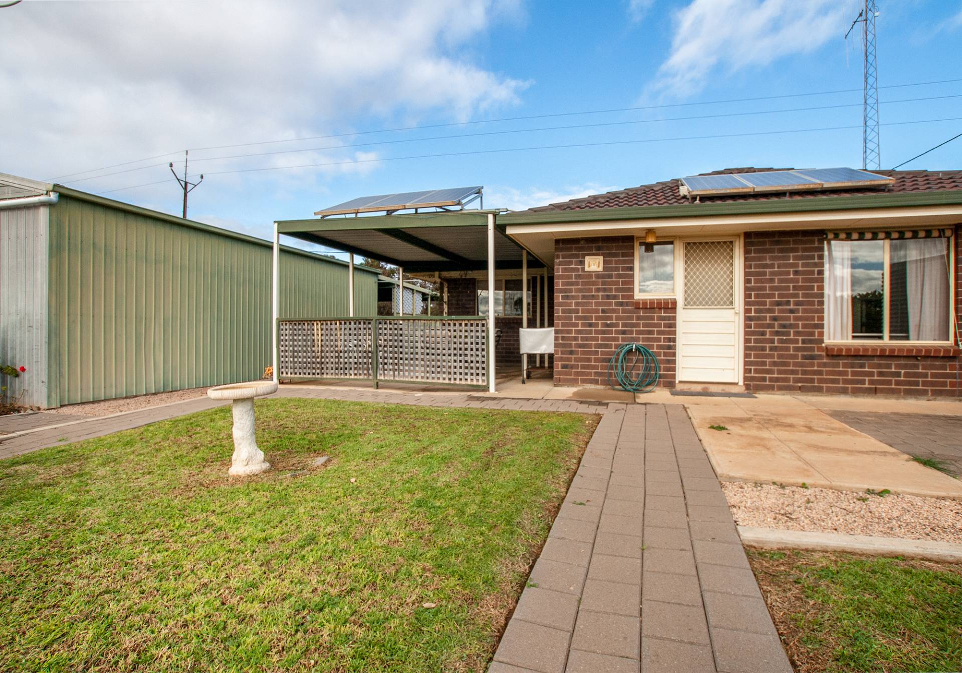 This 3 bedroom brick veneer home consists of master bedroom with built-in robe, ceiling fan, split system a/c and access to the bathroom, bedroom 2 with split system a/c, lounge room with c/f and split system a/c, kitchen, dining/family room with split system a/c, bathroom with shower, bath and vanity, separate w/c and laundry. Outside has back verandah, established gardens, 20 x 30 shed with front apron, lean-to, concrete floor and power, tool shed, rainwater tank and fenced yard on a large 1120 square corner allotment. This home has approx. 1KW solar system and front roller shutters.
