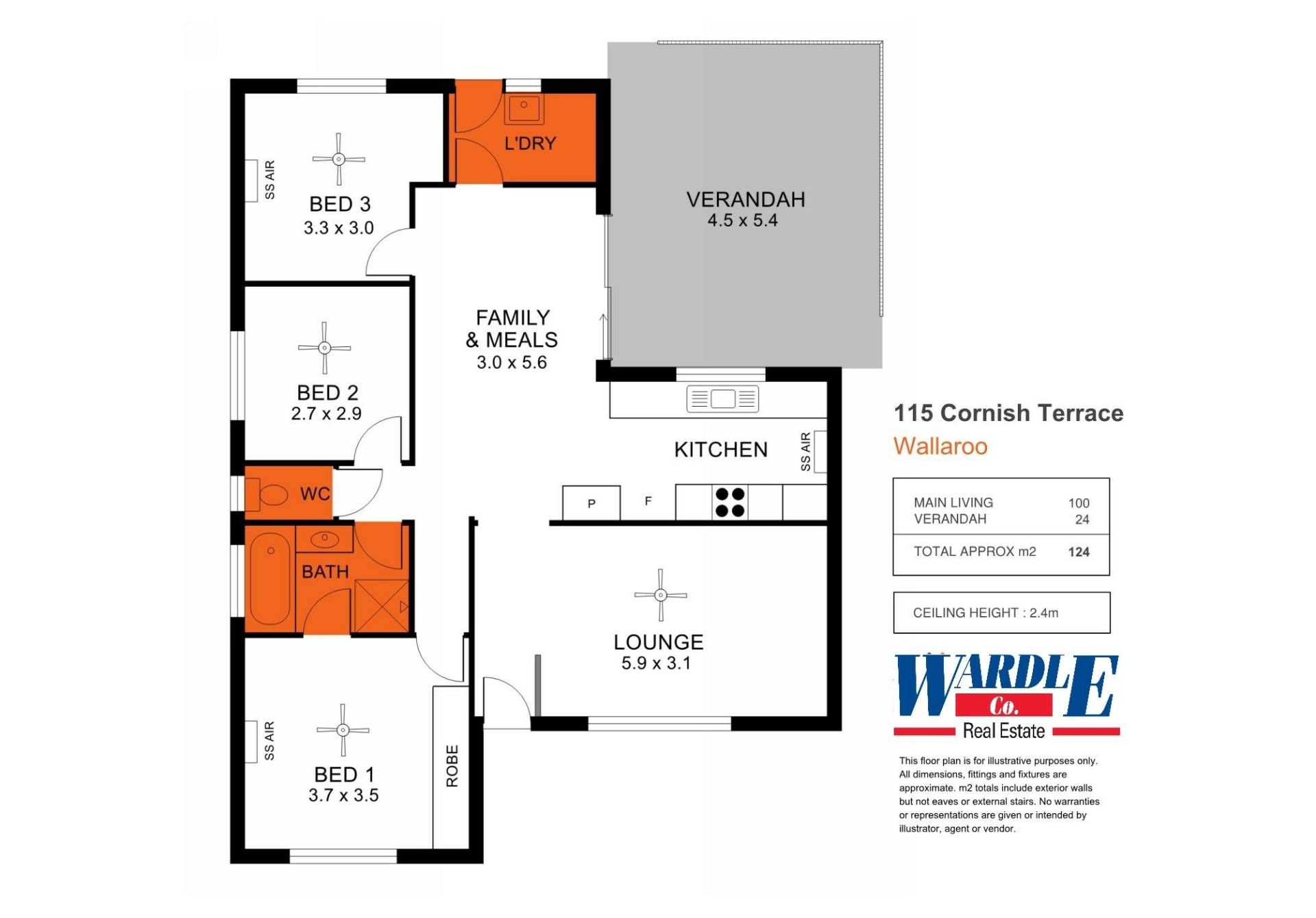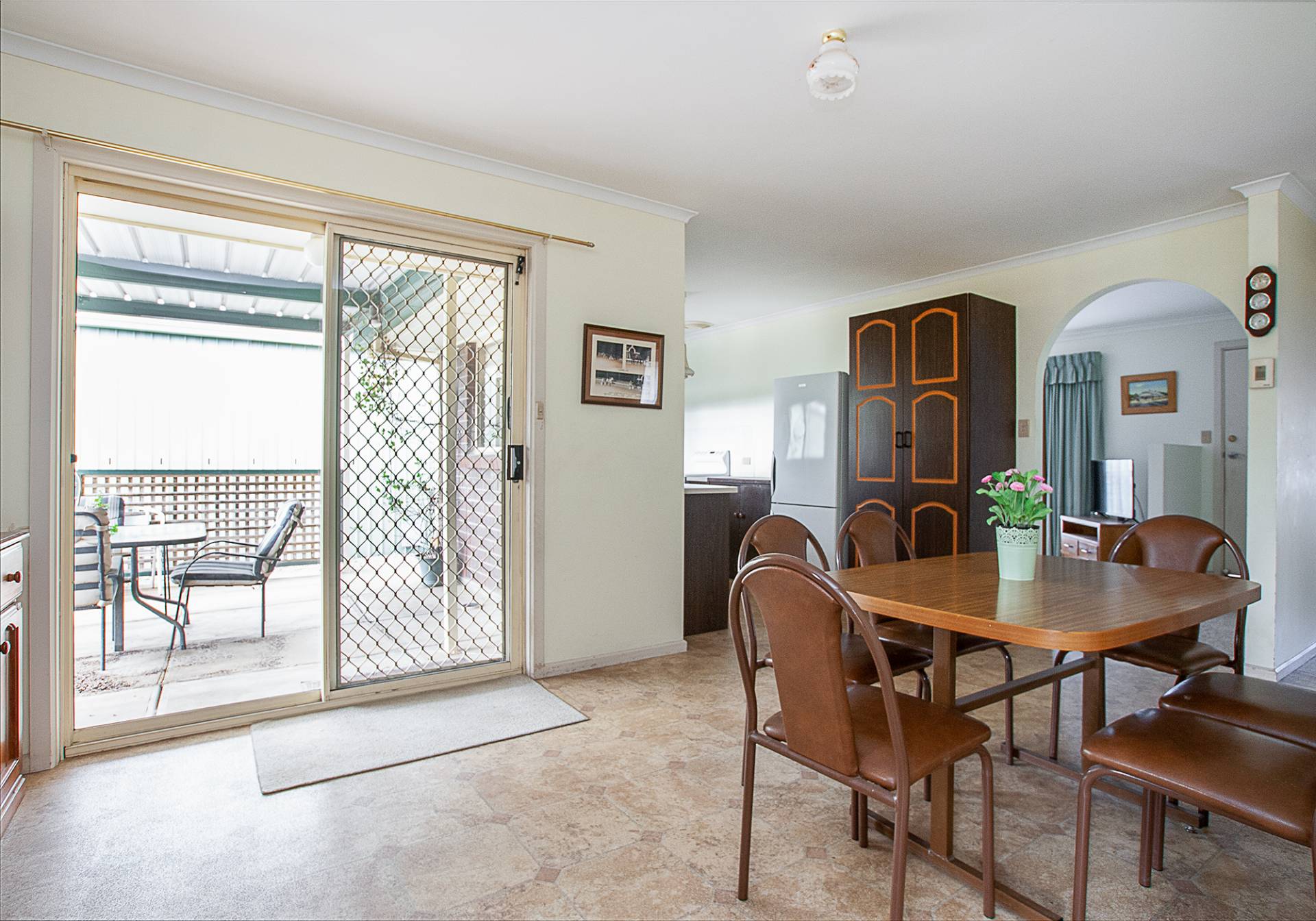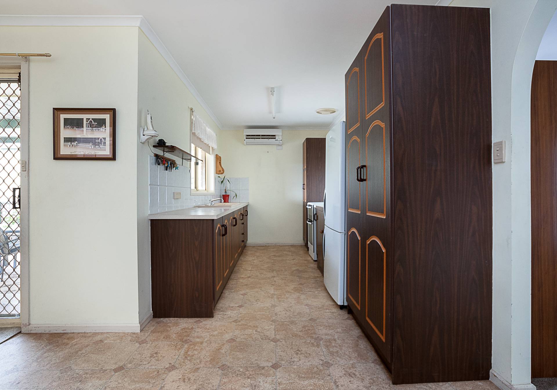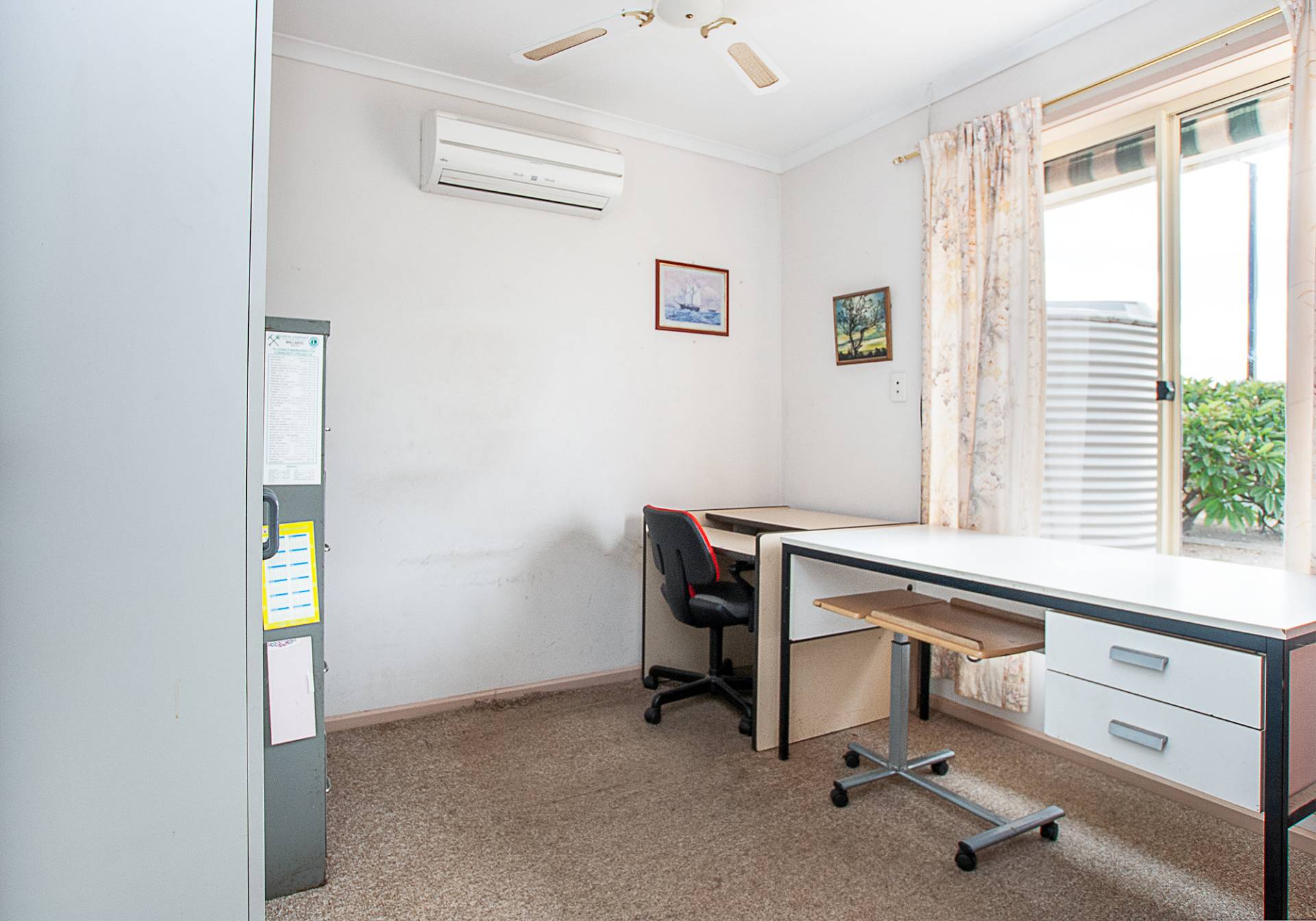 This 3 bedroom brick veneer home consists of master bedroom with built-in robe, ceiling fan, split system a/c and access to the bathroom, bedroom 2 with split system a/c, lounge room with c/f and split system a/c, kitchen, dining/family room with split system a/c, bathroom with shower, bath and vanity, separate w/c and laundry. Outside has back verandah, established gardens, 20 x 30 shed with front apron, lean-to, concrete floor and power, tool shed, rainwater tank and fenced yard on a large 1120 square corner allotment. This home has approx. 1KW solar system and front roller shutters.