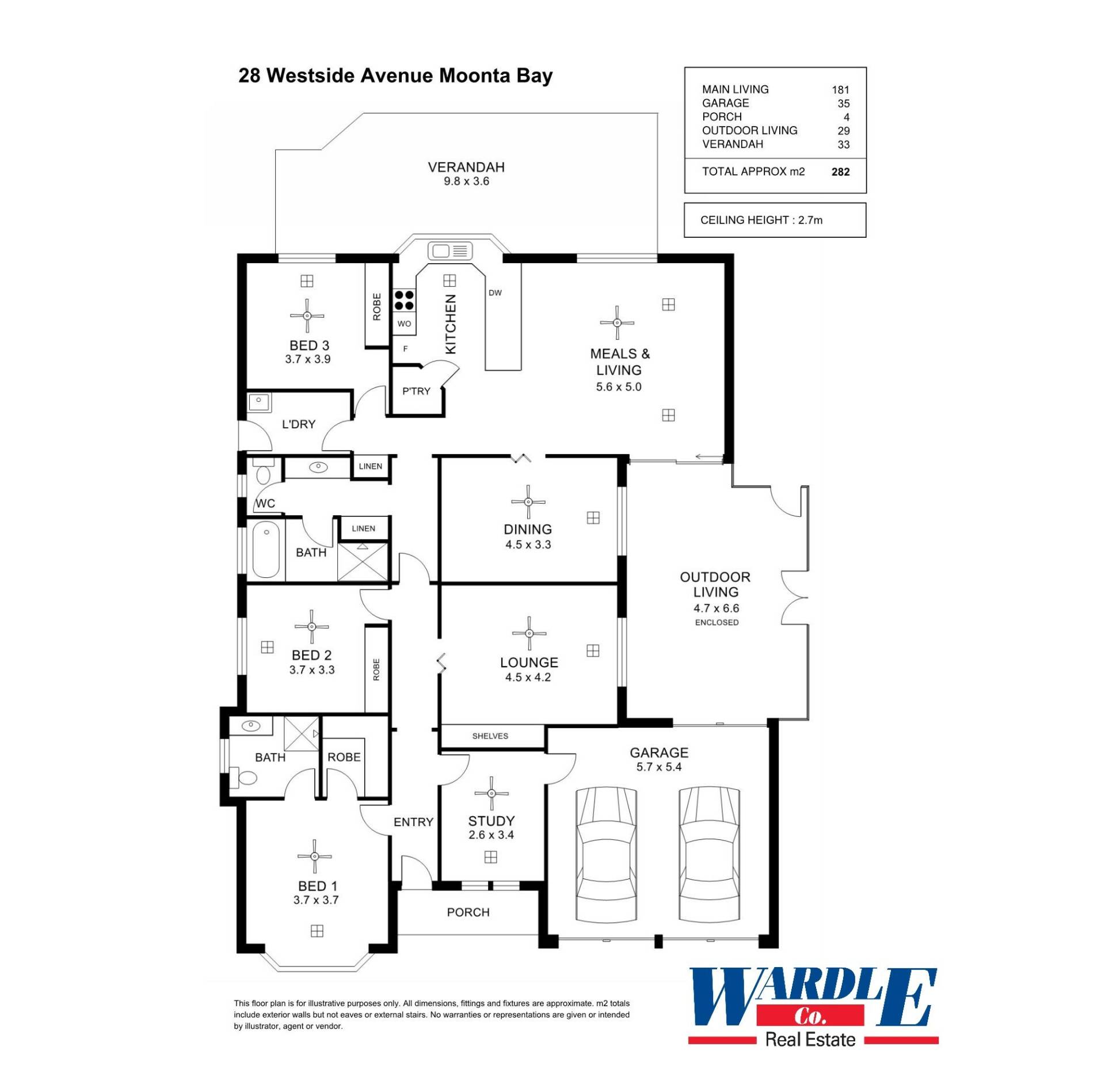 Brick veneer home located on a no through street at Moonta Bay. Comprising 3 bedrooms plus study, master with ensuite & walk in robe. Bedrooms 2 & 3 have built in robes & study offers direct access to the double garage. The living areas are large and include kitchen/dine/family area leading to an outdoor entertaining area, formal dining & formal lounge. Features include new ducted R/C A/C, lots of built-in cupboards, walk in pantry, front entrance verandah, large rain water tank, all on a well fenced allotment.