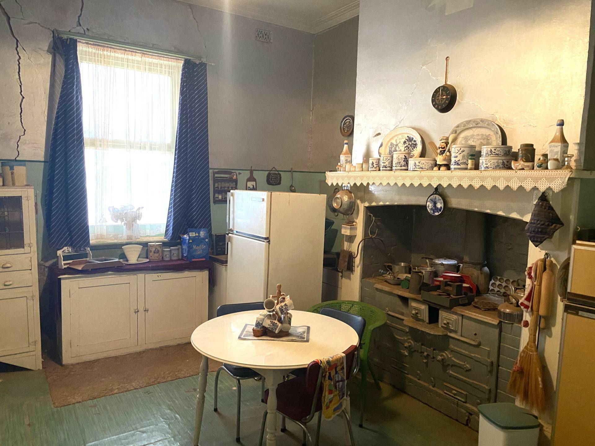 -          The original kitchen features a large wood oven