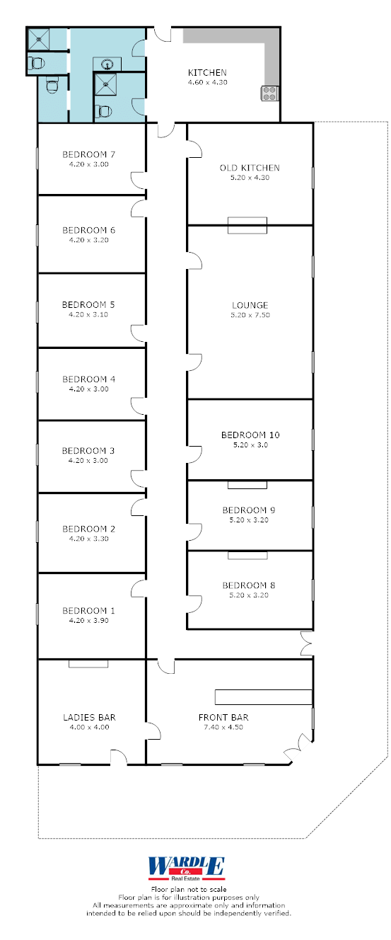 -          10 Bedrooms, 2 bars & 2 bathrooms