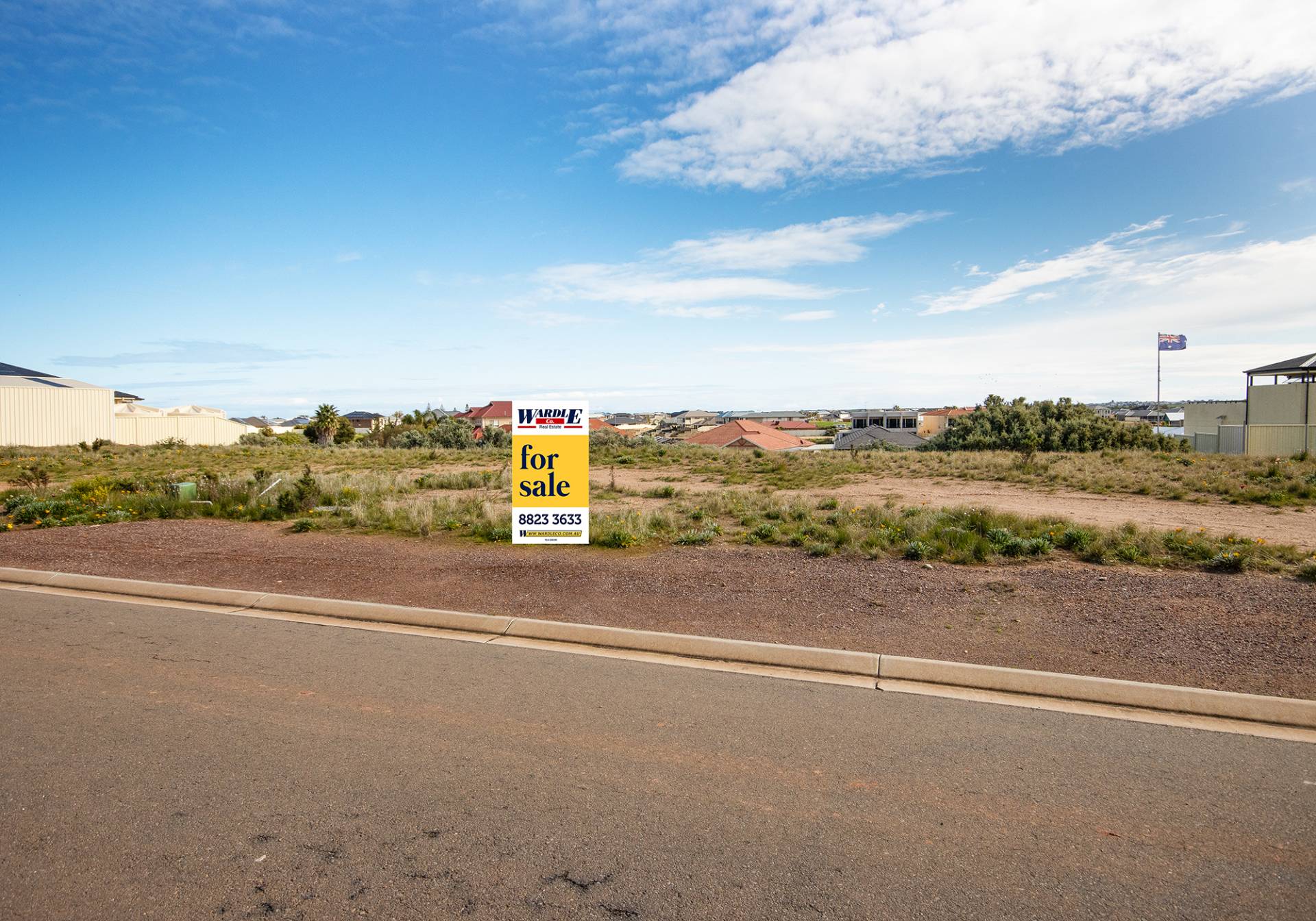 Terrific and rare 26.5m frontage vacant lot in the Copper Cove Marina Wallaroo. Power, water and effluent connections already in place. Invest now, no time limits to build, then get the ball rolling whenever you are ready. Land is selling quickly so don’t miss this opportunity for a wide street frontage allotment.