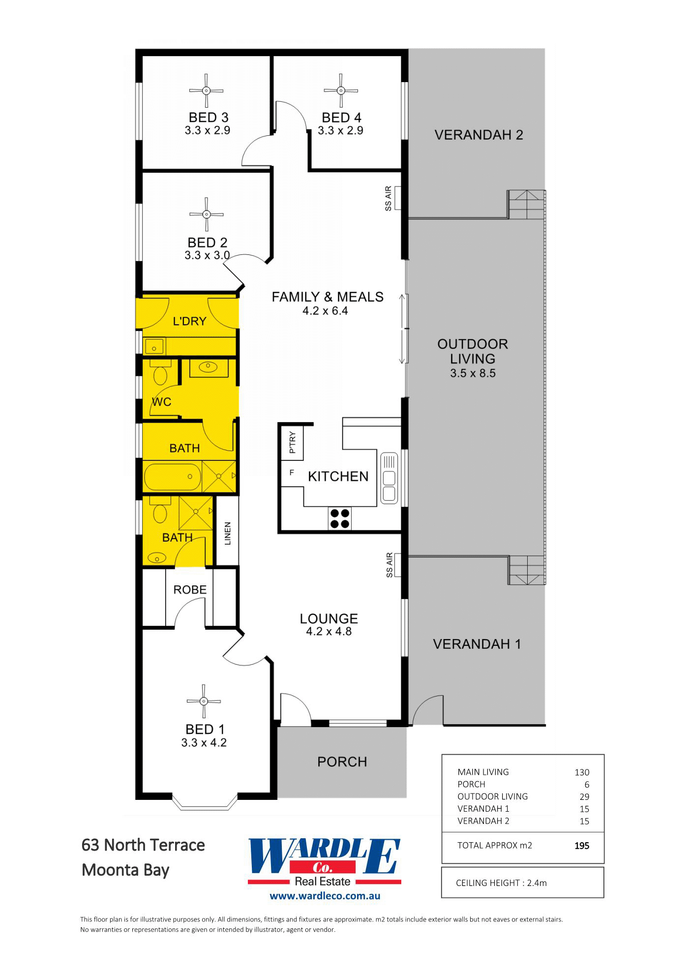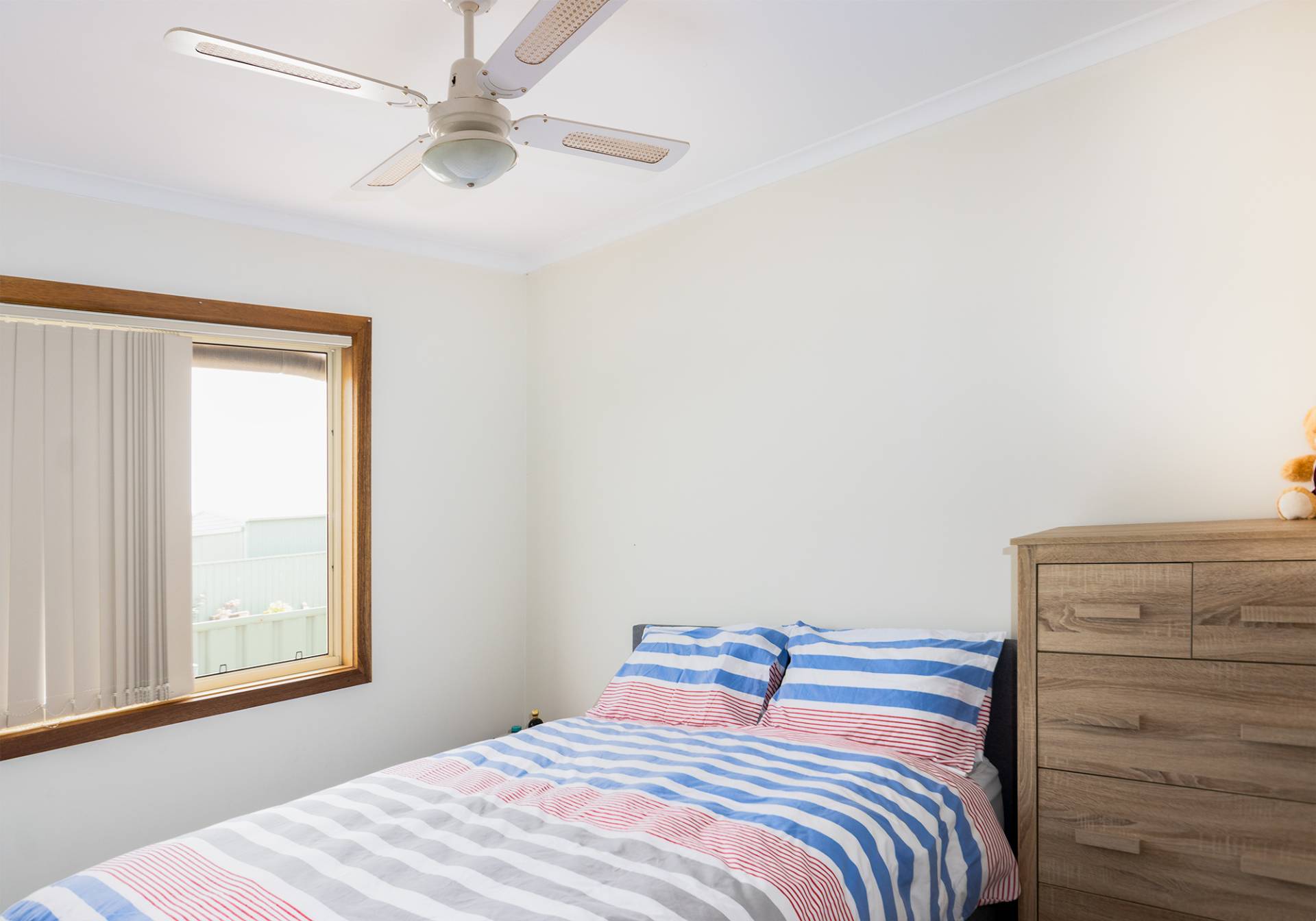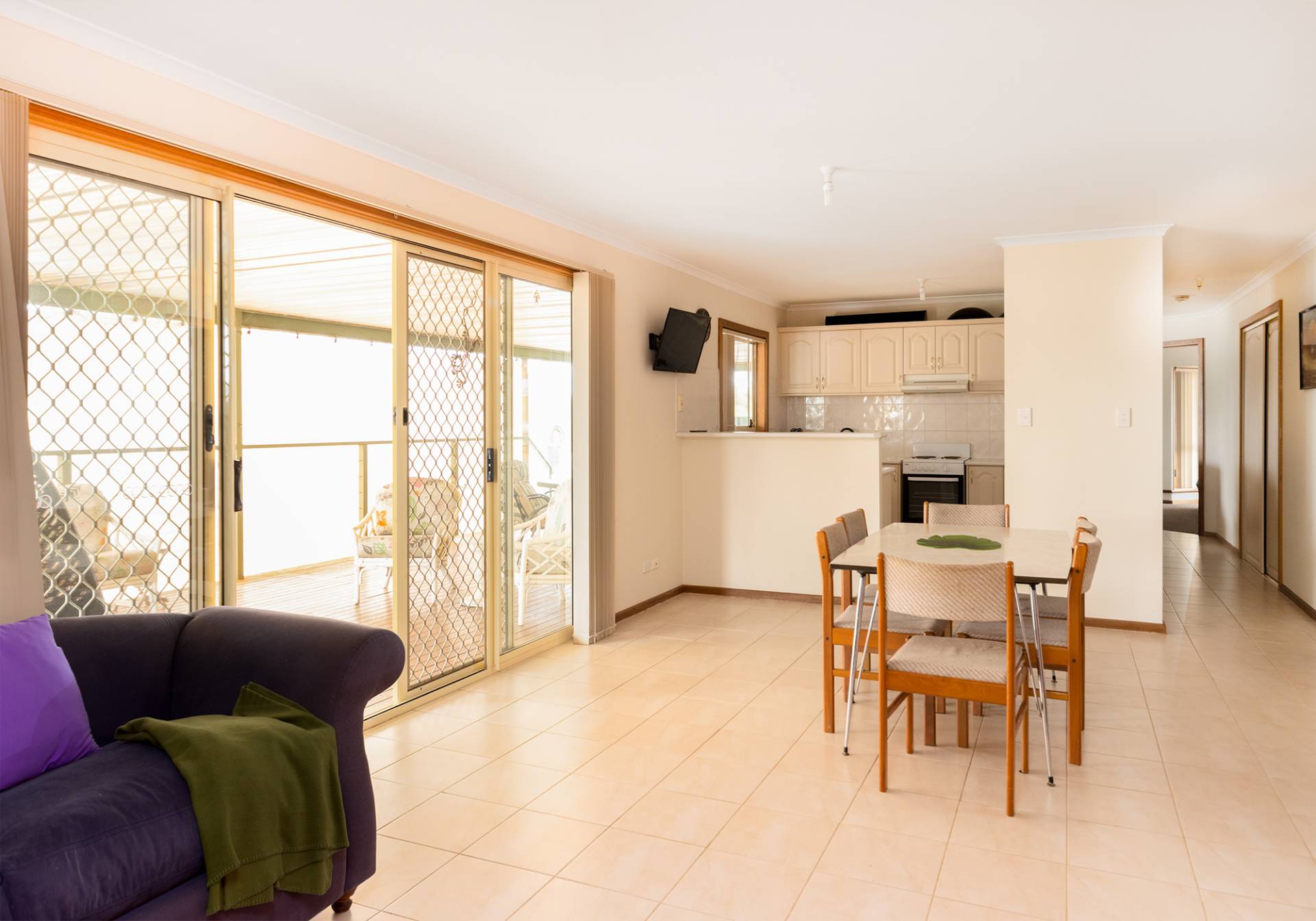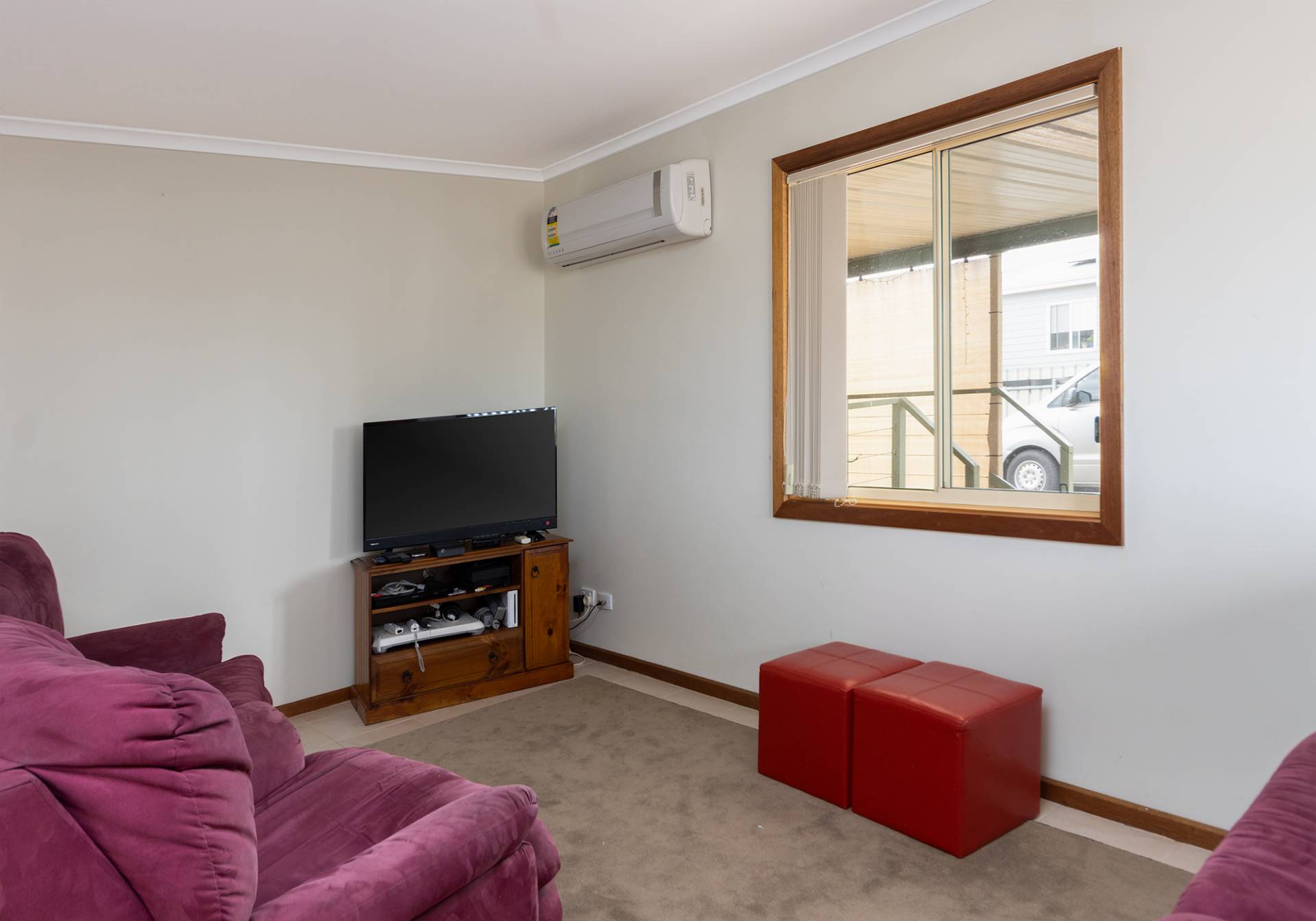 Features include 2 living areas, both with split system air conditioners, 4 bedrooms, all with ceiling fans, outdoor covered deck area, lawn that never needs mowing, play equipment for the kids/grandies, double garage & all on a 900m2 well fenced allotment.