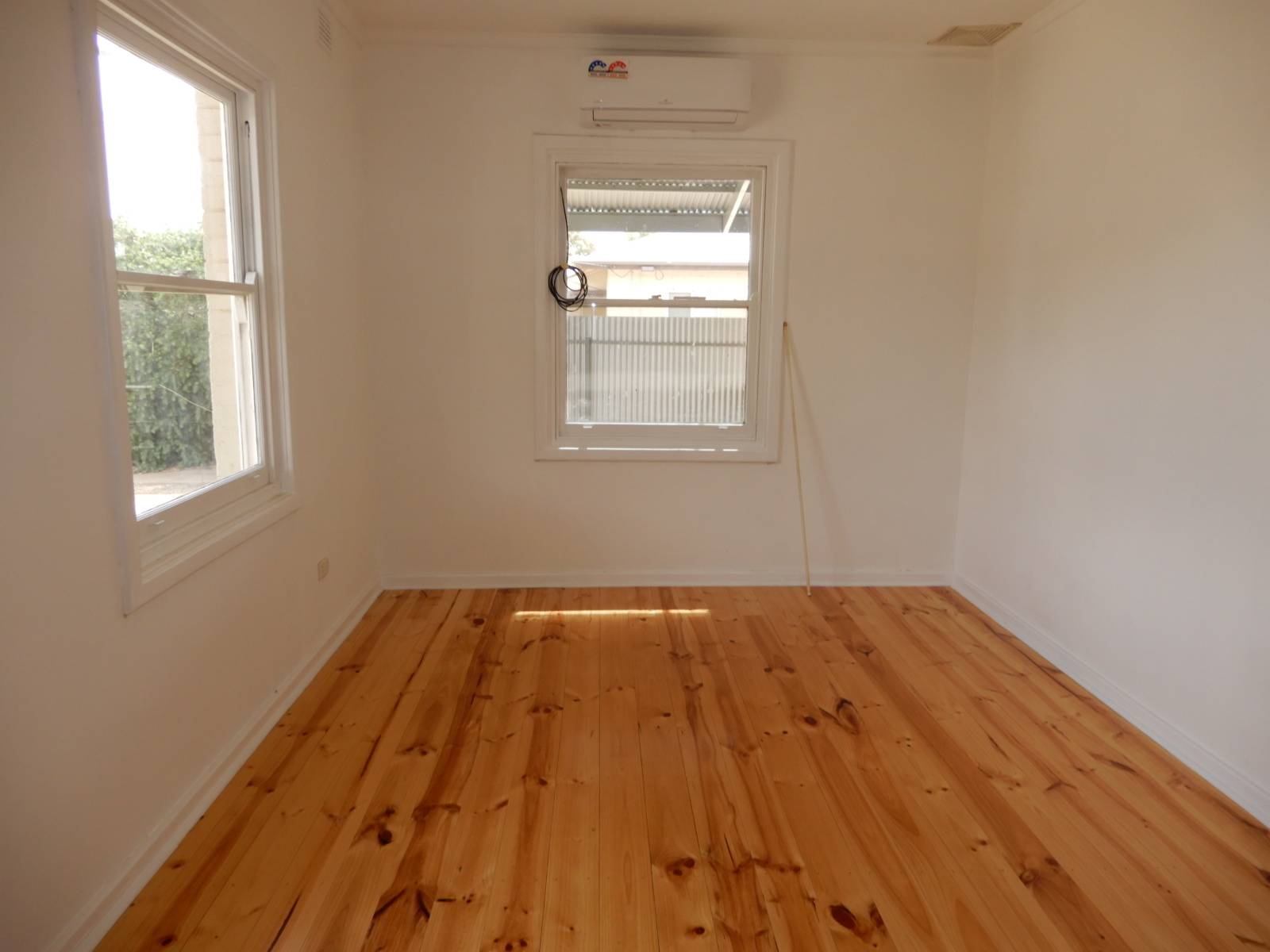- Kitchen/dining with gas stove, ample cupboards and polished floorboards