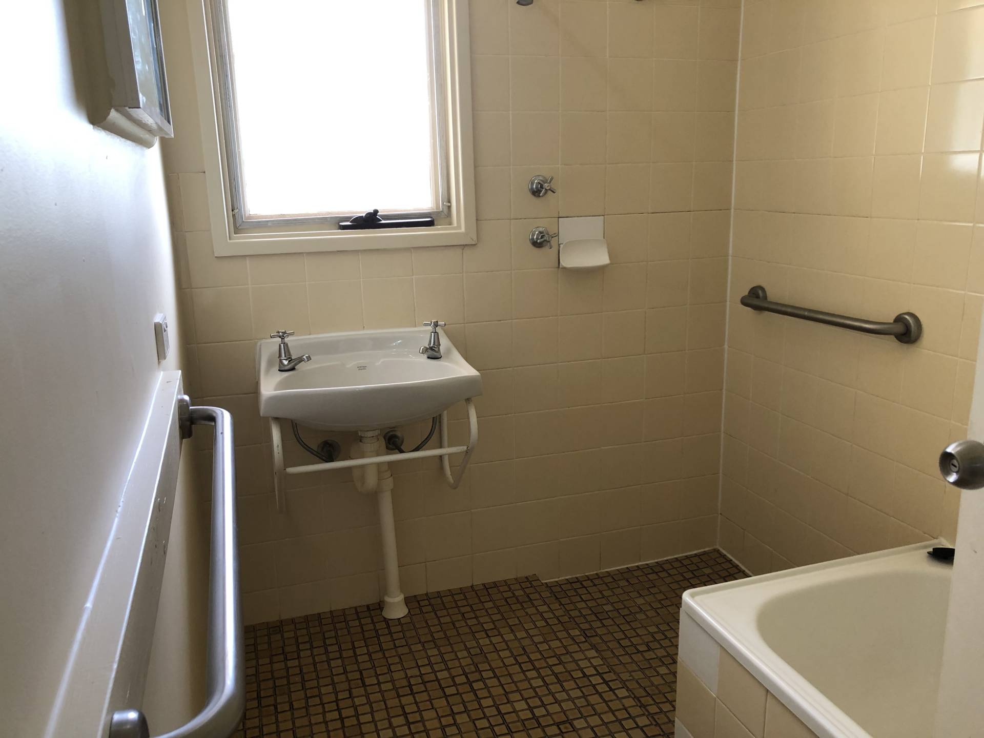 Bathroom has an open access shower and a bath, separate toilet.