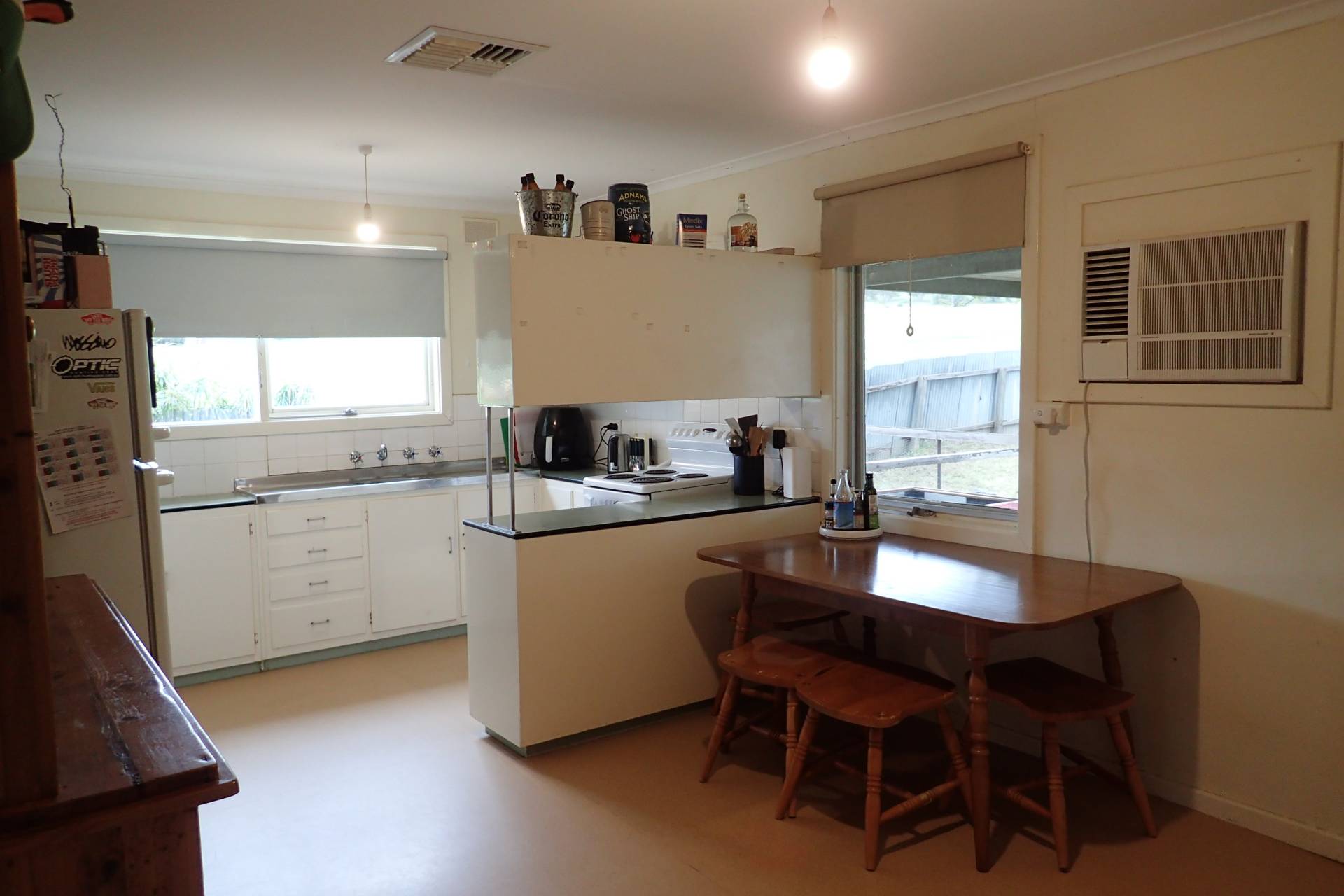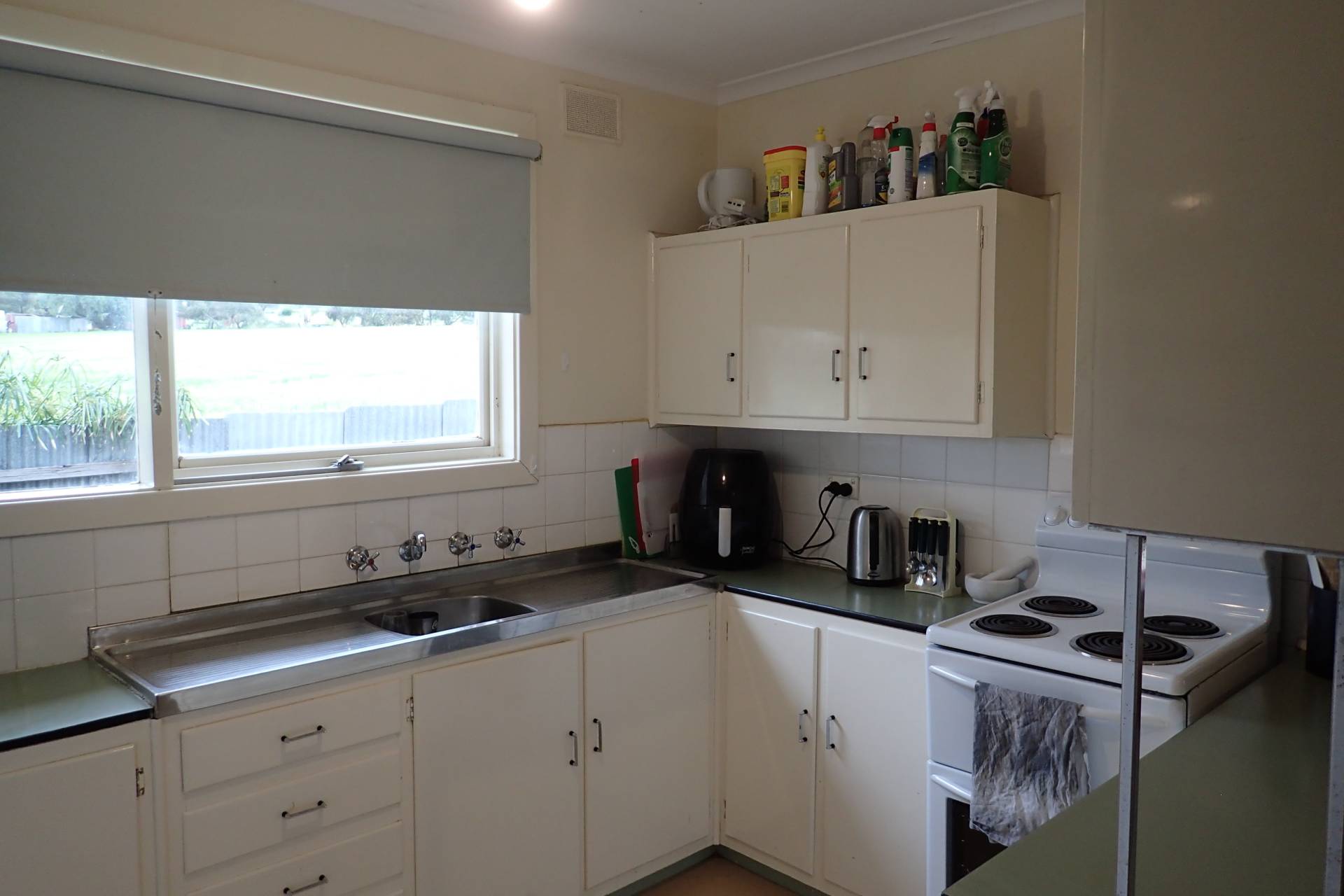 - Kitchen/Meals area with lino floor laminate benchtops and freestanding electric oven