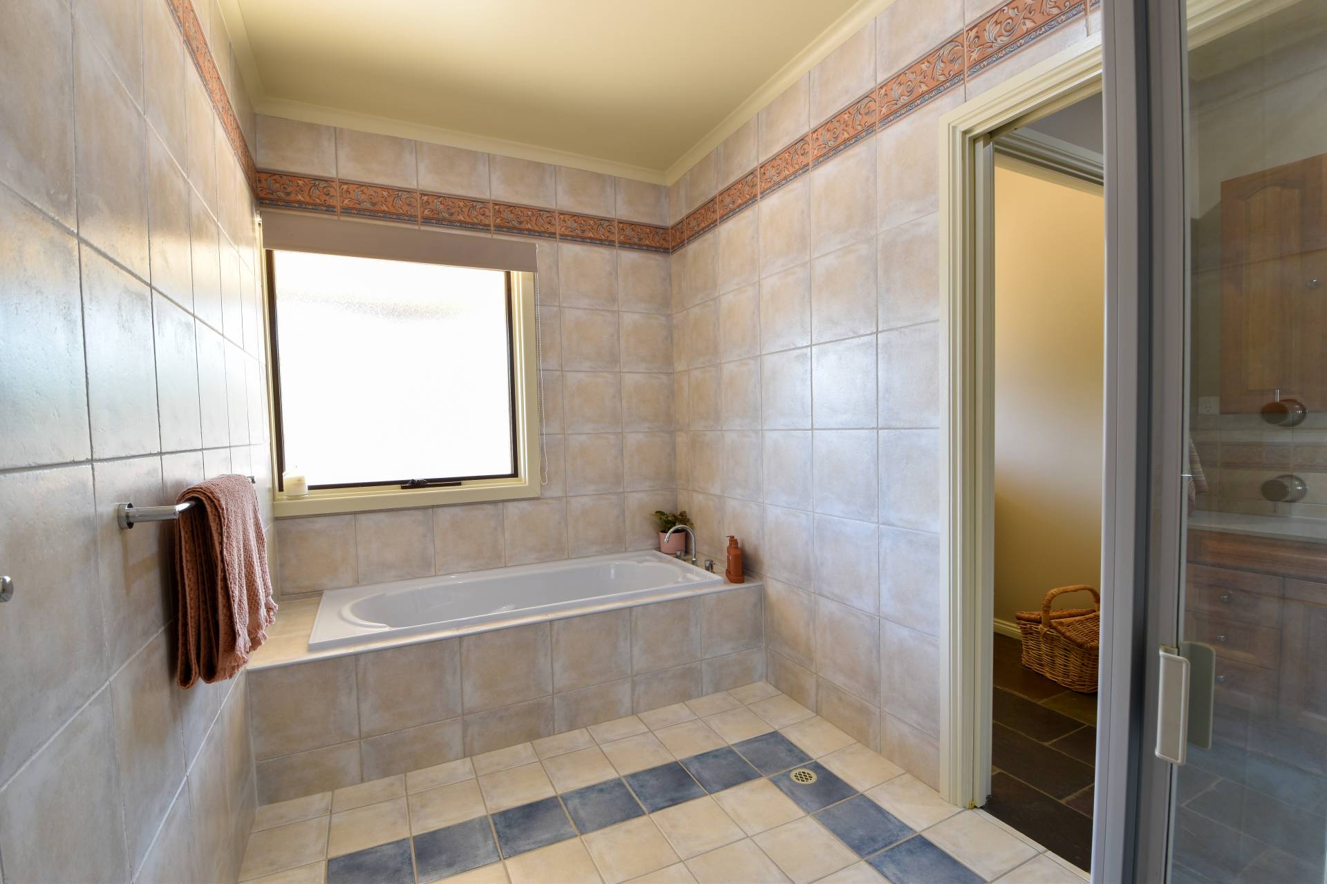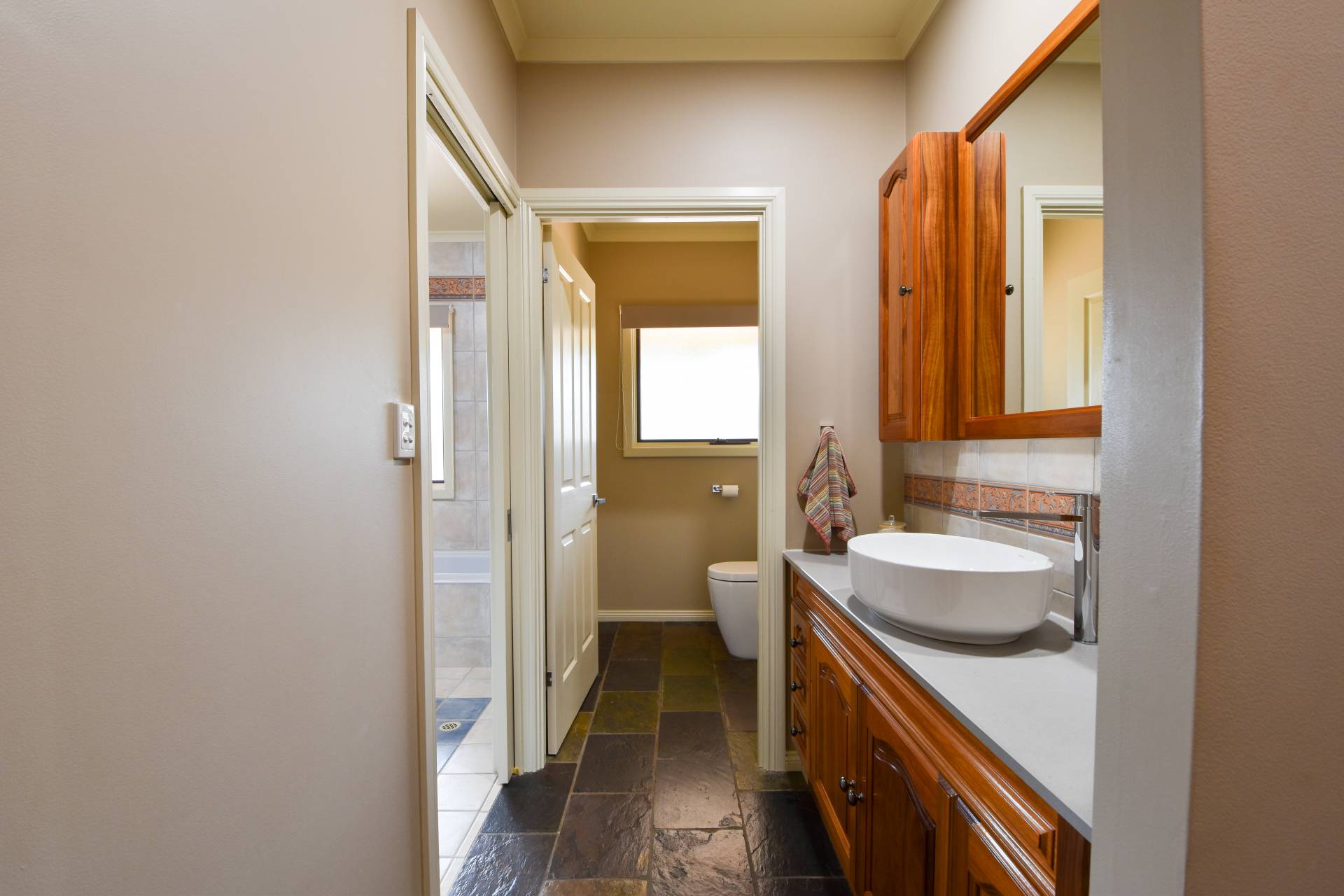 - The main bathroom comprises 3 stages with vanity/separate toilet/shower and bath