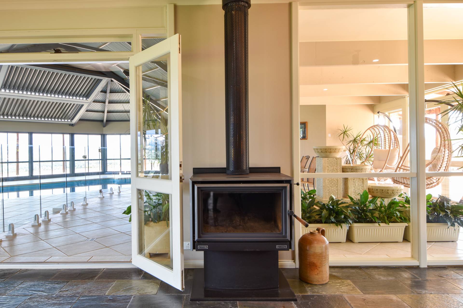- Combustion wood heater in the living area and ducted evaporative air-conditioning cools the home