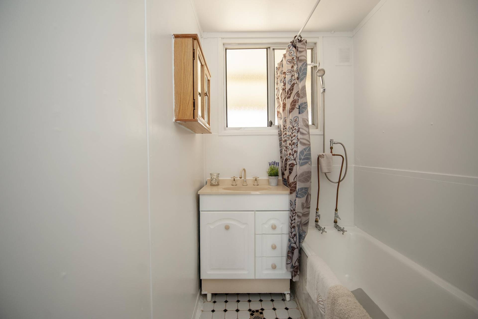 -The bathroom comprises of a vanity and shower/bath with separate toilet located inside the house. The laundry is located outside.