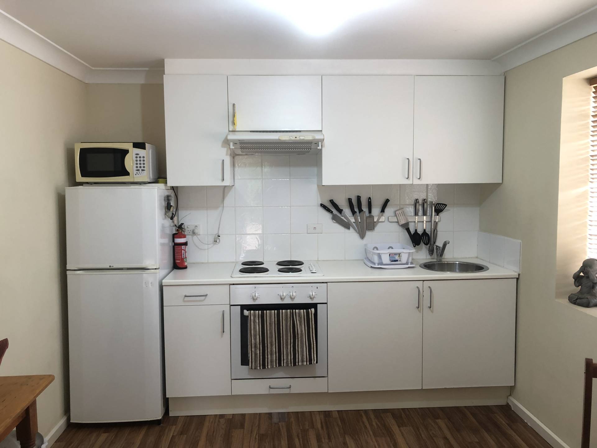 Unit - Fully self contained one bedroom unit. Featuring a double bed/ lounge room, neat modern kitchen dining area with separate bathroom/ laundry. Split system A/C for heating and cooling in the lounge/bedroom.