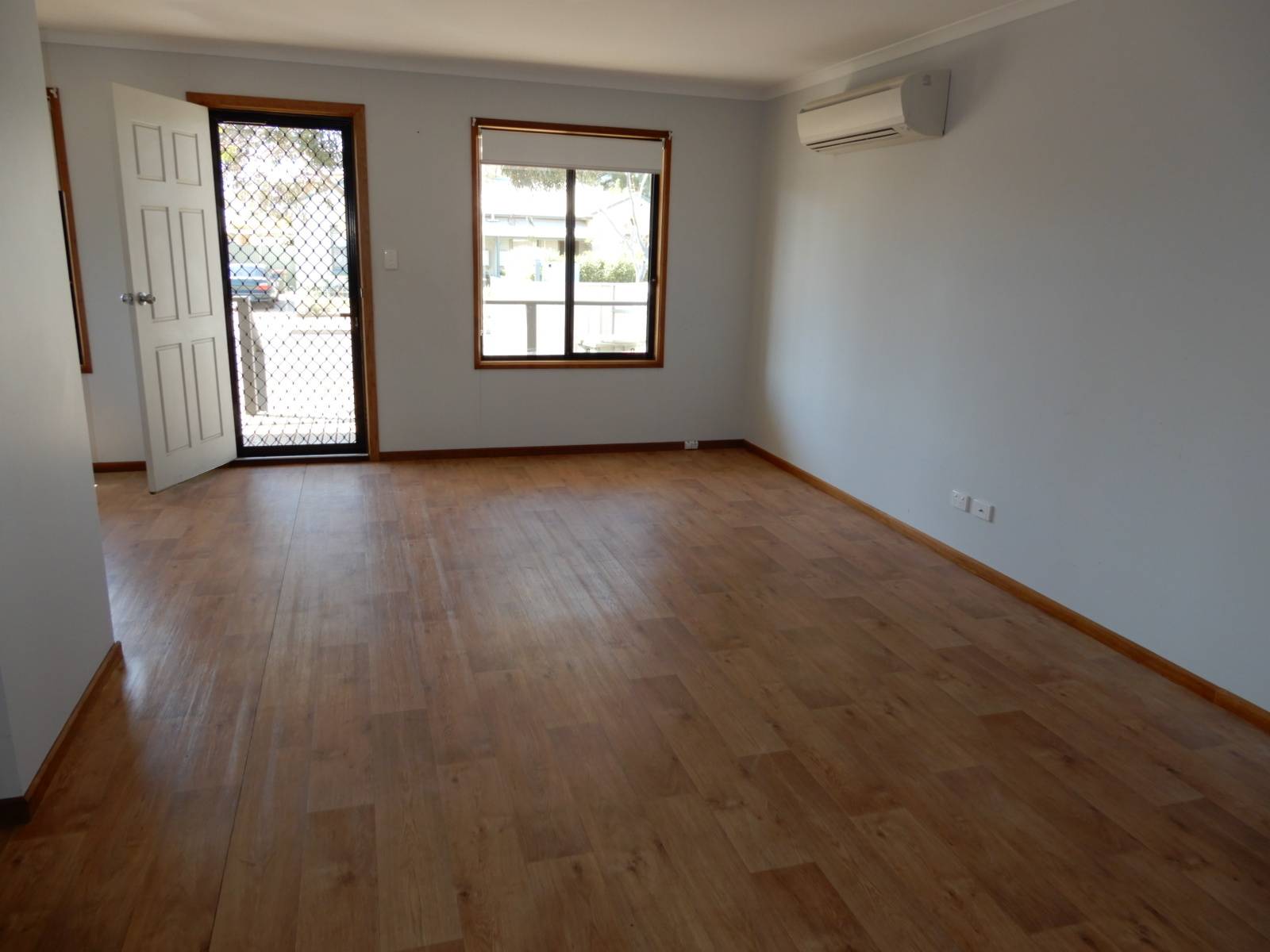 * Open plan living with split system reverse cycle air conditioner