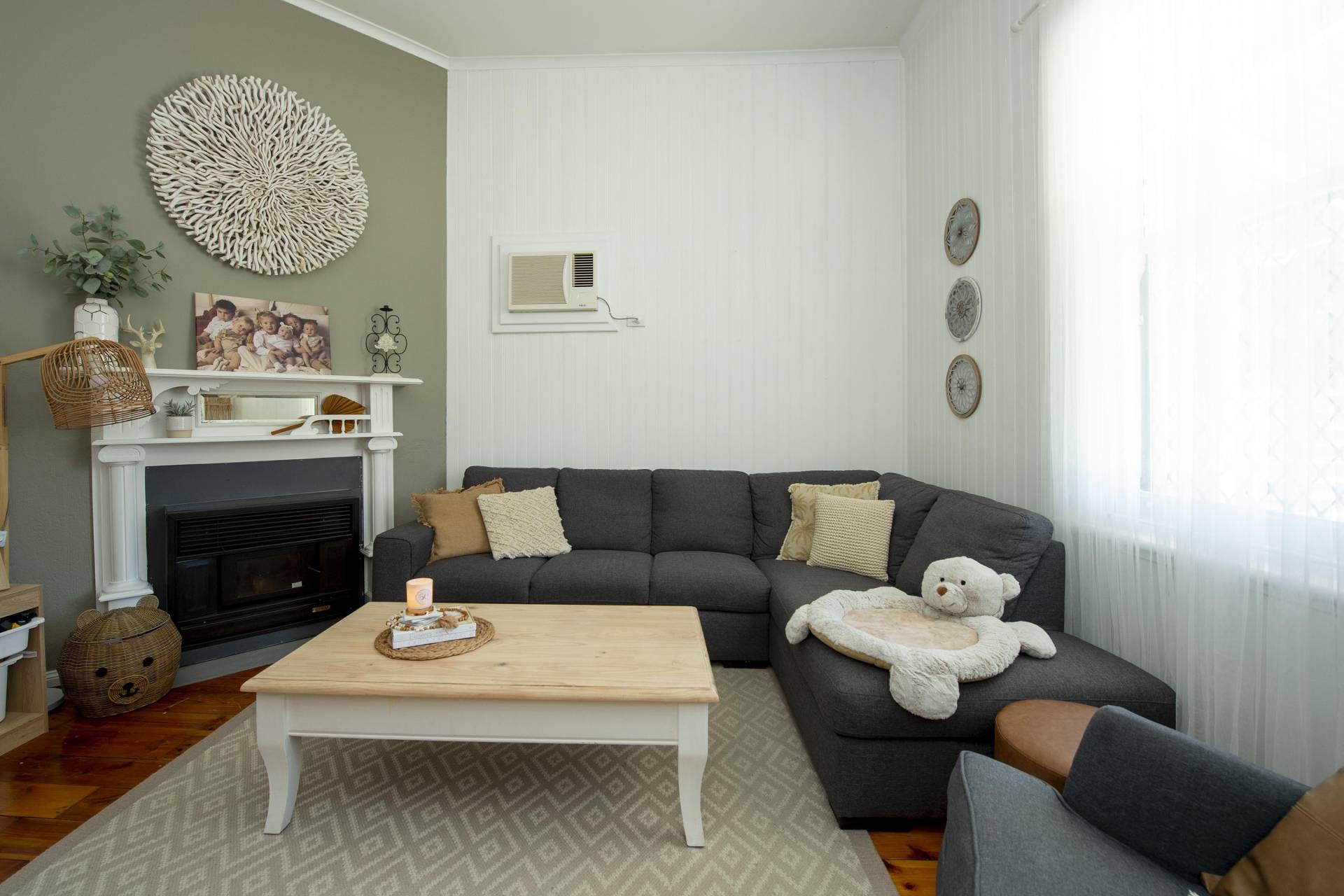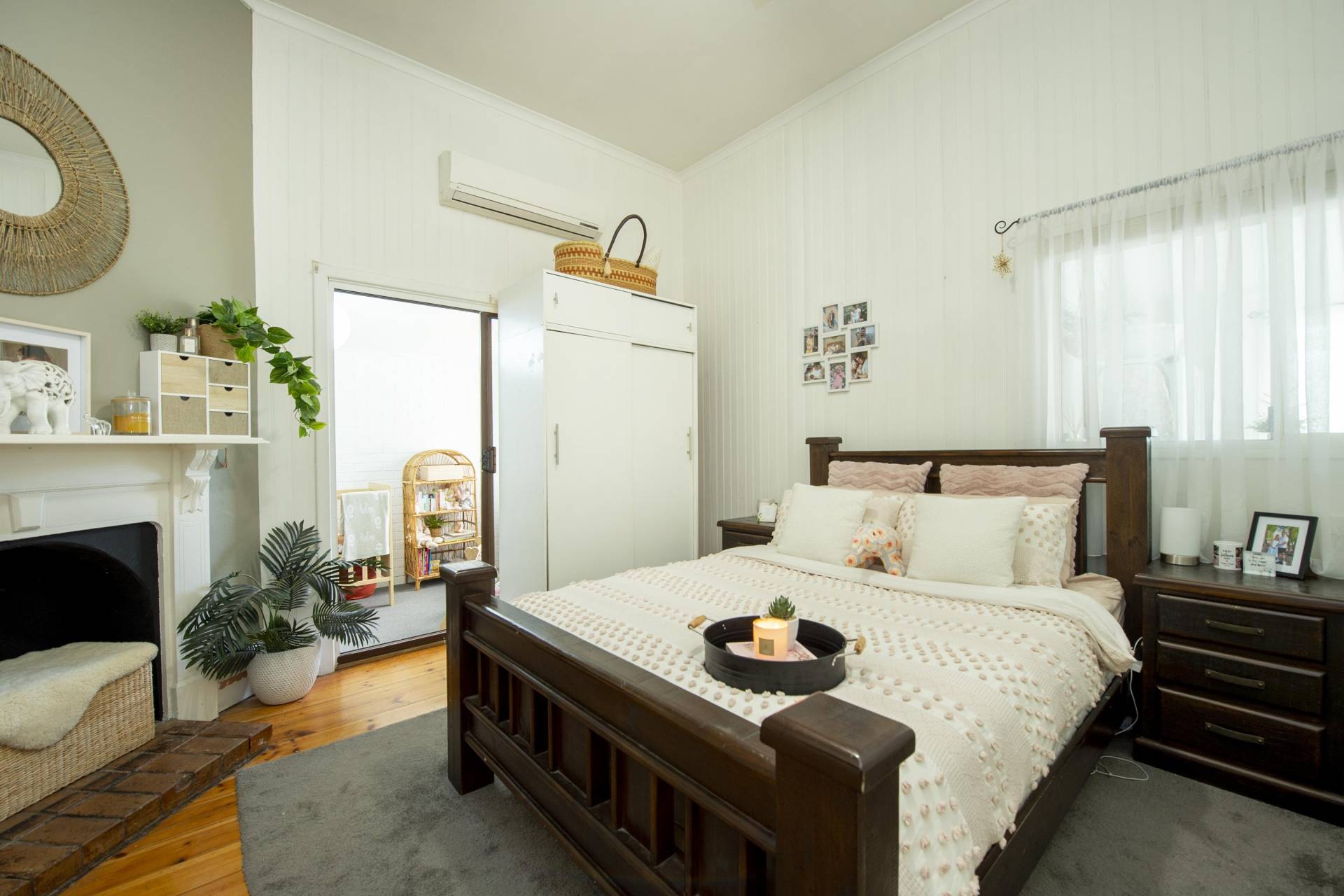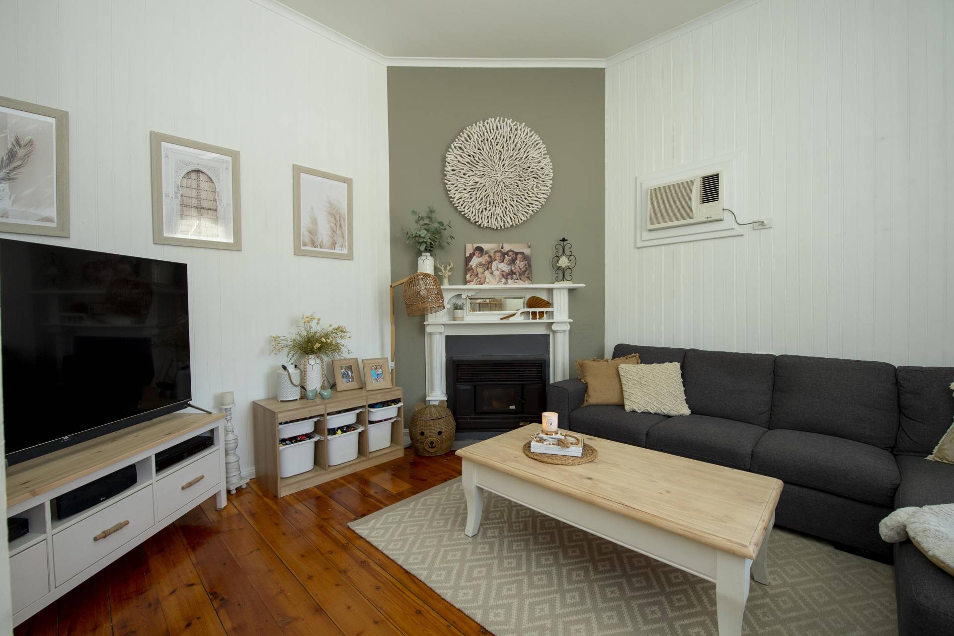 - Creature comfort provided by split system and refrigerated air-conditioning and wood heater