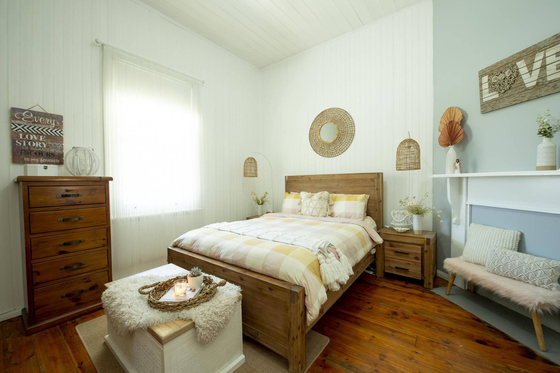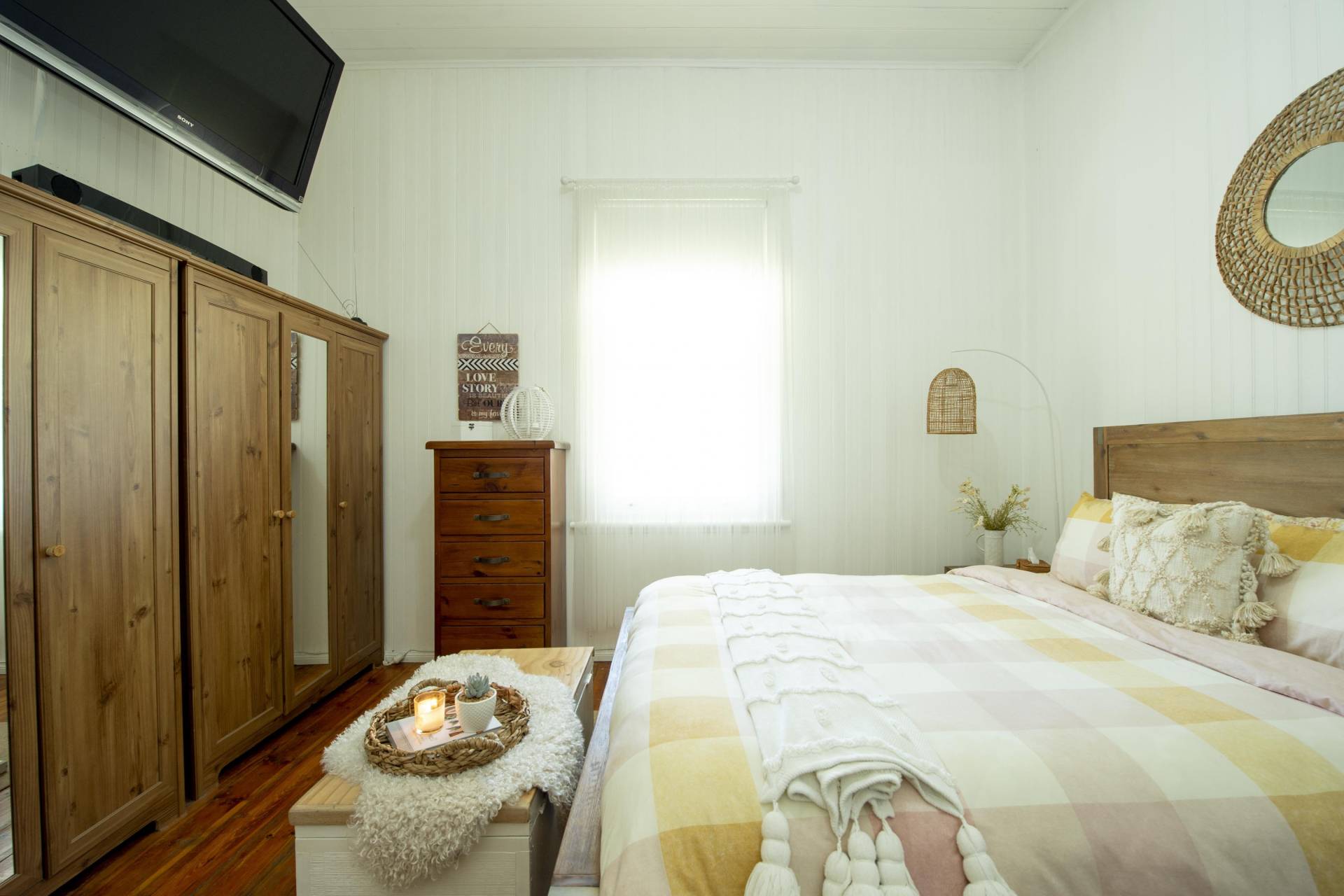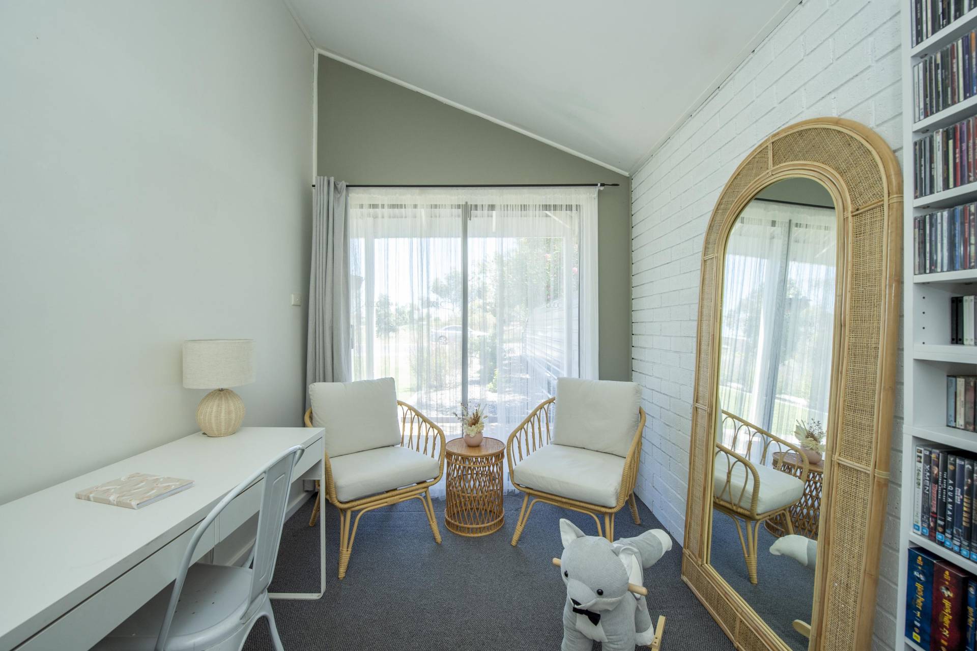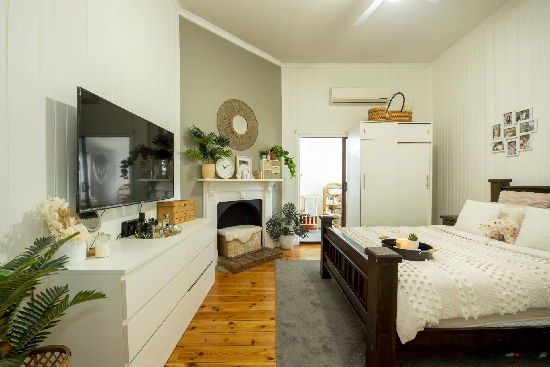 - Creature comfort provided by split system and refrigerated air-conditioning and wood heater