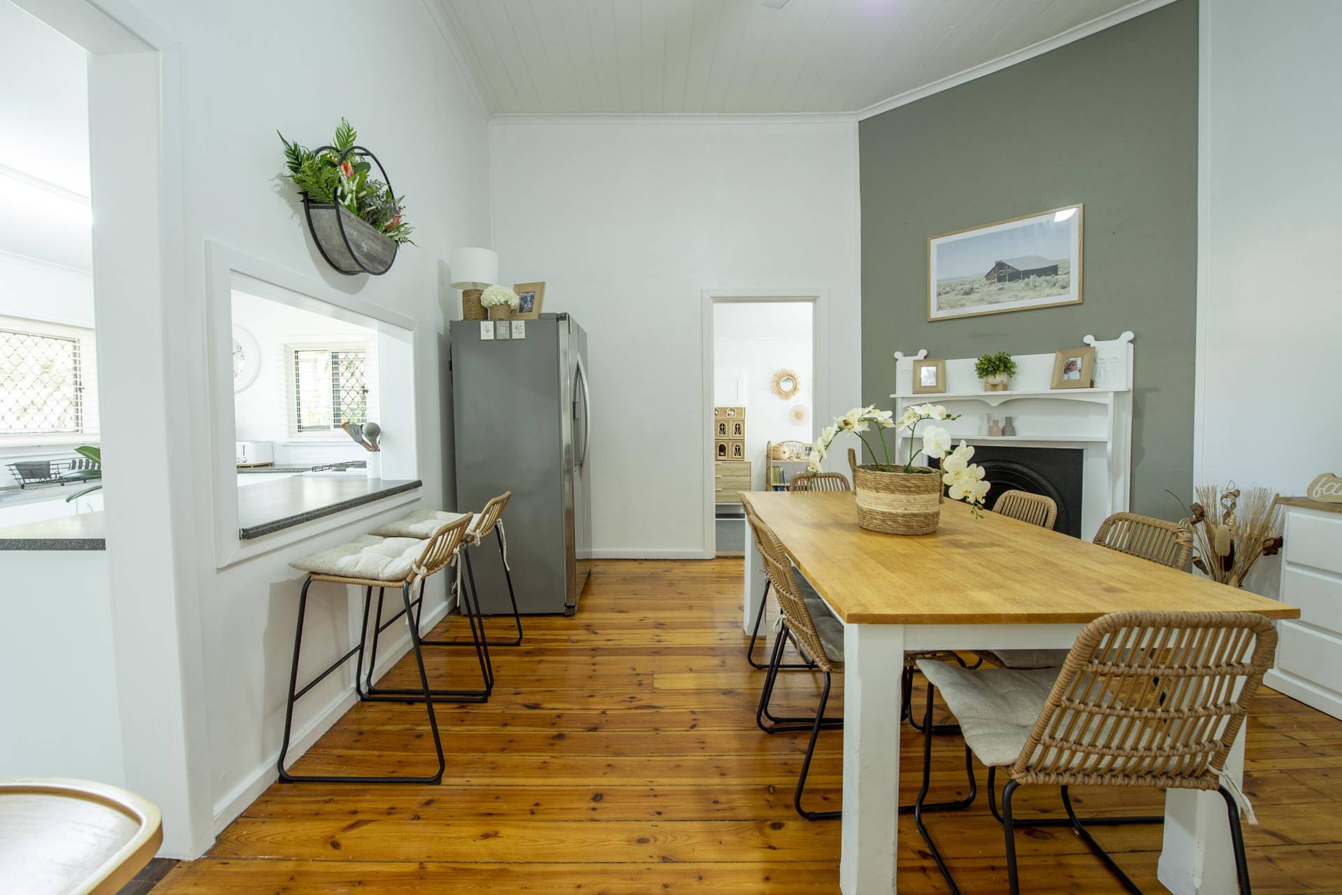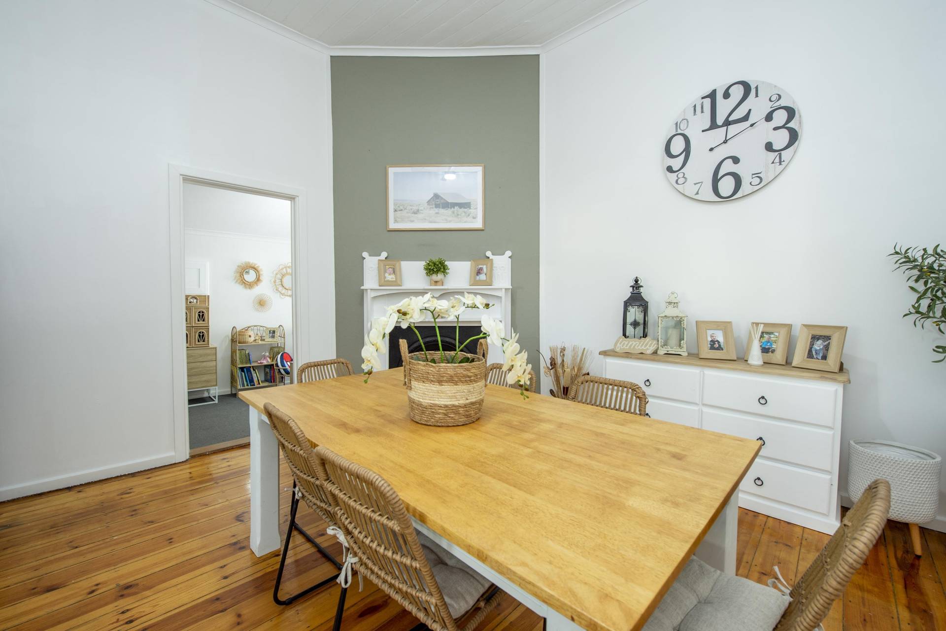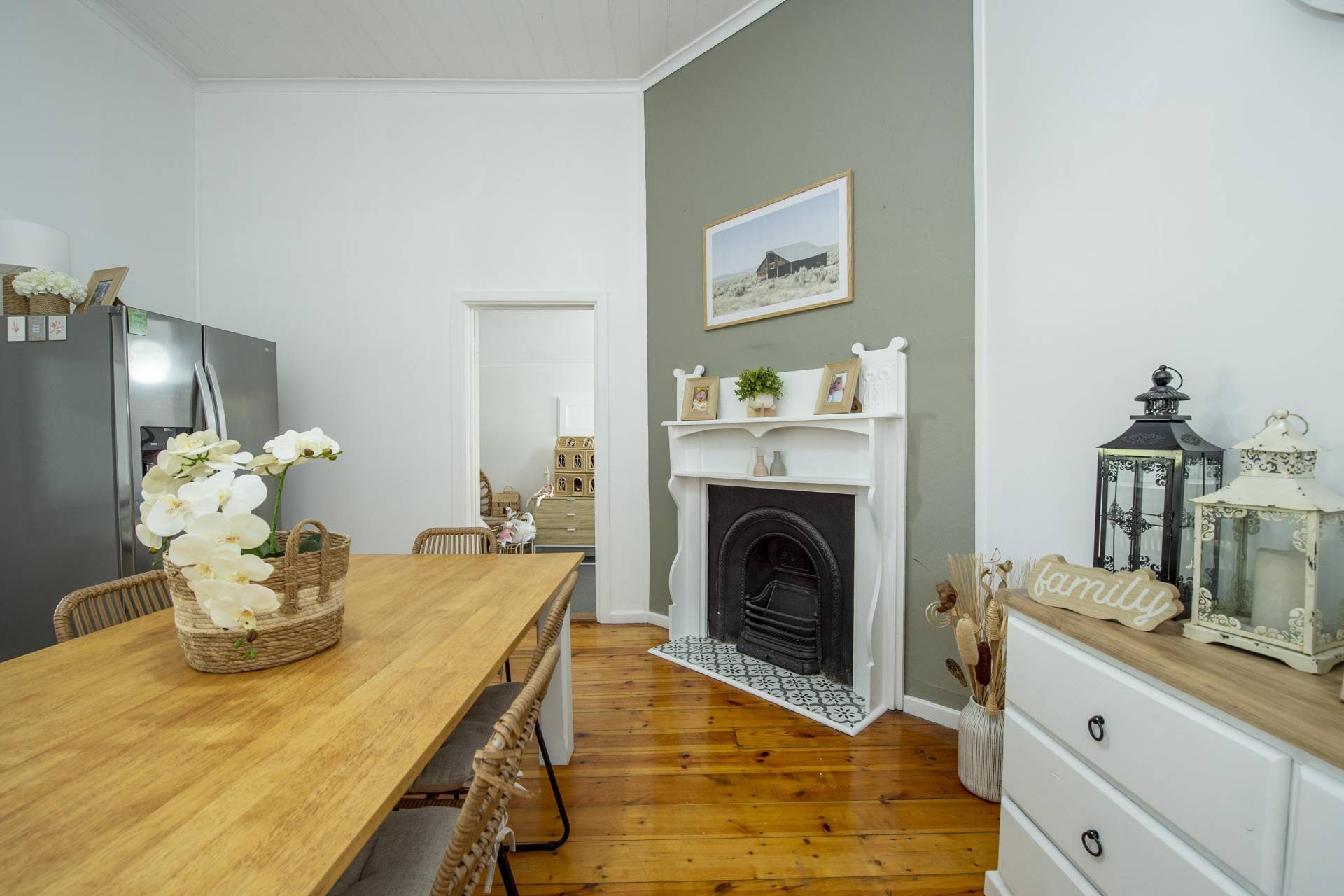 - Large dining area with feature fireplace