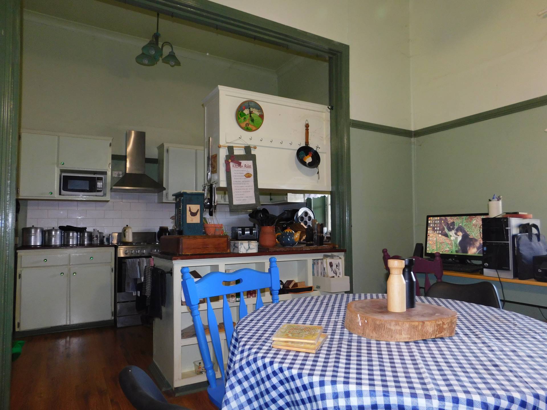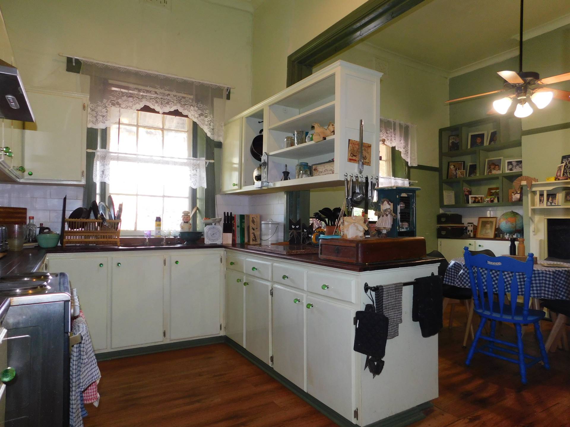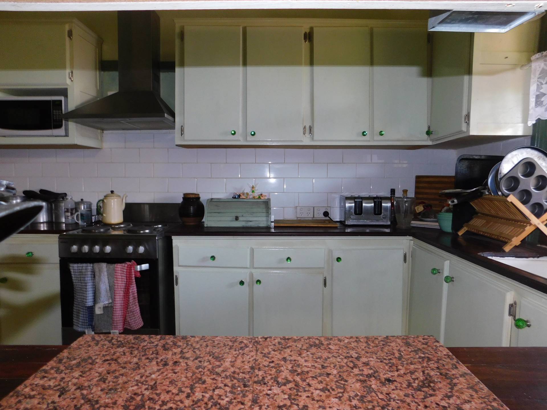 - Country style kitchen, electric cooking, tiled splash back with adjoining meals area.