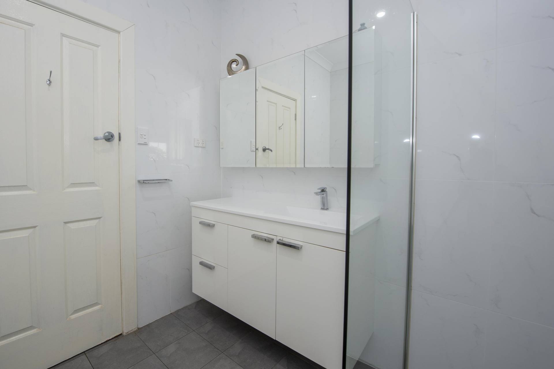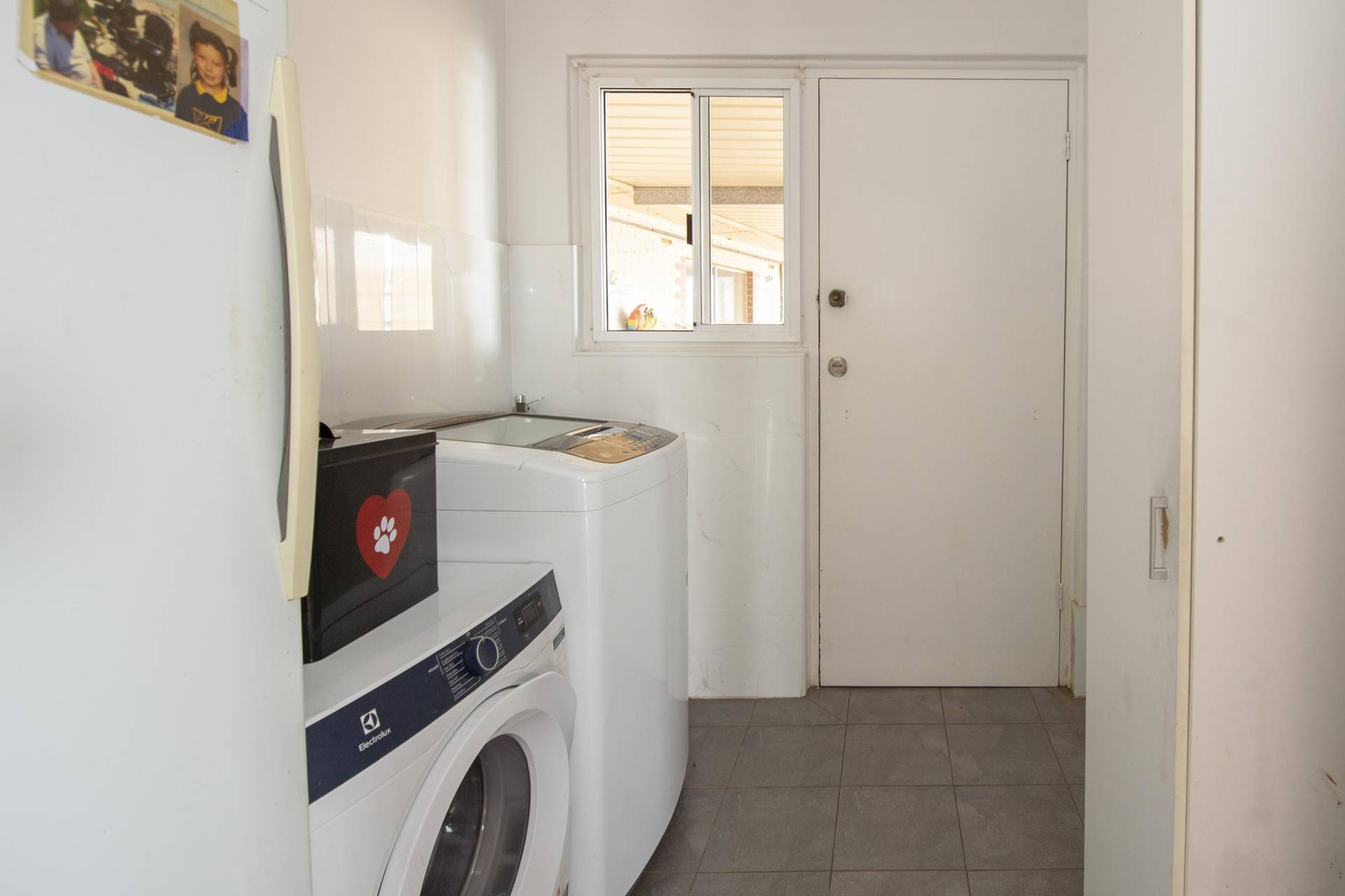 -Good size Laundry having access to back yard and a linen press in hallway that will please.