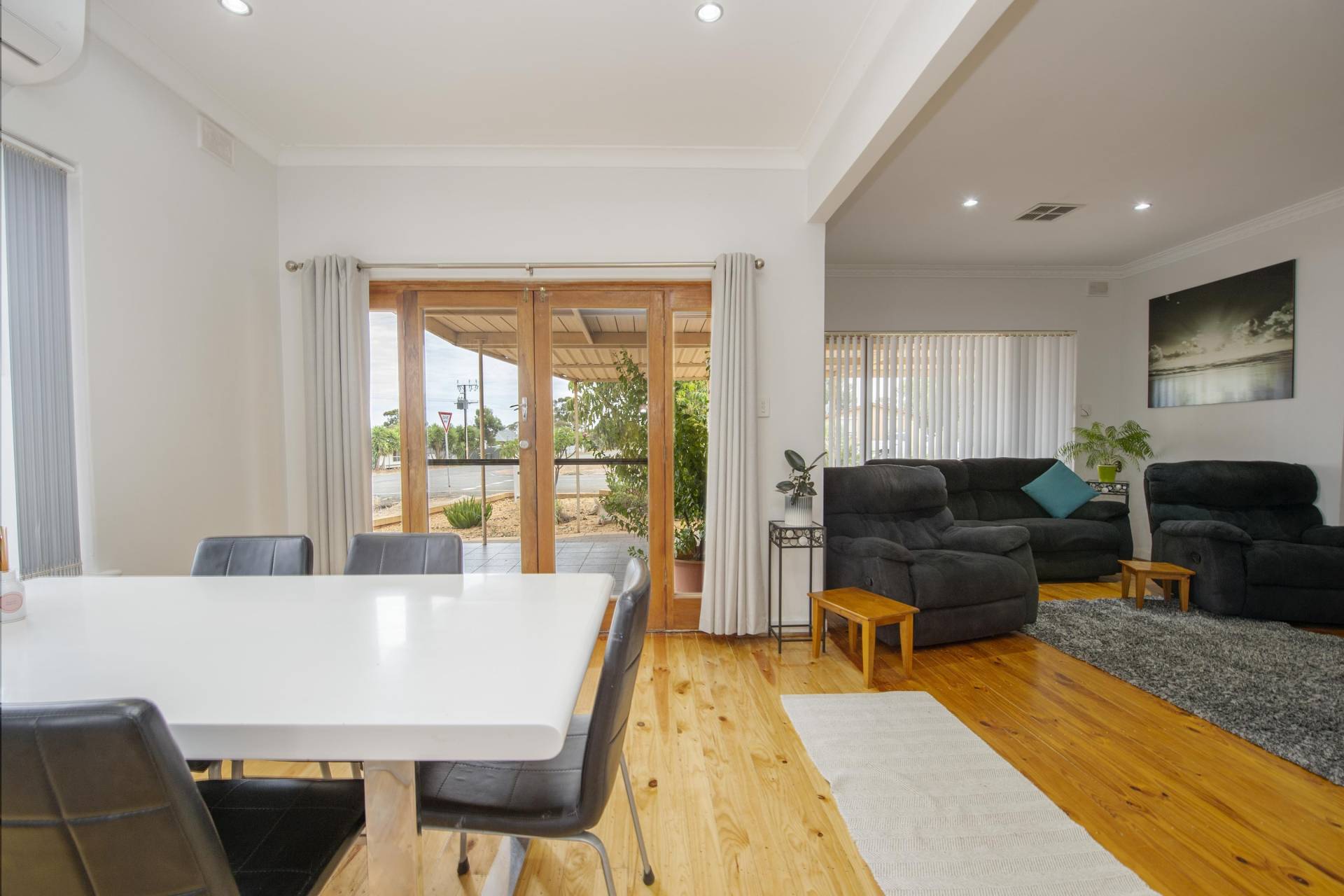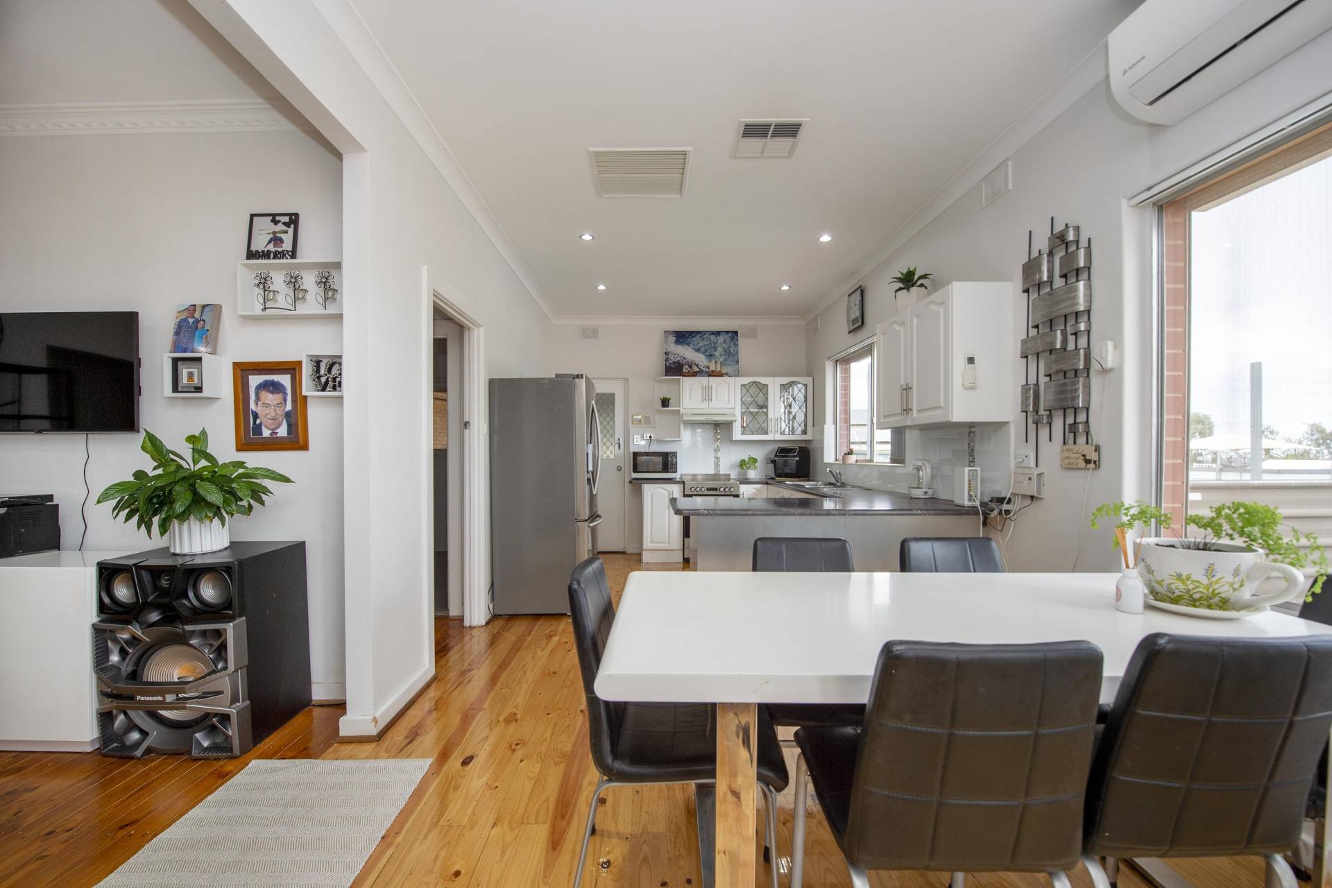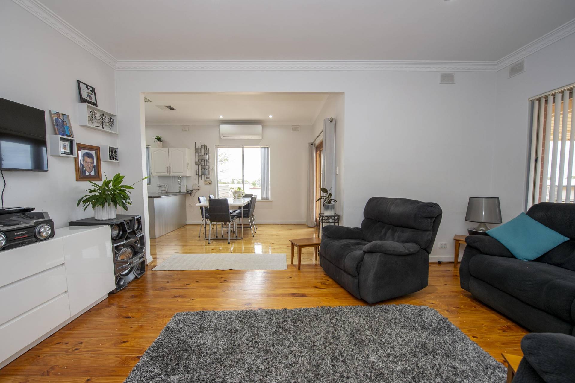 -Loungeroom is comfortable with polished floors and extra Split system air conditioner for year-round comfort