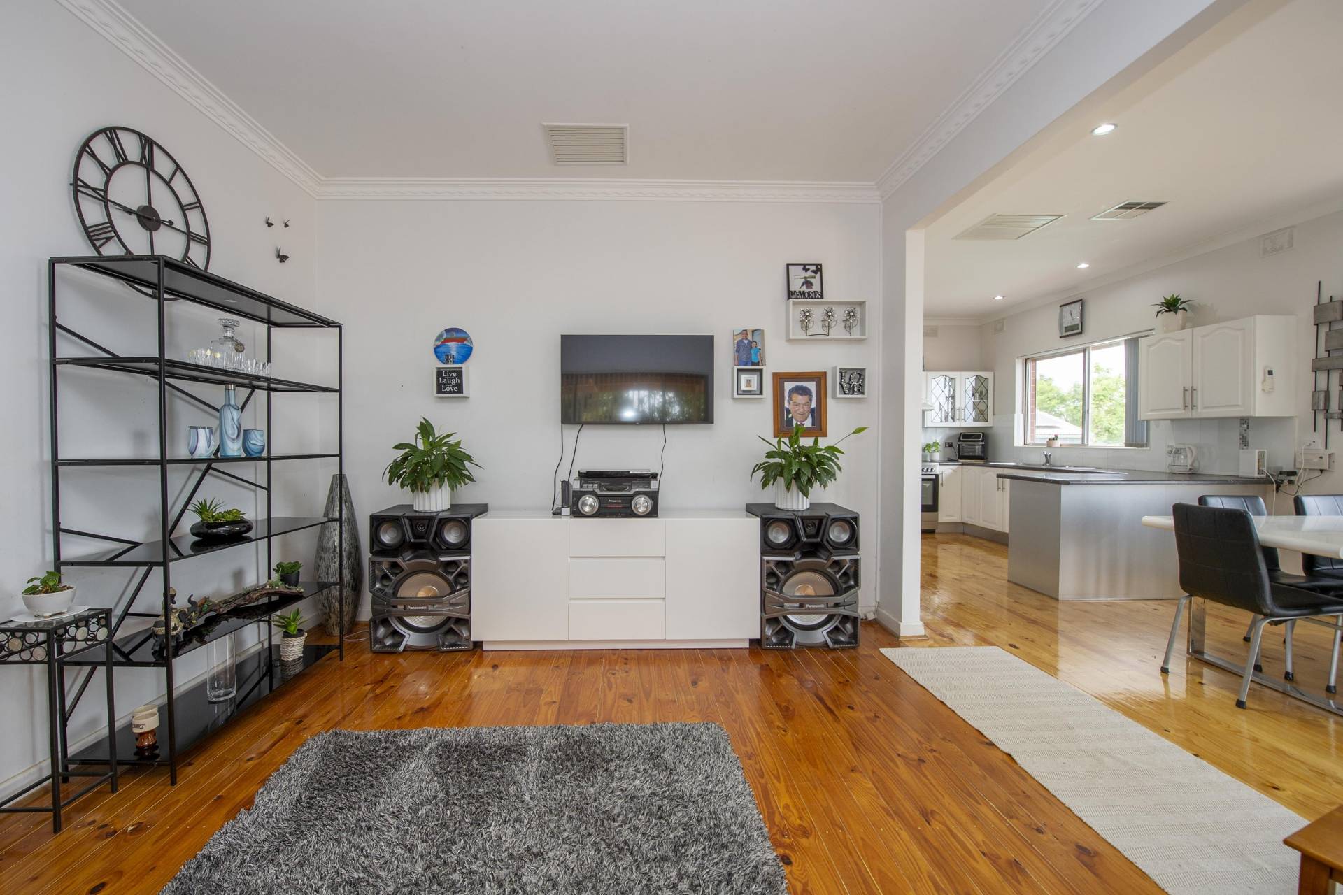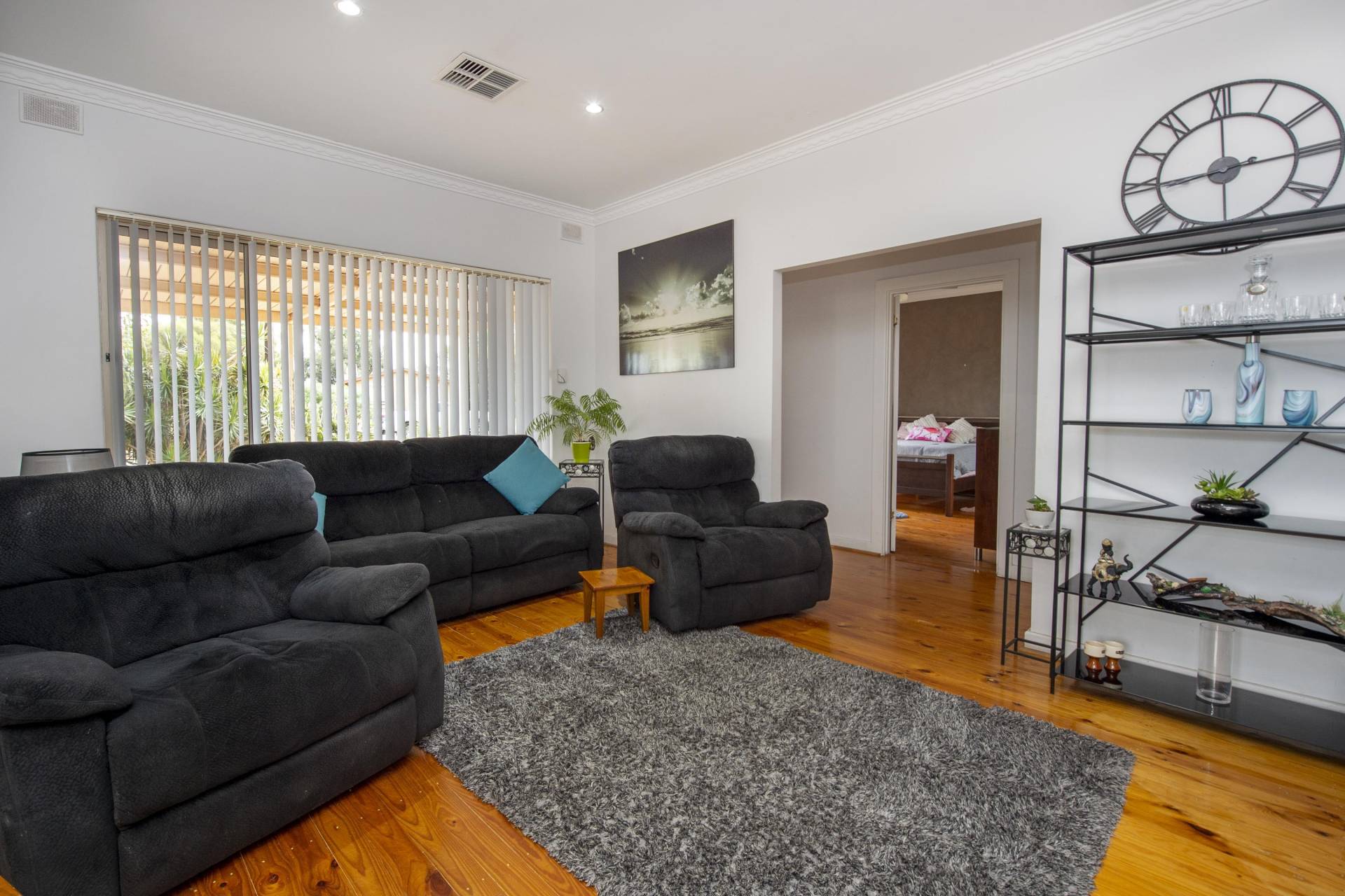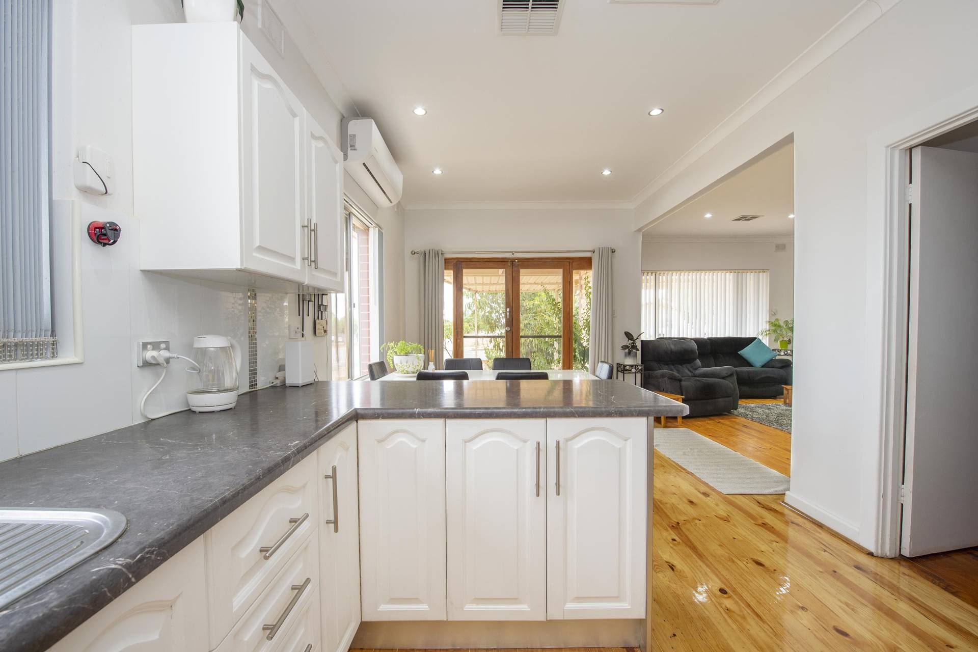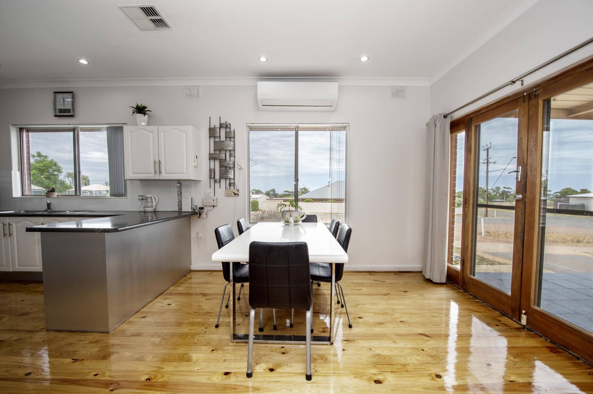 -Loungeroom is comfortable with polished floors and extra Split system air conditioner for year-round comfort