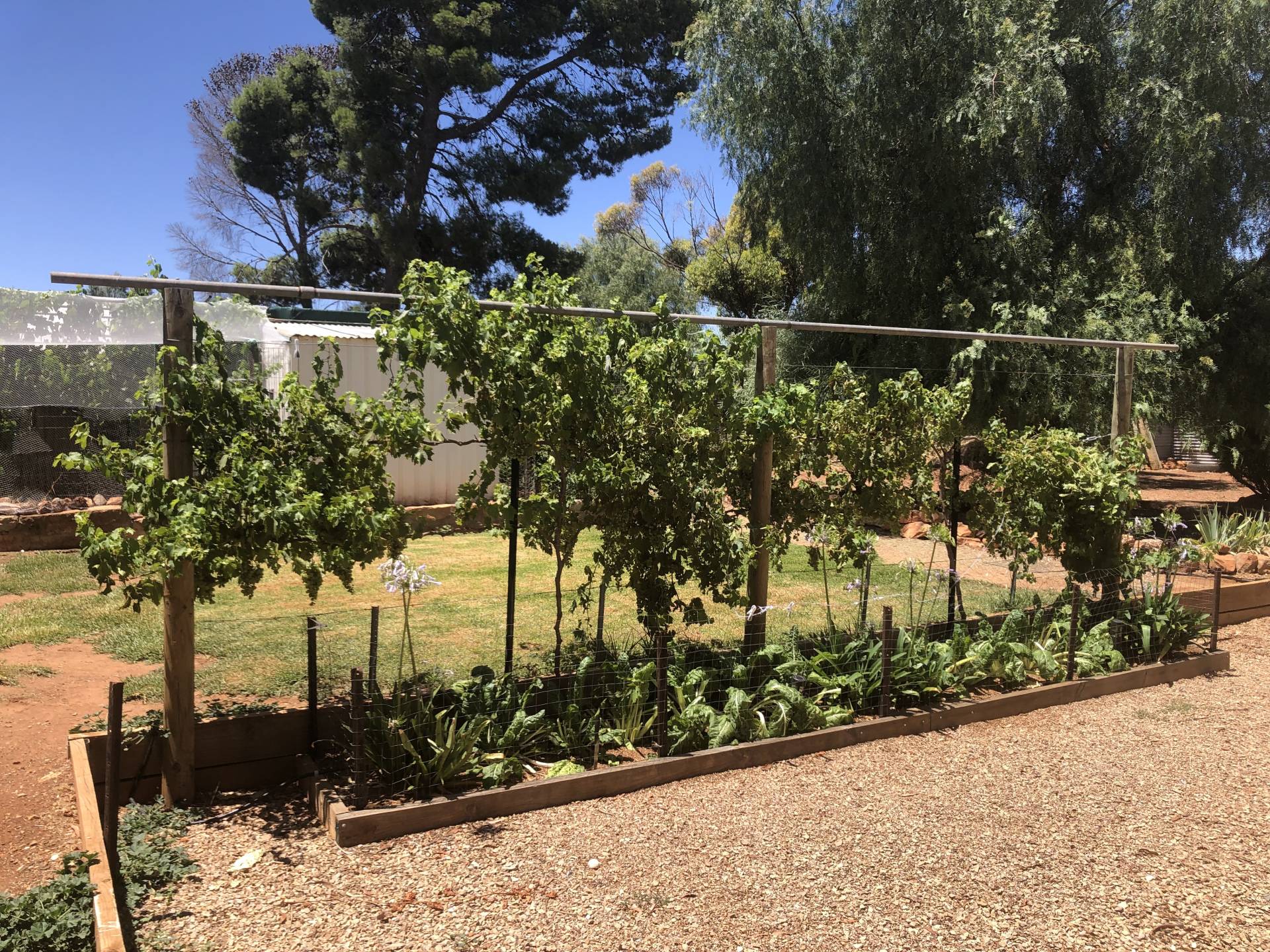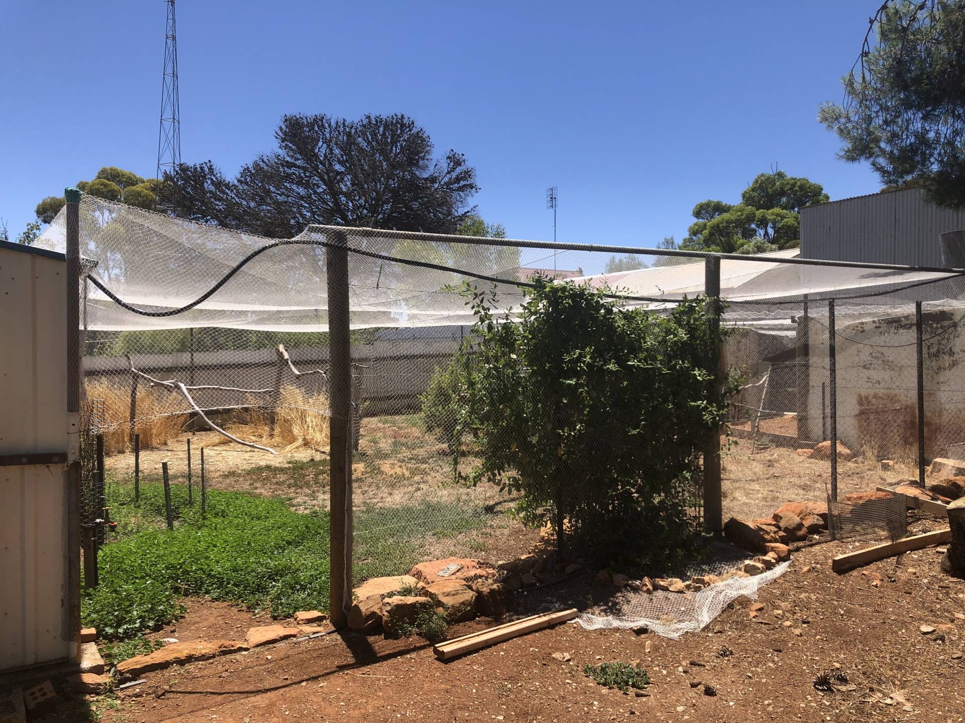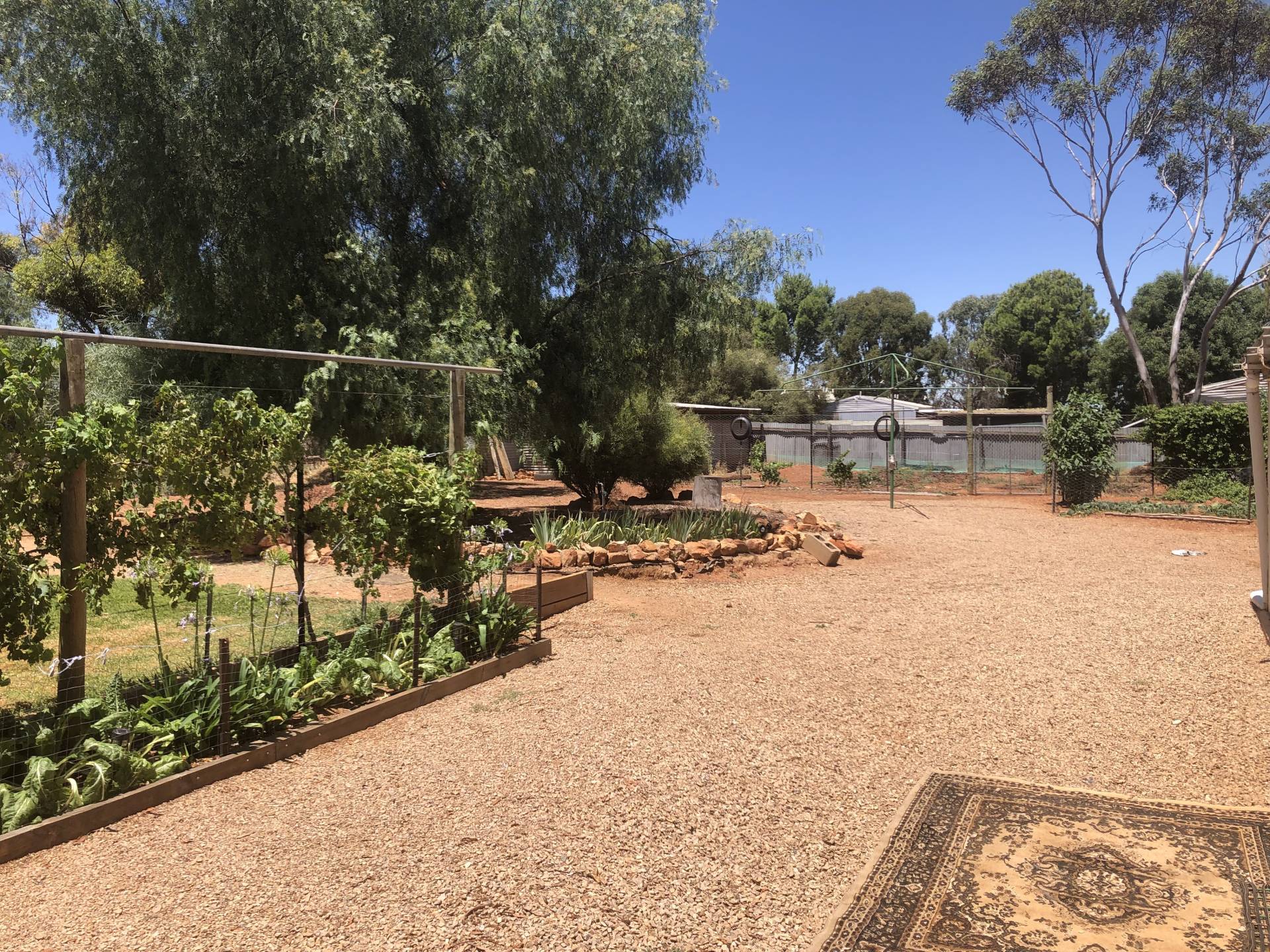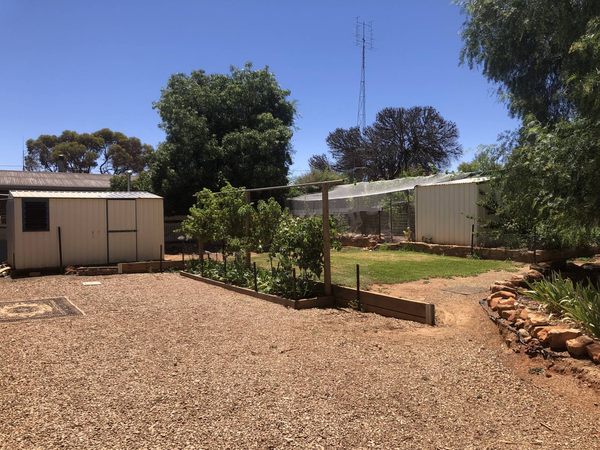 Very large well established back yard with extensive upgrades for veggies, chooks and birds.