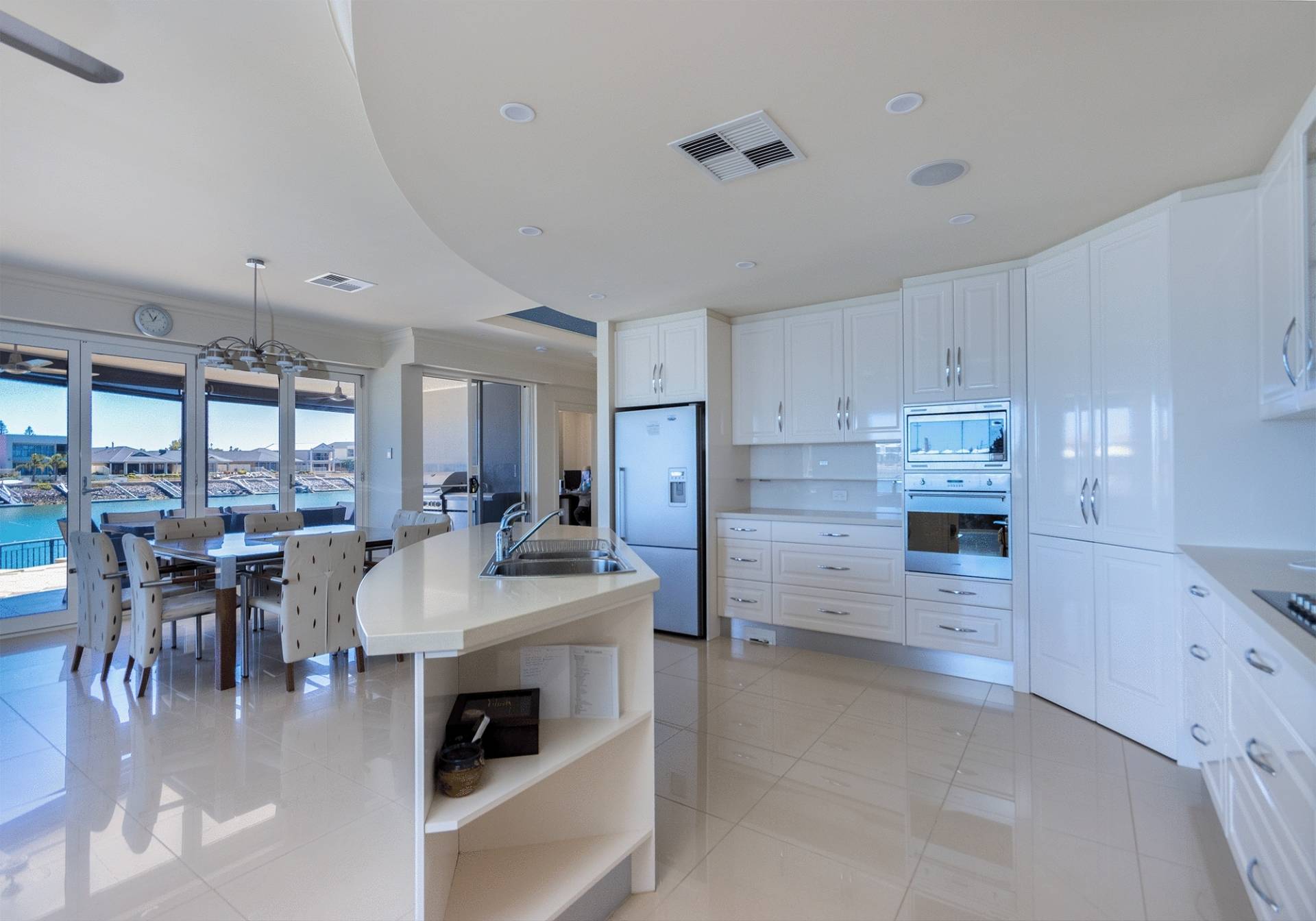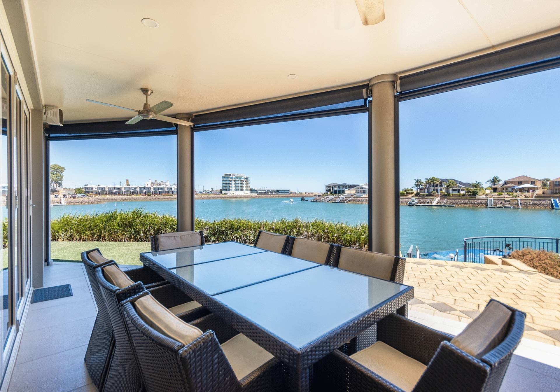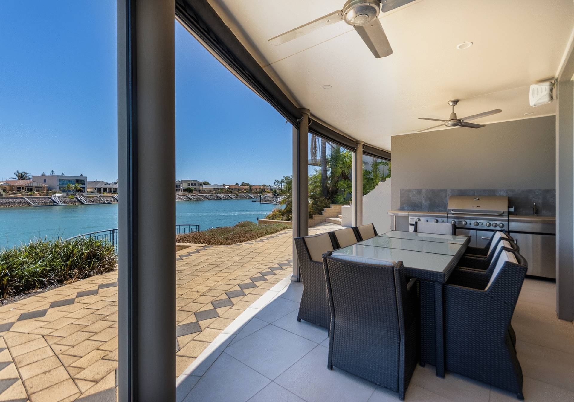 Bifold doors lead you to the picturesque alfresco entertaining area. This is the perfect spot to unwind looking over the wide waterway and enjoying a bbq with family and friends. Of course, you also have your own private pontoon with dual walkways to secure your boat or jet skis.