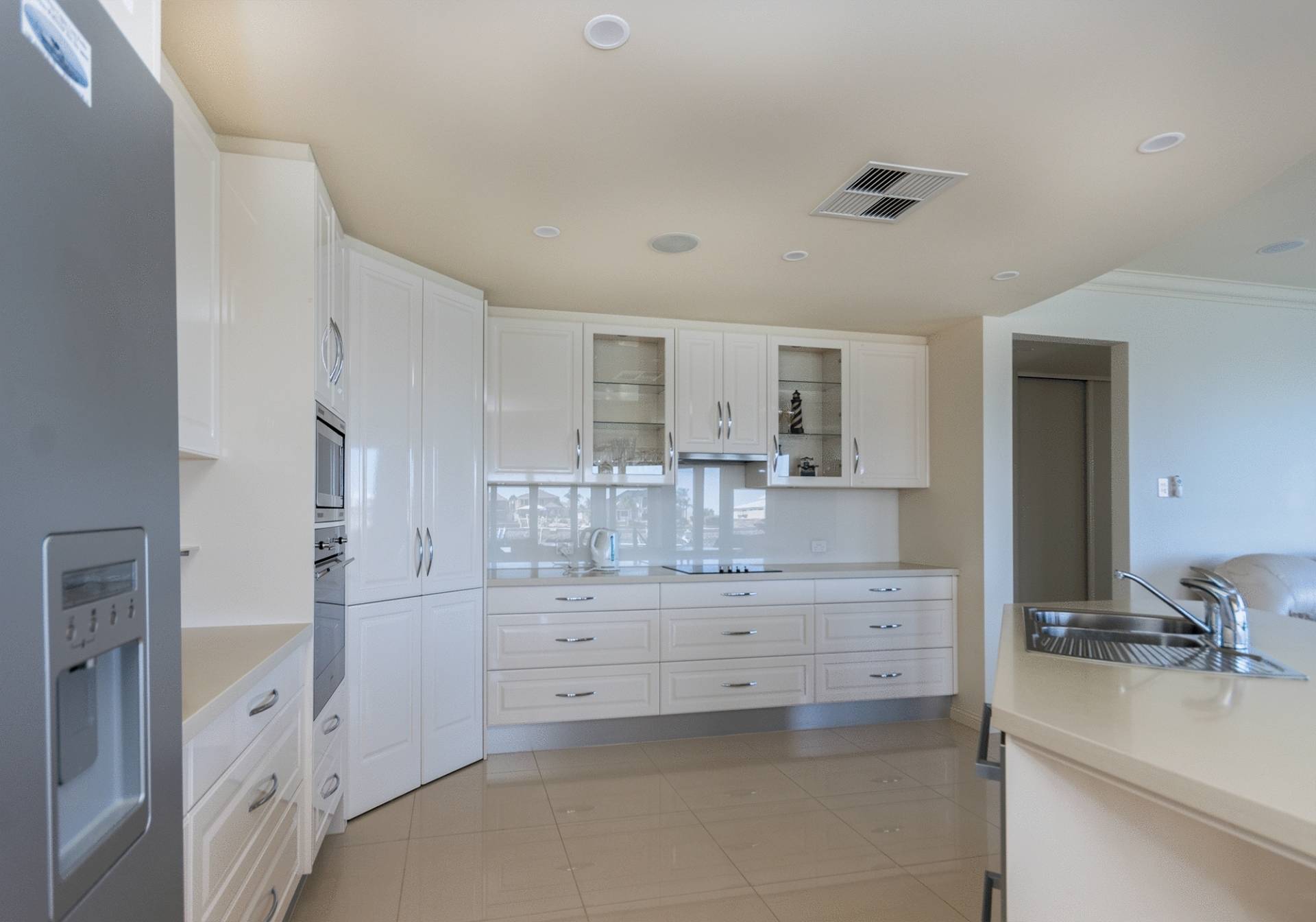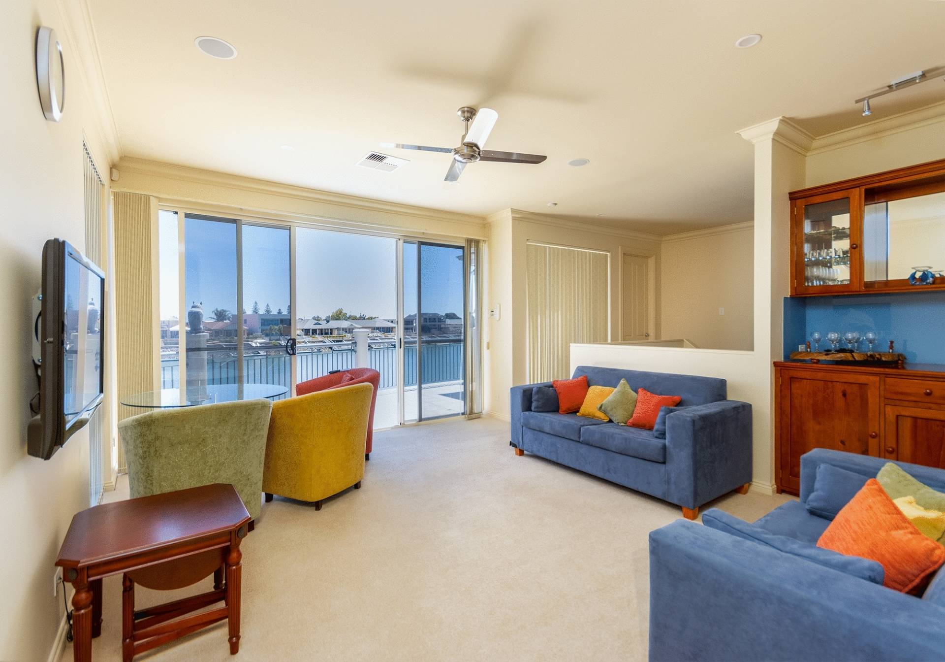 This multi storey home comprises 4 generous bedrooms that all have water views plus a dedicated study. There are 2 bathrooms with the ensuite having a relaxing spa bath and there are 3 w/c’s. This amazing home has 2 lounge rooms on different levels, of course with water views. The modern kitchen offers Caesar stone benchtops, sink disposal unit, a Billi tea system and great storage.
