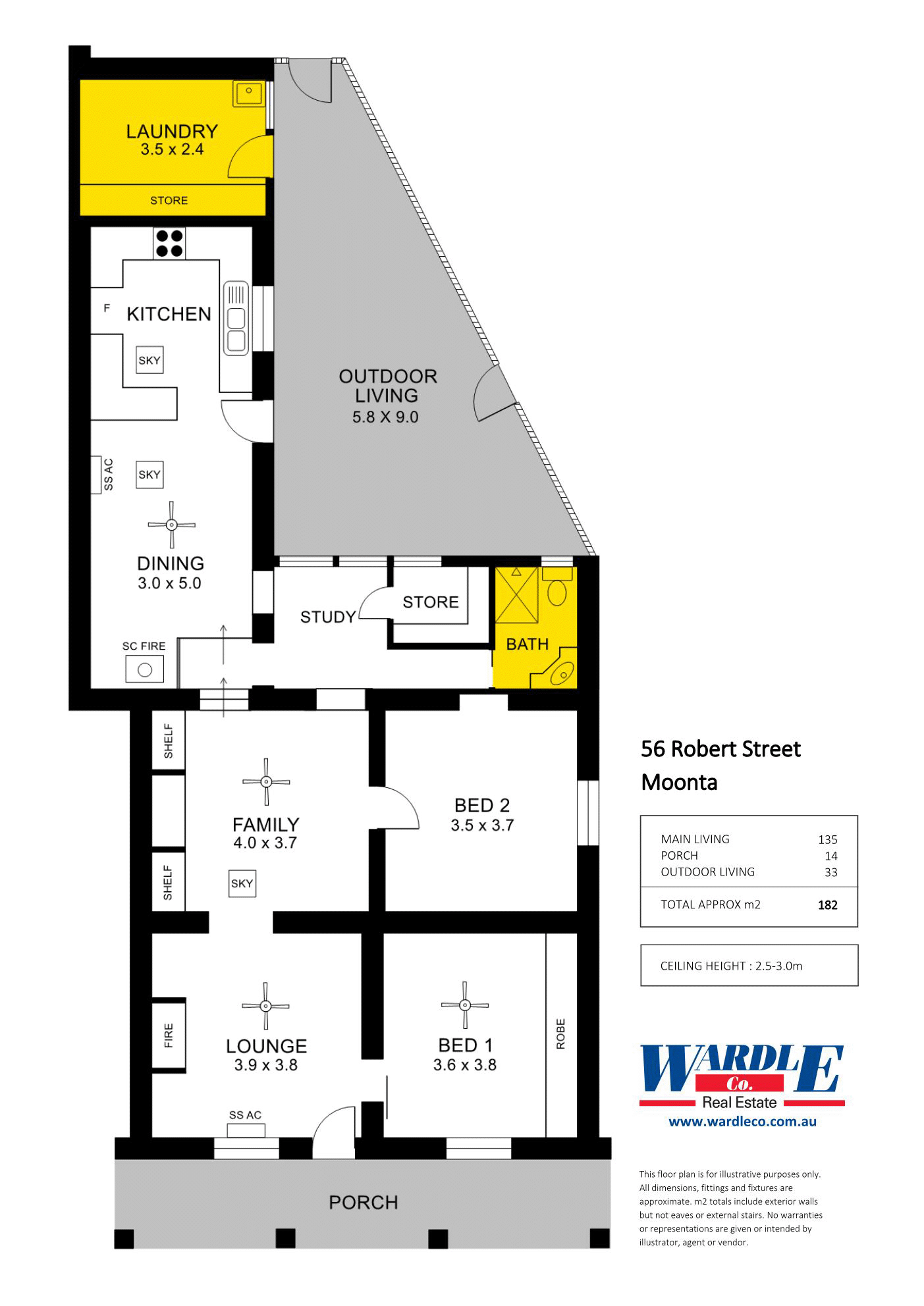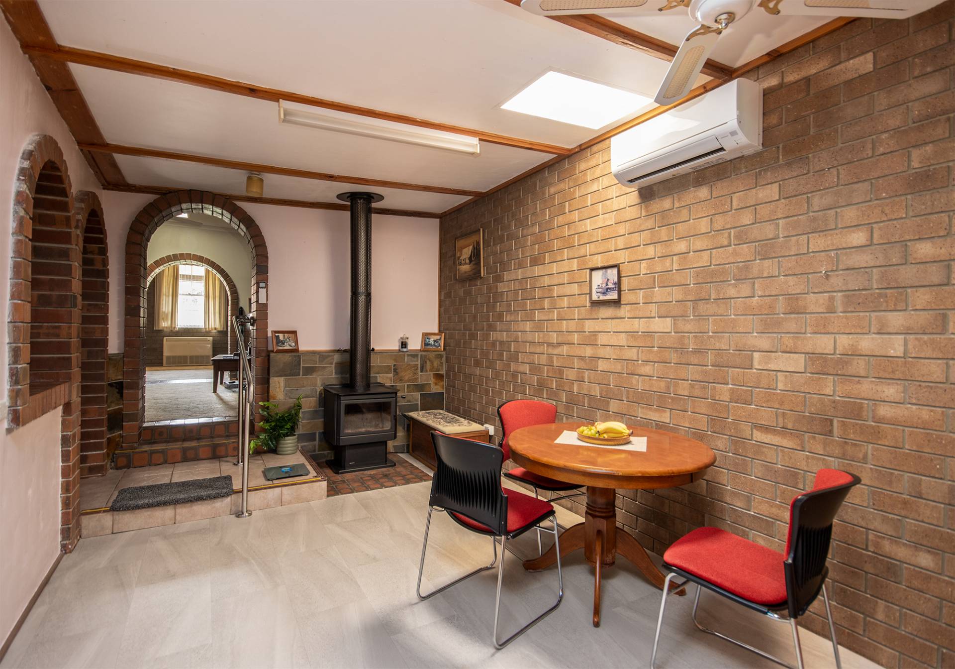 Comprising 2 bedrooms- main with BIR's & ceiling fan, lounge with open fire place, split system A/C & ceiling fan, family room, kitchen/dining area with slow combustion heater, split system A/C, timber cupboards & breakfast bar, bathroom & storage room plus a small study area. Outside offers a front verandah, outdoor living area, sheltered from the weather with access to the laundry. 30'x 20' garage with a carport, outside W.C, garden sheds, shade house & rear cottage with garden. Located close to Queen Square, this is an ideal retirement home, close to the shops & medical facilities. RLA228106