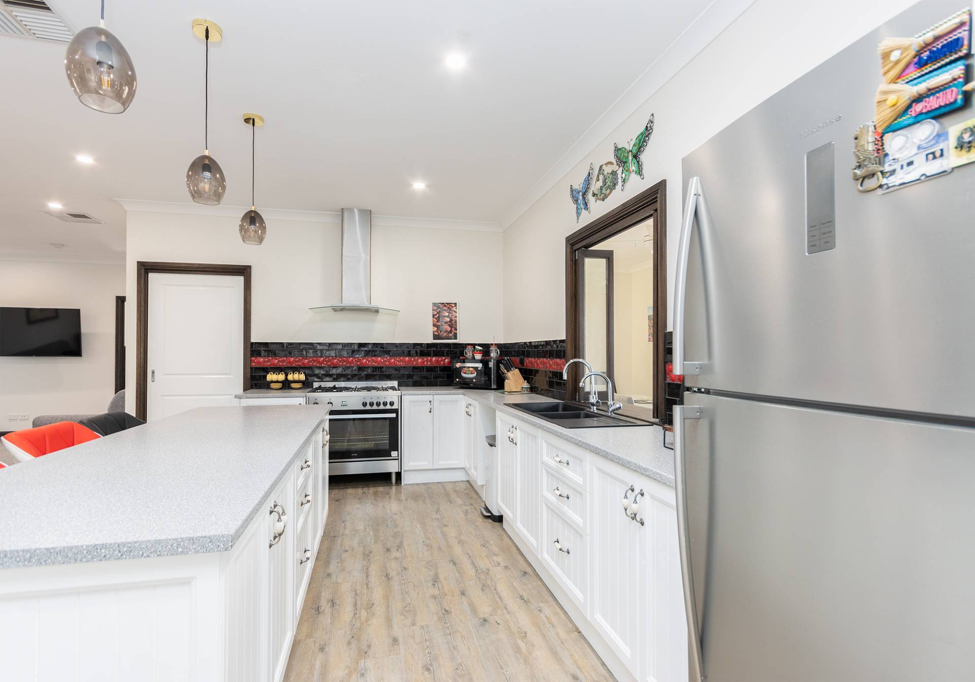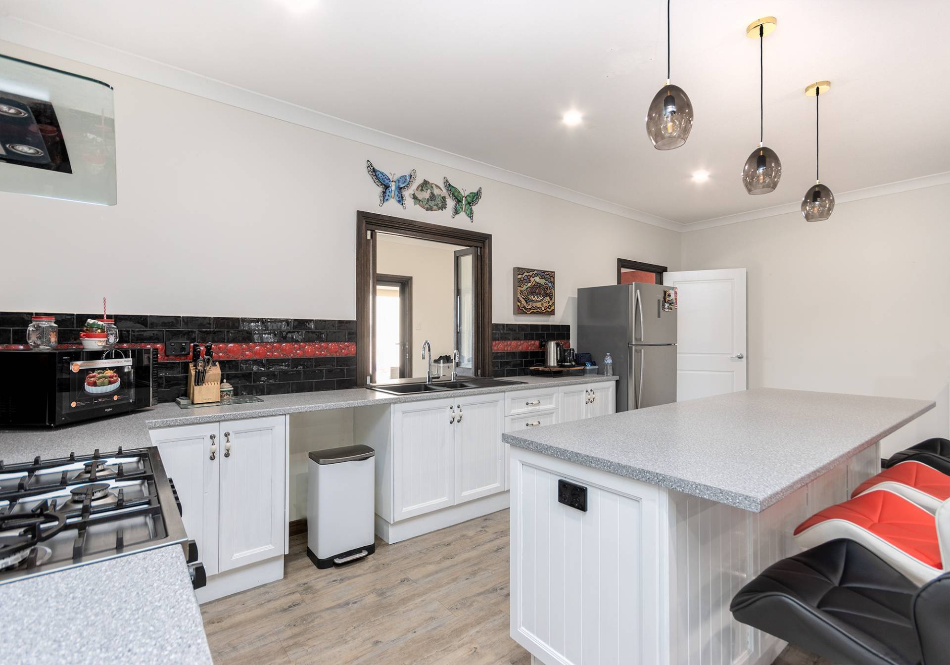 The centre of the home is huge & open plan living area, the kitchen is bright and offers an island bench, walk in pantry, a large gas cooktop and a servery window to another family meals area. The living area has room for the largest of dining tables & spacious lounge. The doorways are wider than normal which is great for wheelchairs and moving furniture around. You can have a relaxing bbq under the rear pergola overlooking your very own peaceful space. Set on a 2.5-acre allotment, which is well fenced and offers 2 garages (6m x 6m plus 15m x 6m). There is a chook house, many fruit trees and loads of rainwater which is connected to the home. Call Ian today to arrange your viewing.