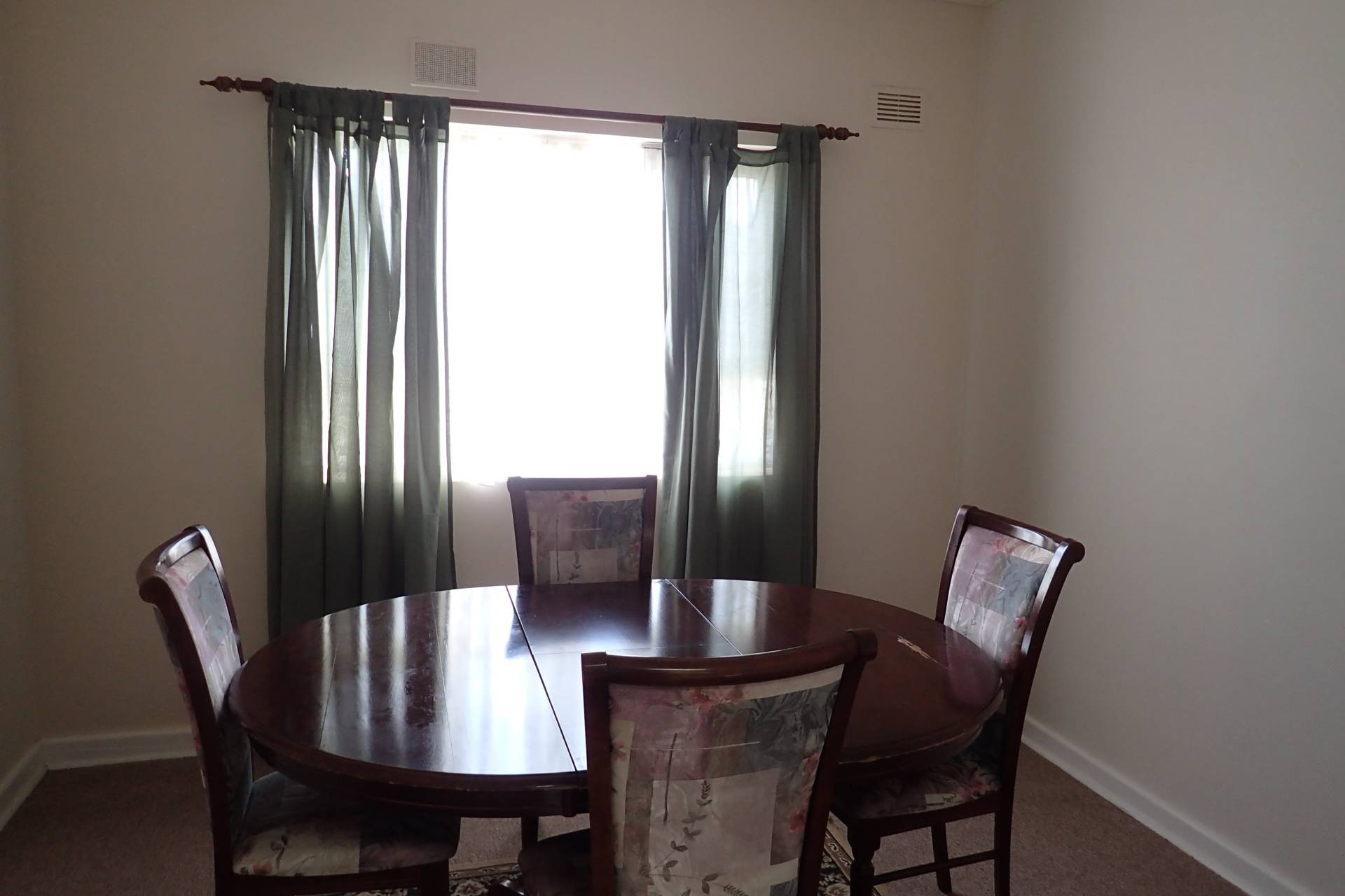 - Lounge room has carpet floor with split system air-con, gas heater and ornate fire place with ceiling fan