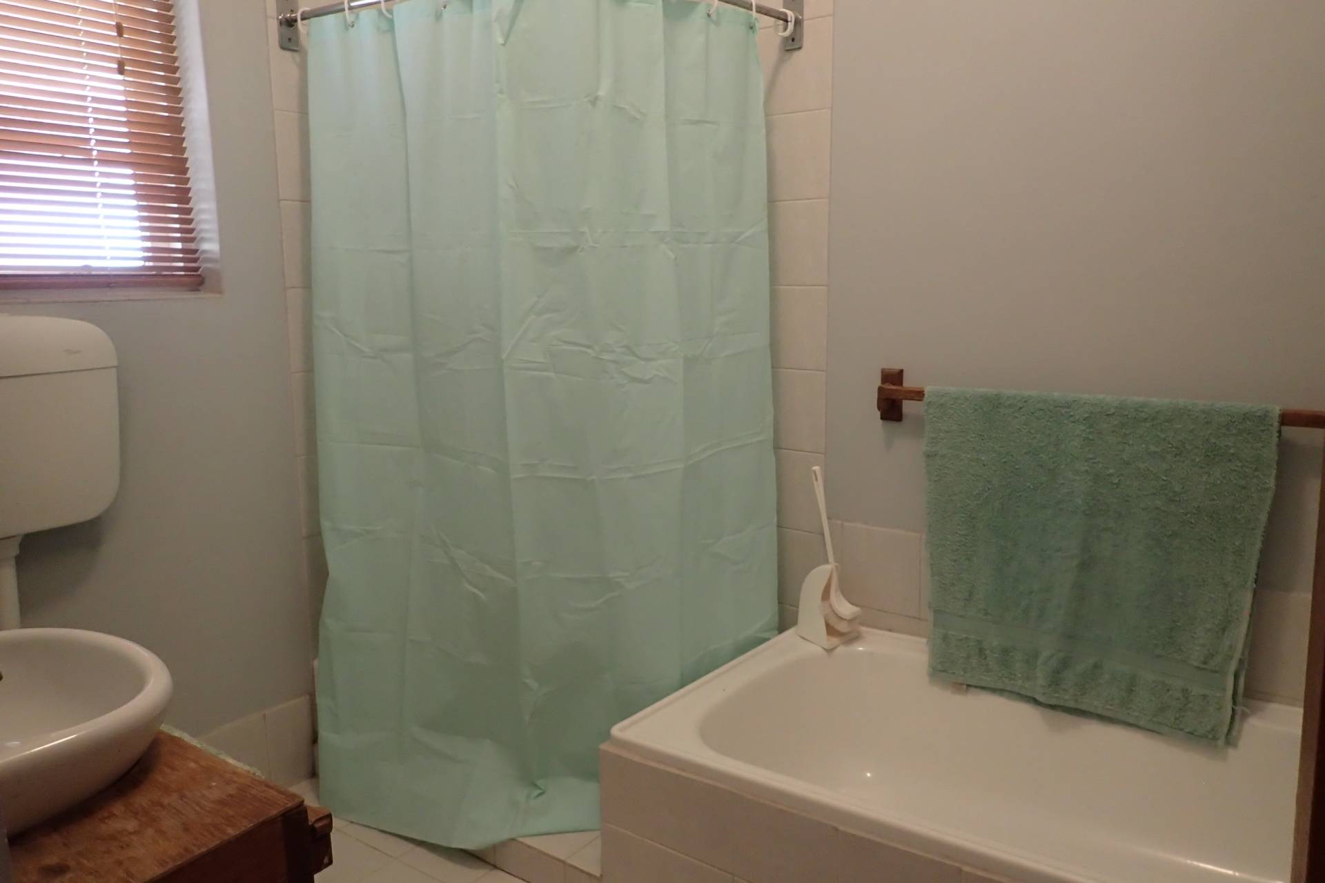 - 1 Bathroom with toilet, shower, bath and hand basin, tiled floor
