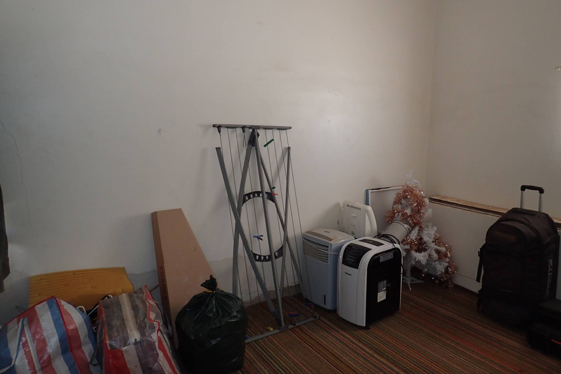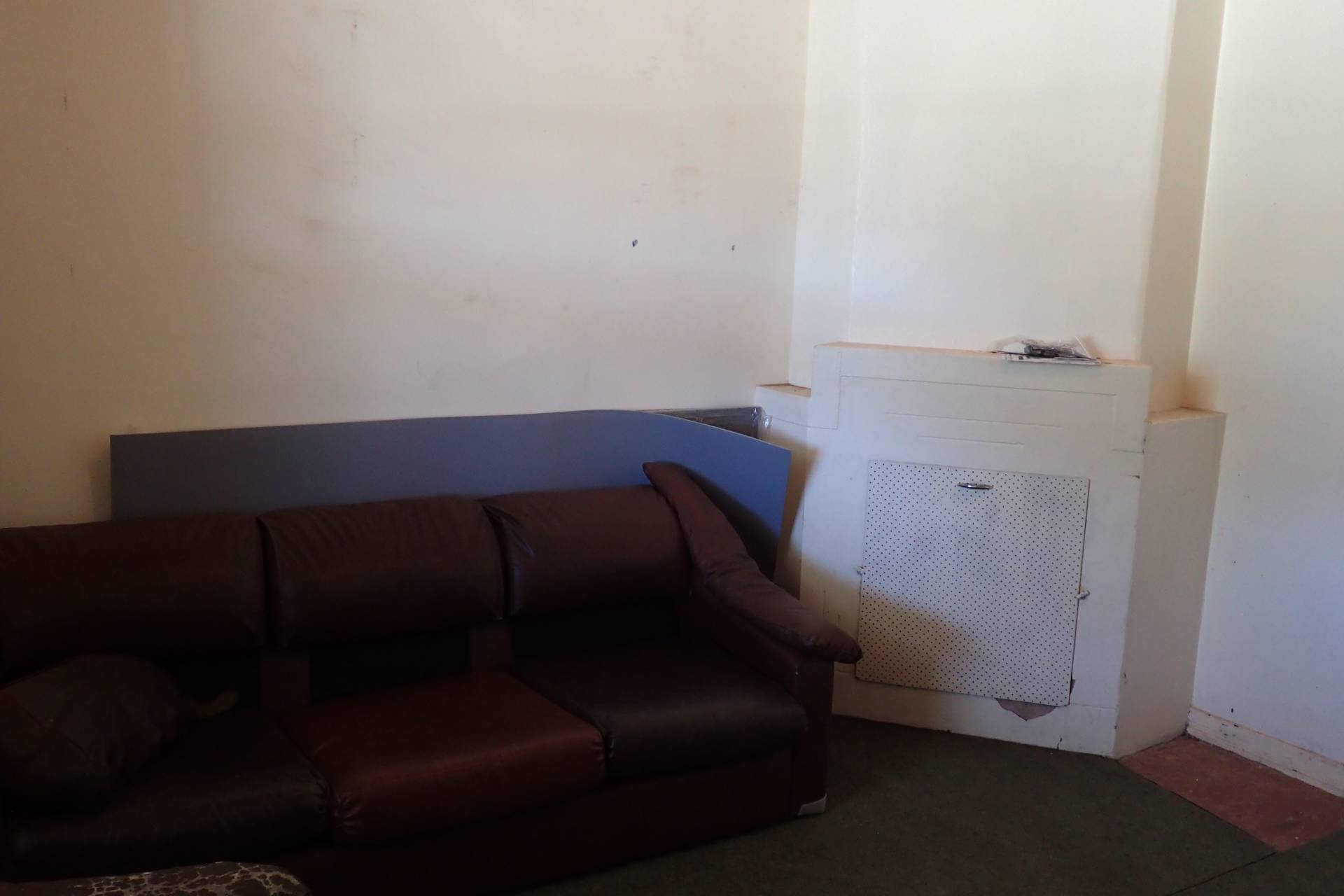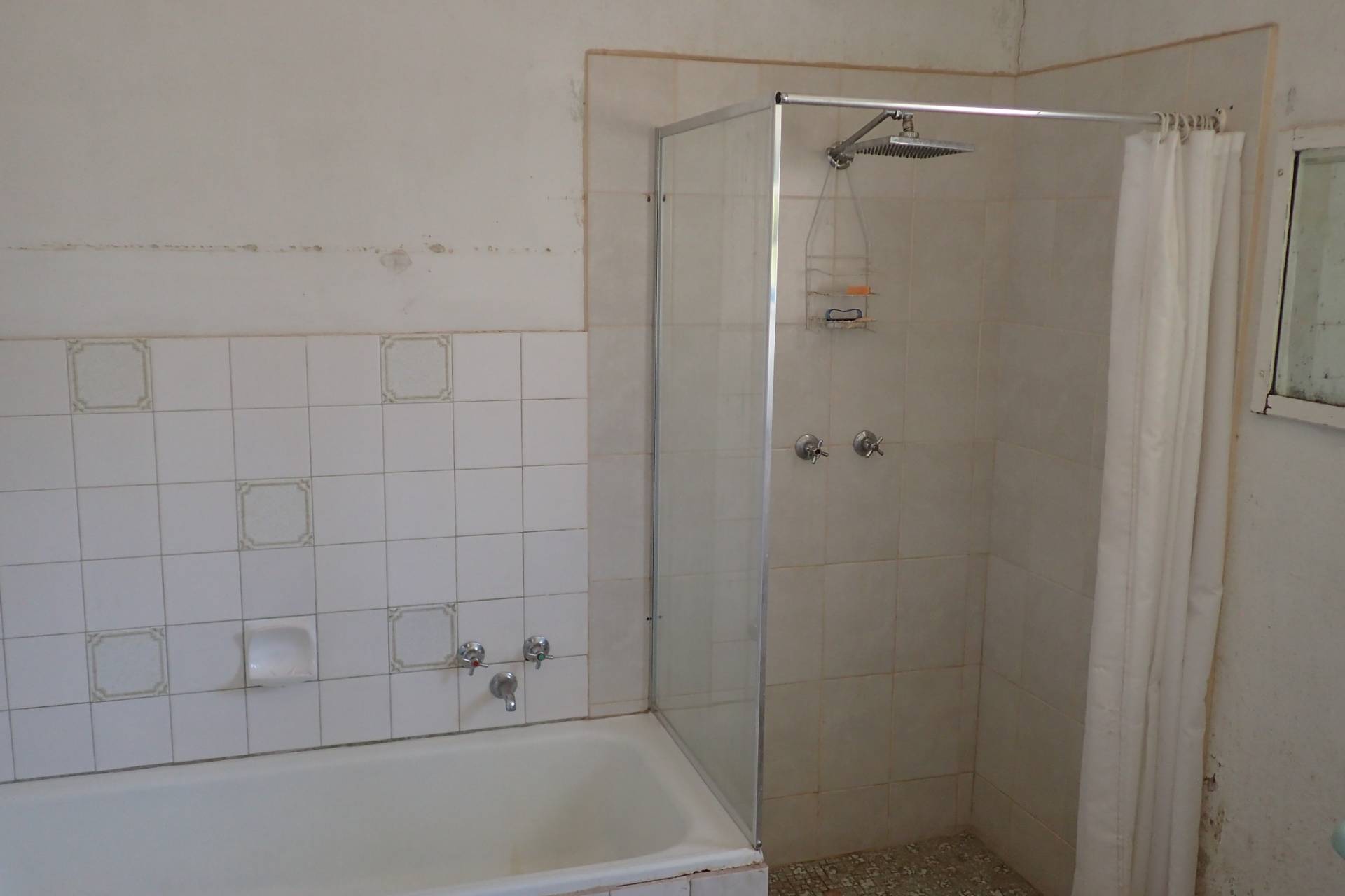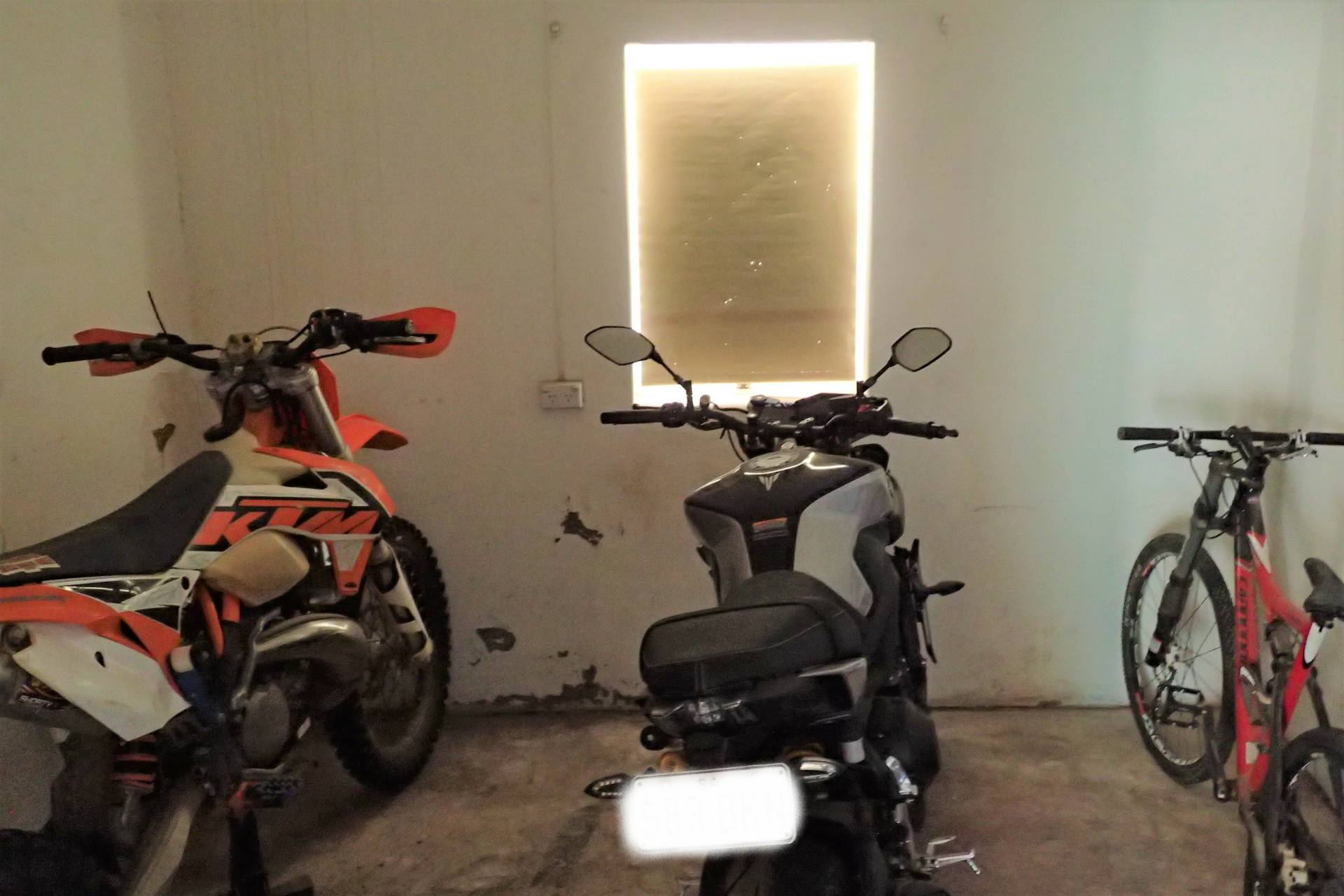 The two bedrooms with carpeted floors, provide a cozy living space. The third bedroom could double as a study and currently has concrete floor. The bathroom has a shower, bath, and hand basin, and the tiled floor is easy to clean.
