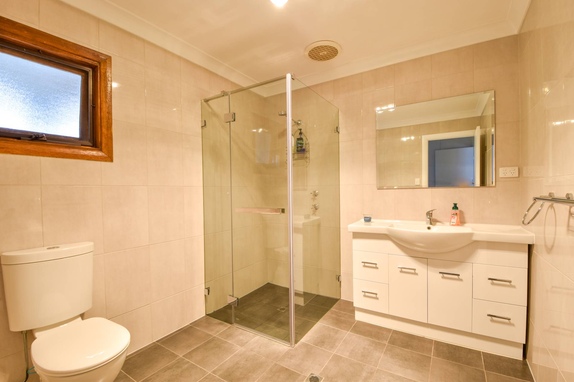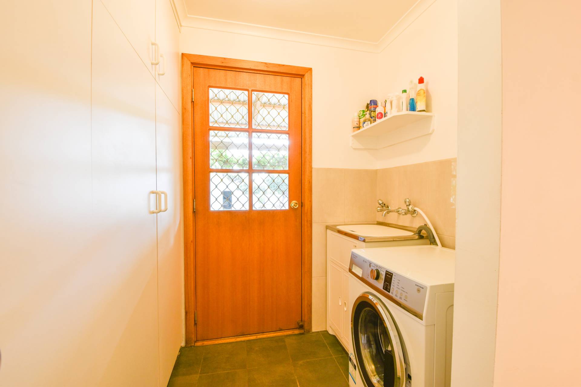 With a stainless steel wash trough and plenty of linen storage, making it a functional and convenient laundry. The outdoor patio area paved with ample space and featuring a gable roof make a great place to relax and entertain.