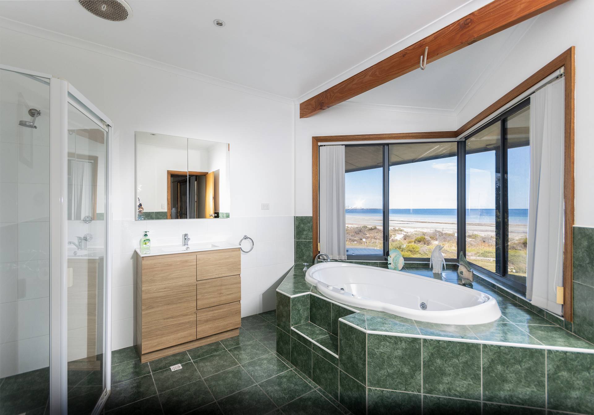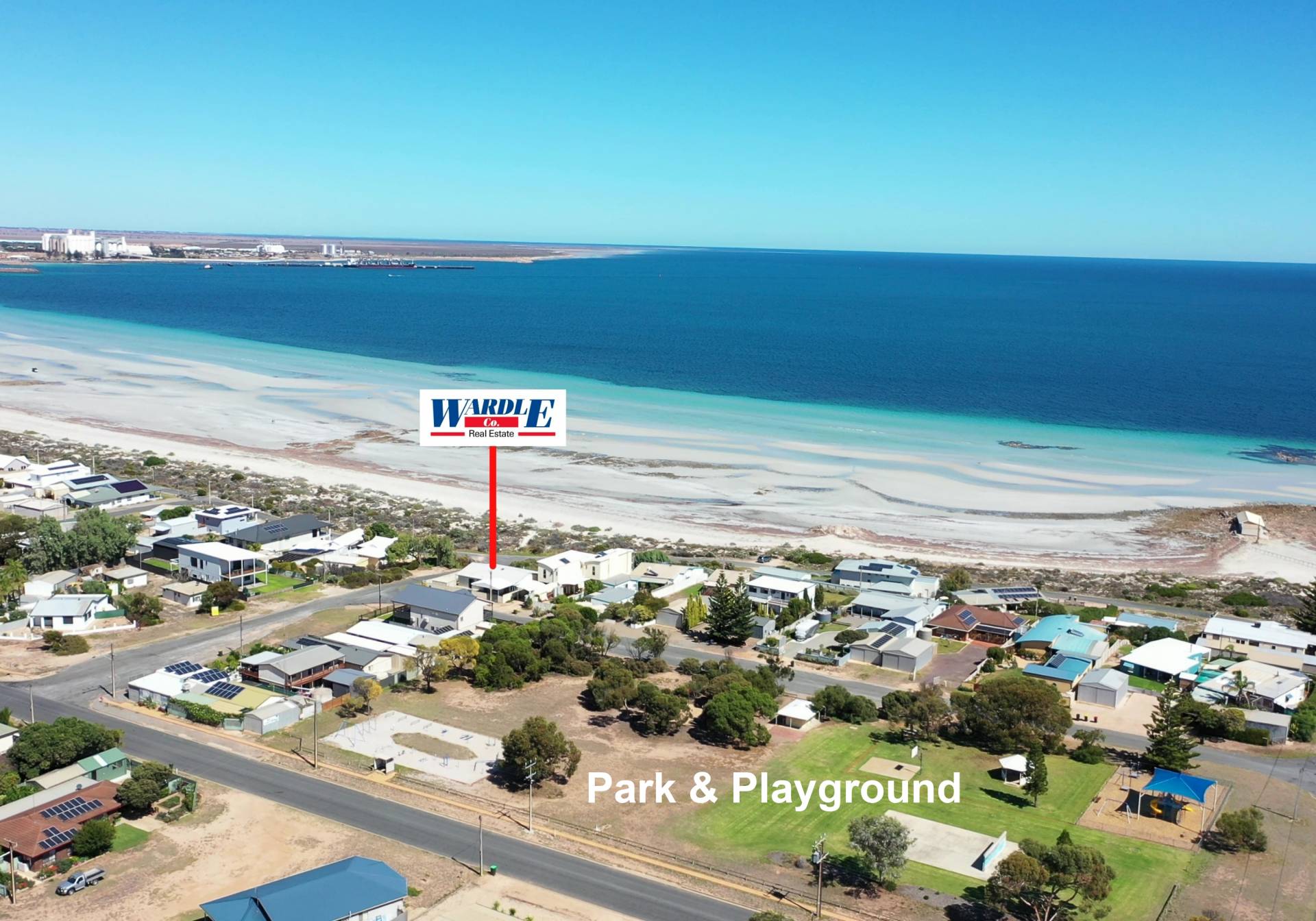 Its not often you get the opportunity to secure a front row property at North Beach with stunning water views like this parcel of paradise. You could retire here, holiday or use as a holiday rental. Comprising 3 bedrooms, the main offering a large walk-in robe plus a huge ensuite with a spa bath with window views to the beach. Imagine enjoying a spa with a glass of your favourite beverage looking across the bay to the lights of Wallaroo. This could be you! The main bathroom is also quite spacious as is the laundry. The open plan living is awesome with sea views from the kitchen, dining and lounge. Outside offers a full-length verandah to relax and watch the world go by. There is also a path direct to the beach for your convenience. Located on a handy corner allotment and just a short walk to the park and playground. Don’t miss this opportunity!