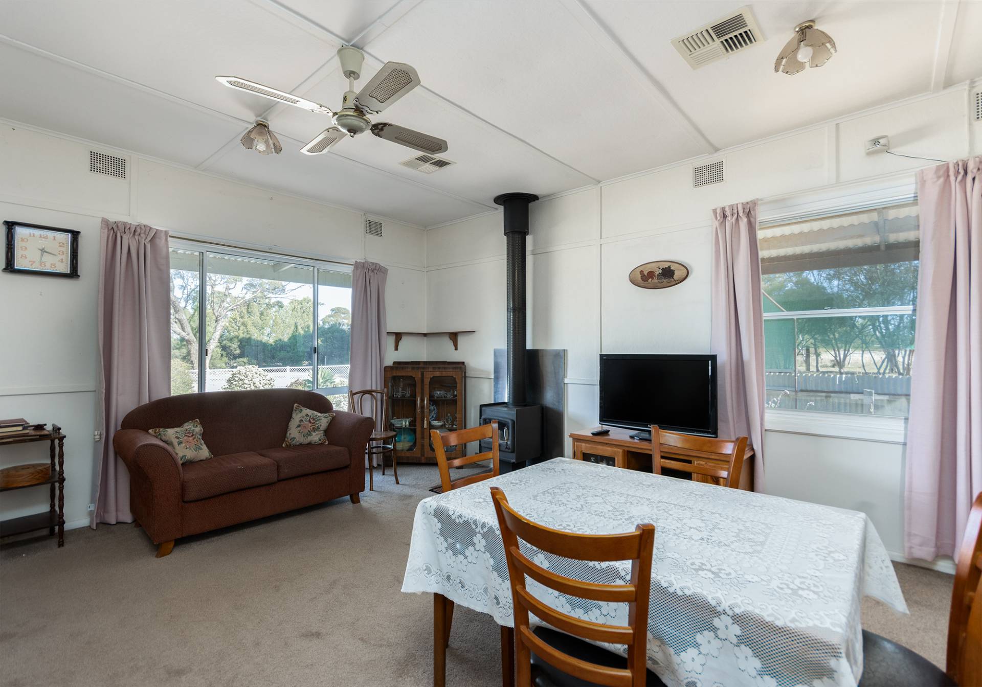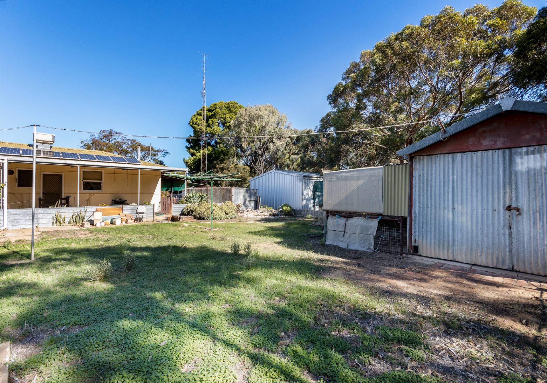 This 2 bedroom timber framed home is located in the country township of Bute which boasts great sporting facilities, corner IGA store, community gym and a primary school / rural care center. The property offers an open plan kitchen / meals / lounge area with a slow combustion heater, family room which could also be used as a third bedroom, bathroom with shower and vanity, separate w/c and laundry. Outside has a back verandah, side verandah, double garage with c/f and power, lean-to, 20'x 20'shed with c/f and power, single shed with c/f and power, chook run, olive trees and a fenced yard. The property benefits from ducted reverse cycle a/c in the living area and two bedrooms and also has a solar system. This is rural living situated on two allotments totaling approx 4064 m2. Call Brenton today to arrange an inspection.