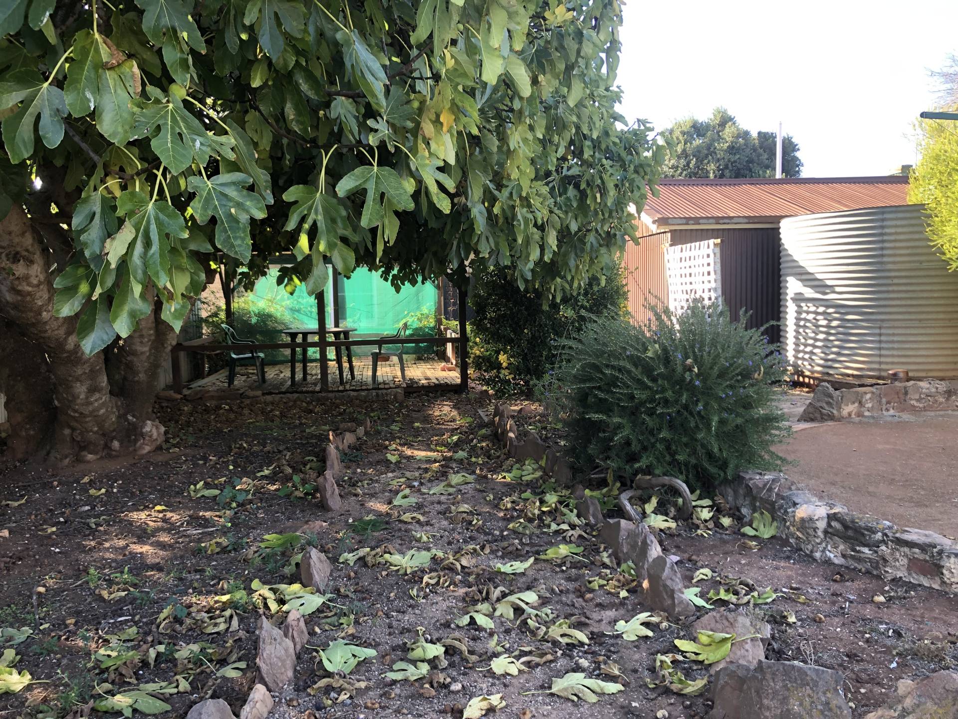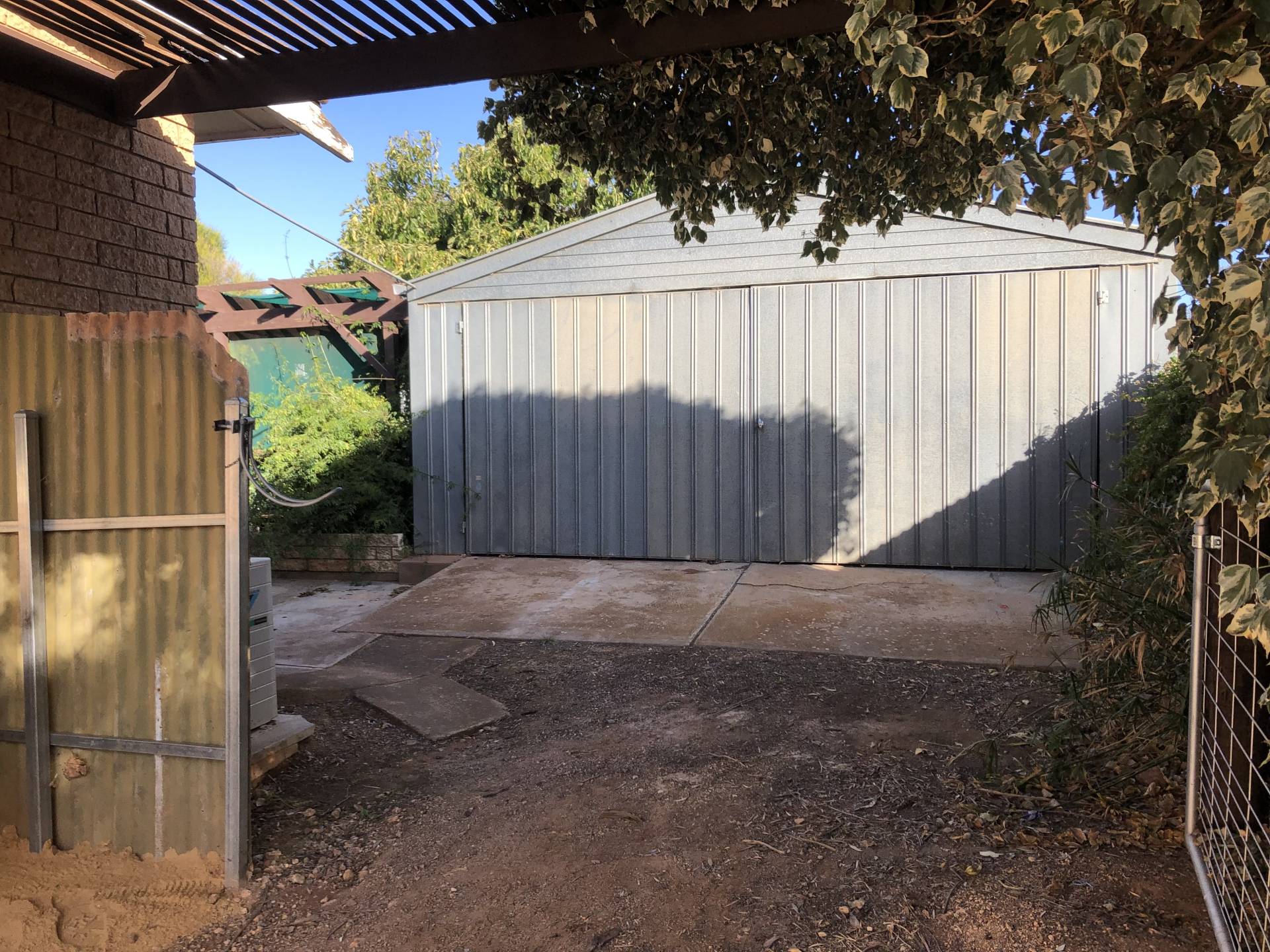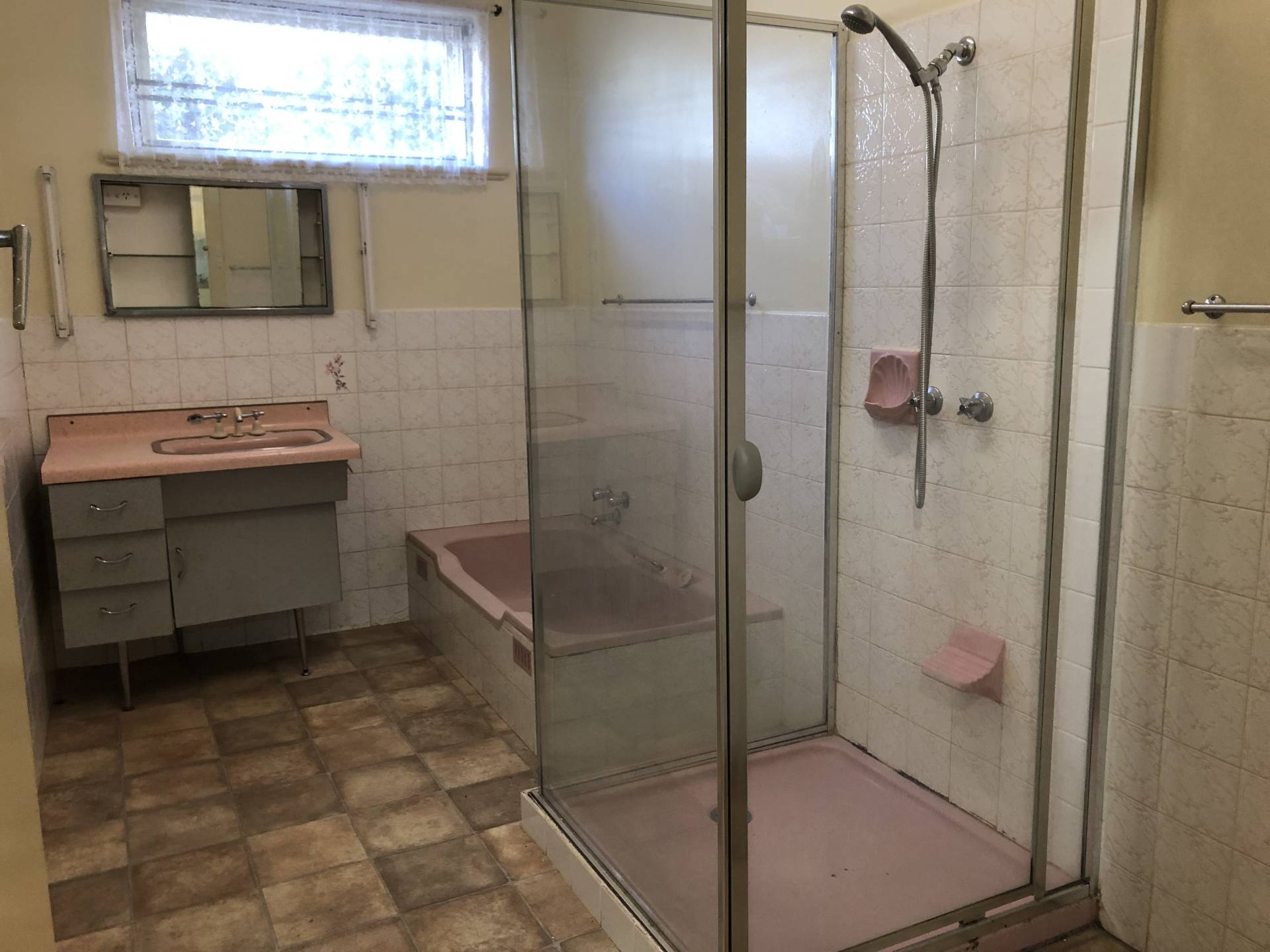 Large bathroom with a separate shower alcove & a bath. Back porch with built-in storage units, separate laundry & toilet.