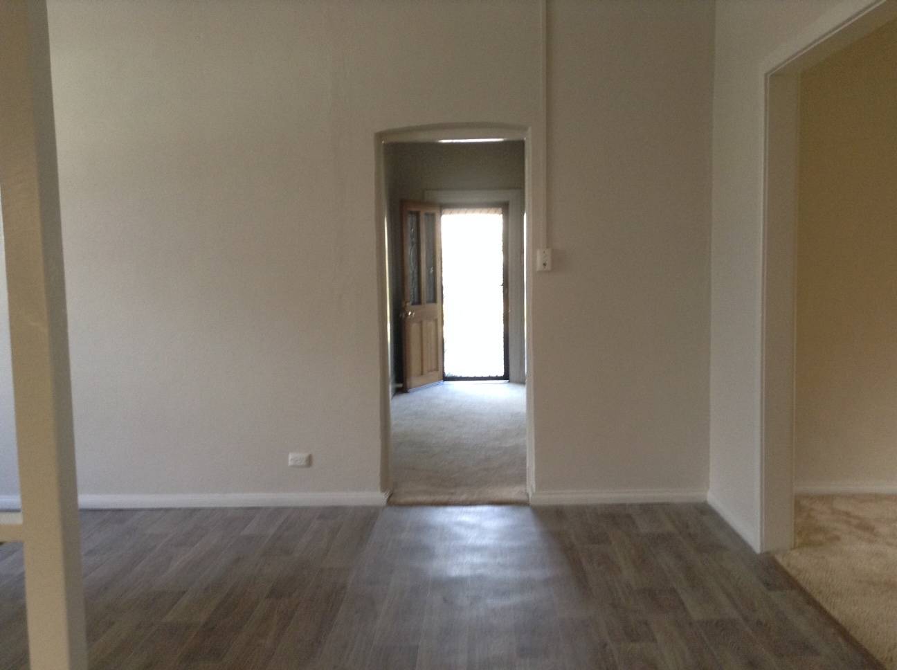 Loungeroom has carpet flooring, dining area lino and the kitchen has slate flooring, electric freestanding oven.