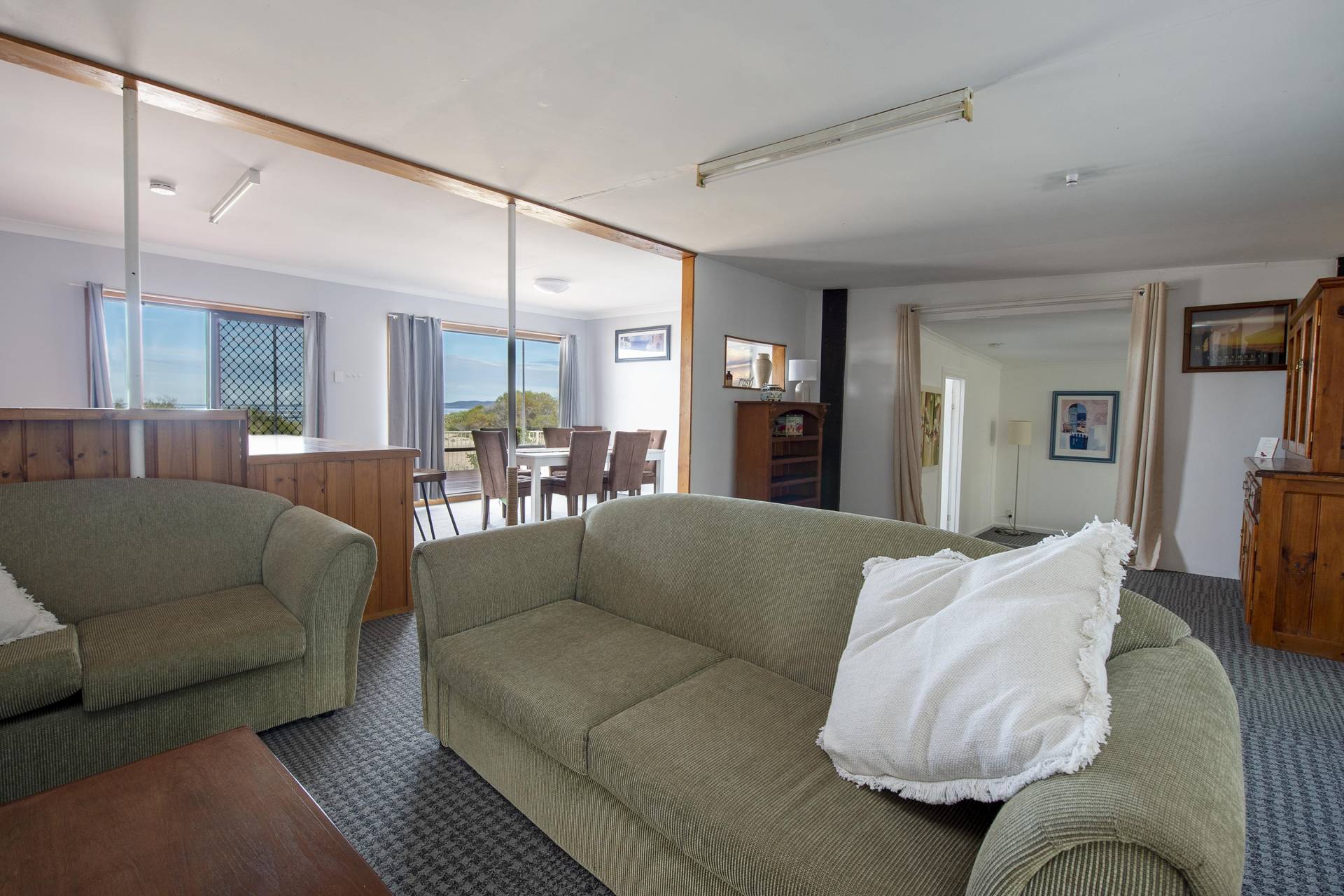 As you step inside, you'll be greeted by a spacious kitchen and dining area adorned with expansive windows that perfectly frame the stunning views. Adjacent to this is a generous lounge area, complete with a split system air conditioner and gas wall heater, ensuring year-round comfort no matter the weather. The property boasts three bedrooms, and in addition to that, there is a second sprawling living space that can accommodate an abundance of bunks, making it ideal for hosting all the family and guests.