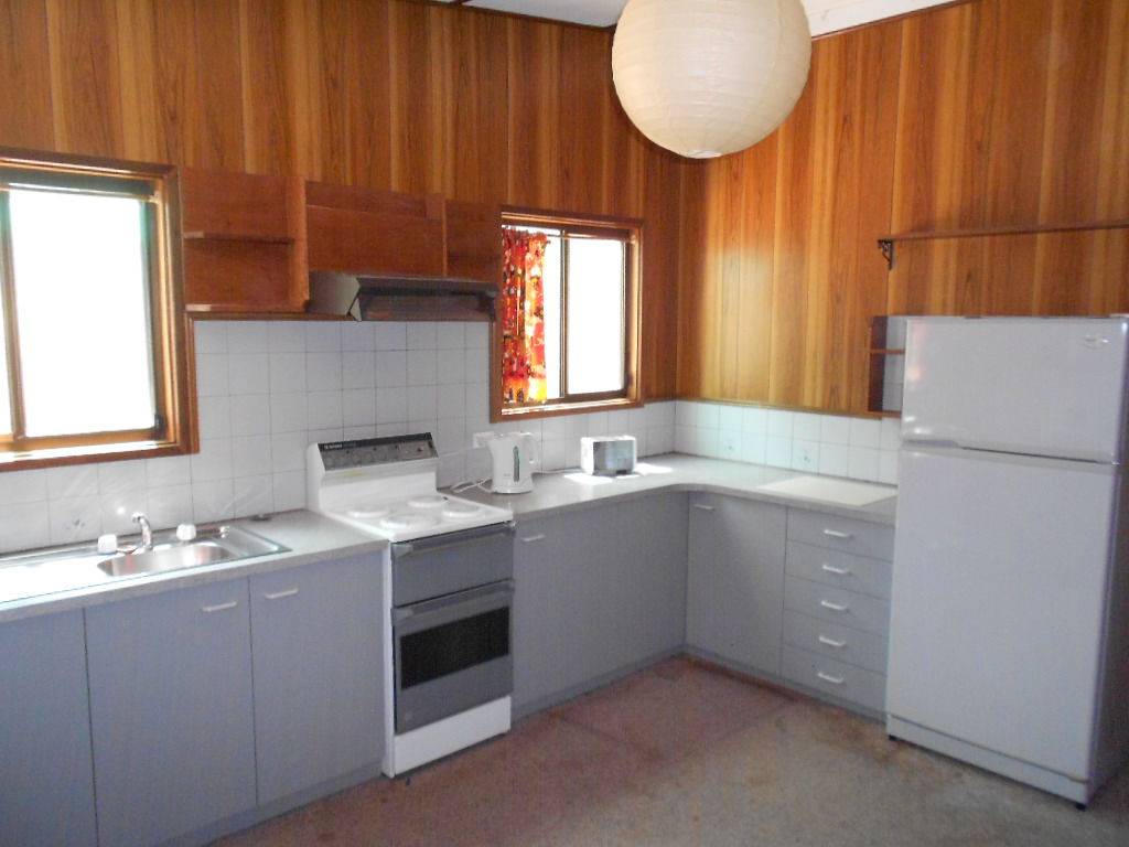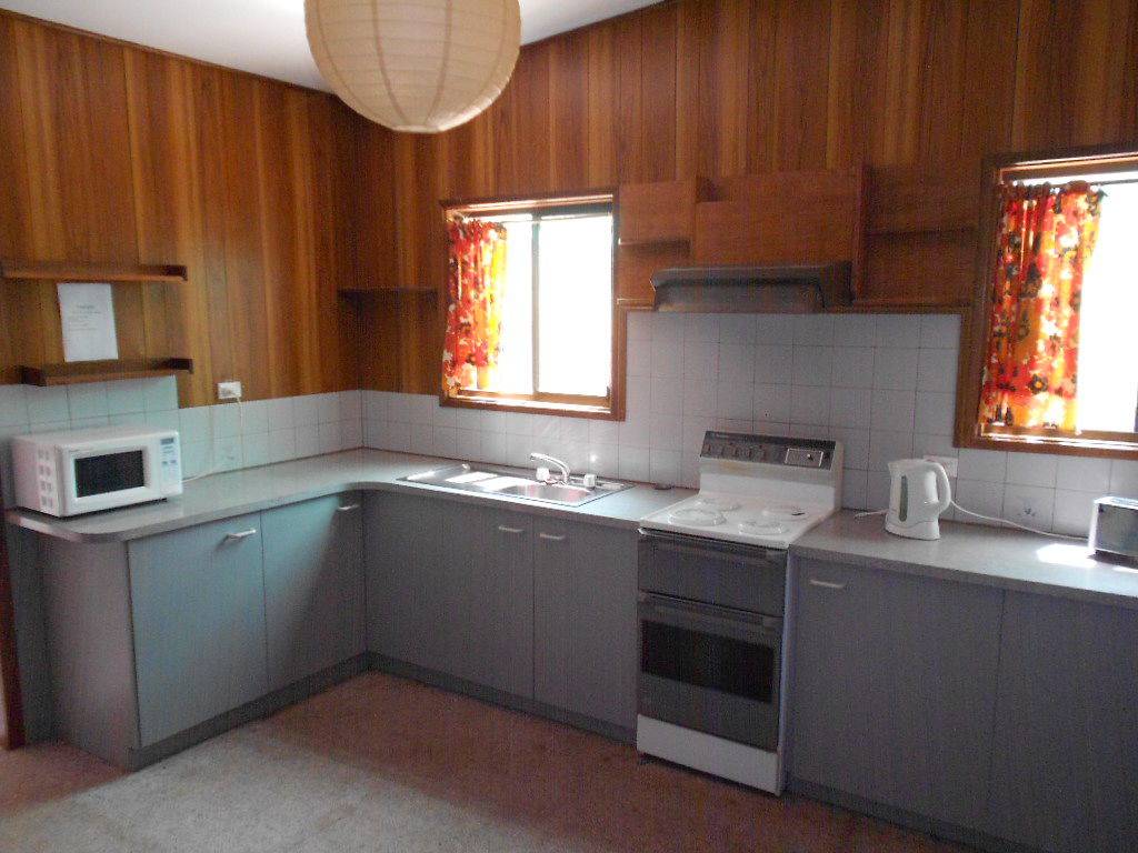 - Kitchen is simple and clean with laminate benchtops and electric freestanding oven