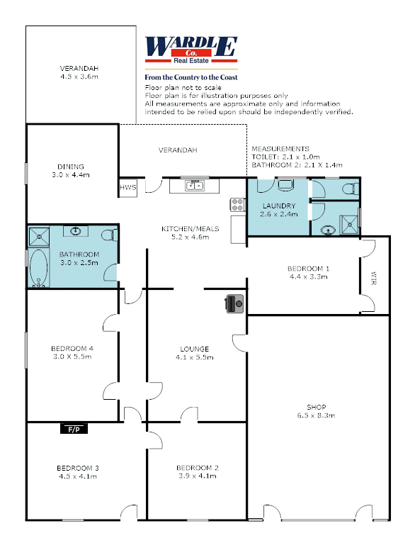 - 4 Bedrooms, 2 Bathrooms, 1 shop