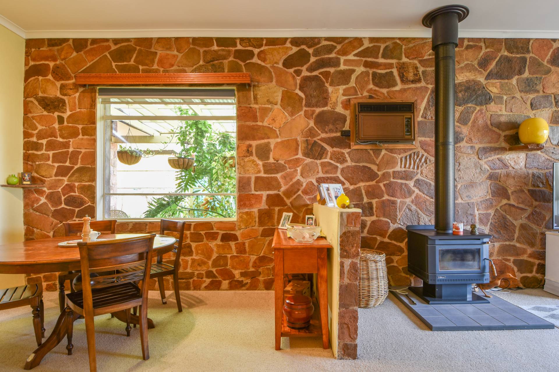The spacious lounge/meals area features double sliding doors, a stunning stone feature wall with a slow combustion wood fire and a split system reverse cycle air conditioner. It's the perfect place to relax and entertain guests.