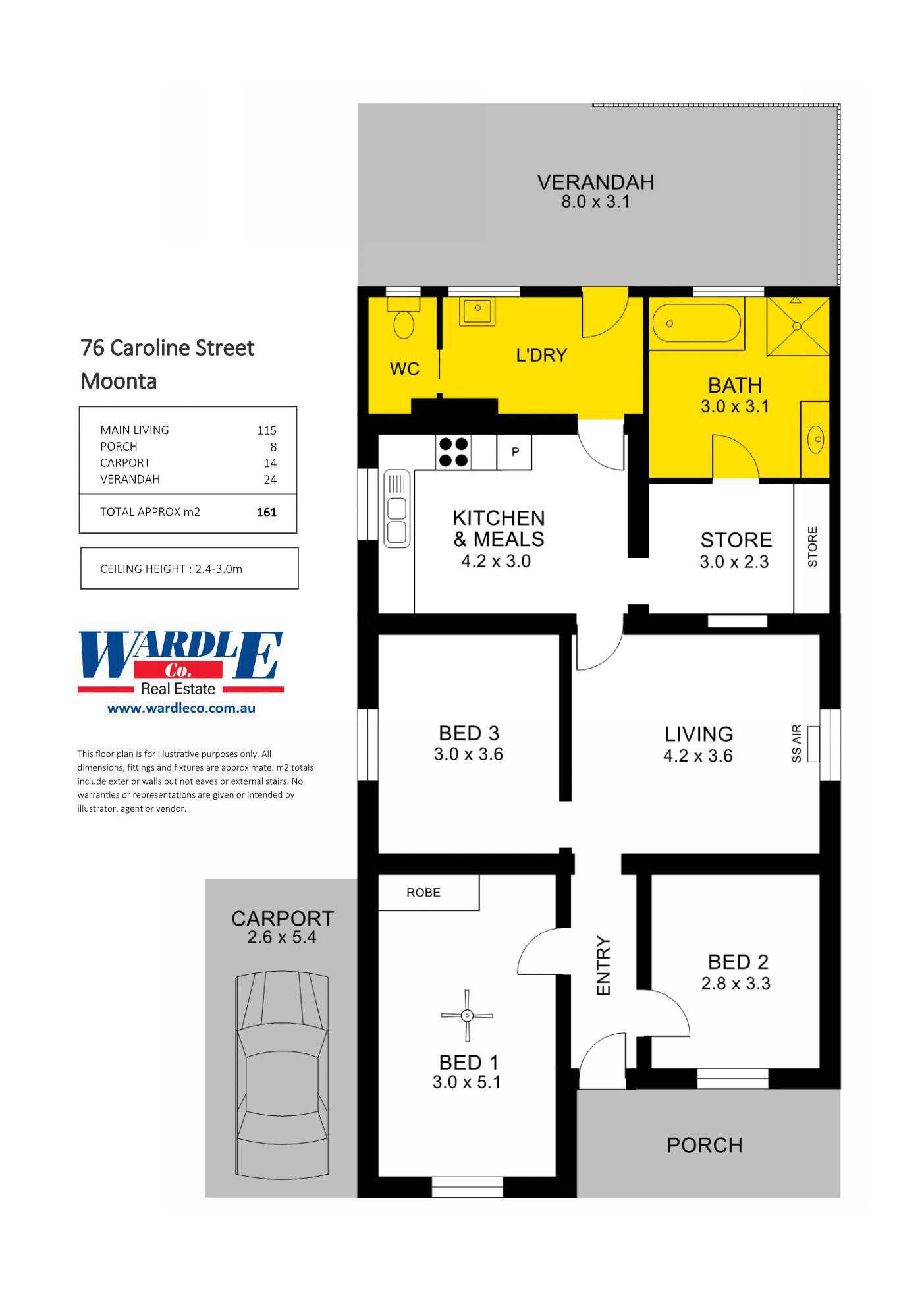 Consisting of 3 bedrooms, main with built in robes, kitchen/dining room, lounge with a split system air conditioner, bathroom, laundry & sep. W.C.