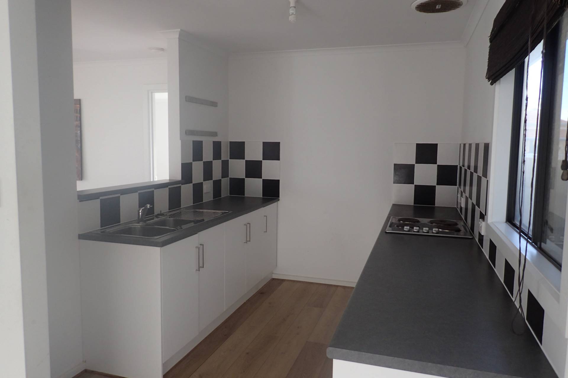 - Open plan kitchen dining area, floating floor boards, electric cook top with under bench oven
