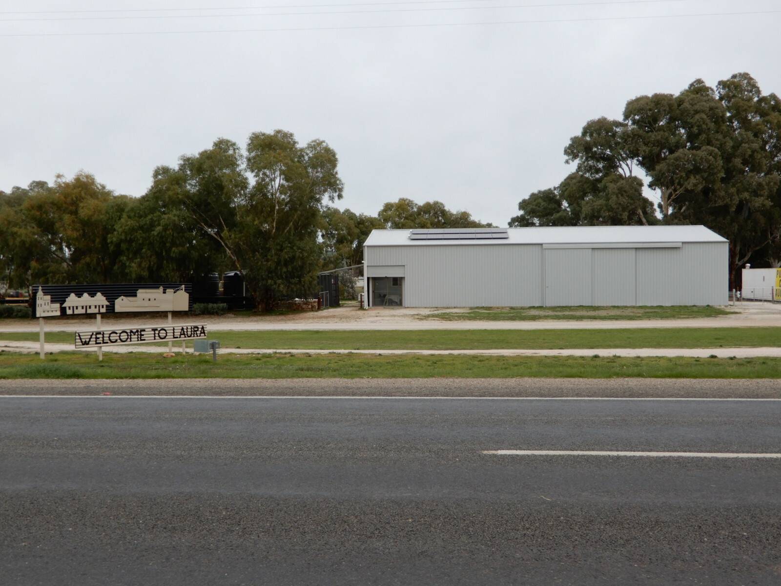 This large industrial shed is located on the outskirts of Laura set back from the busy Horrocks Highway giving good access for heavy vehicles/run your own business. Highly visible frontage for locals and the many tourists travelling throughout the Flinders Ranges. Built in 2018 on a spacious 3550 square meter parcel of land having standalone power (able to connect to mains and 3 phase) and water.