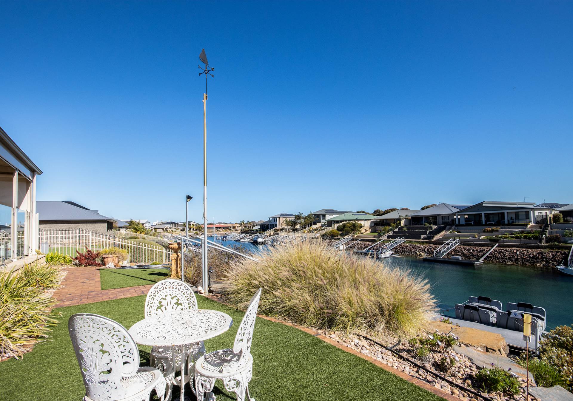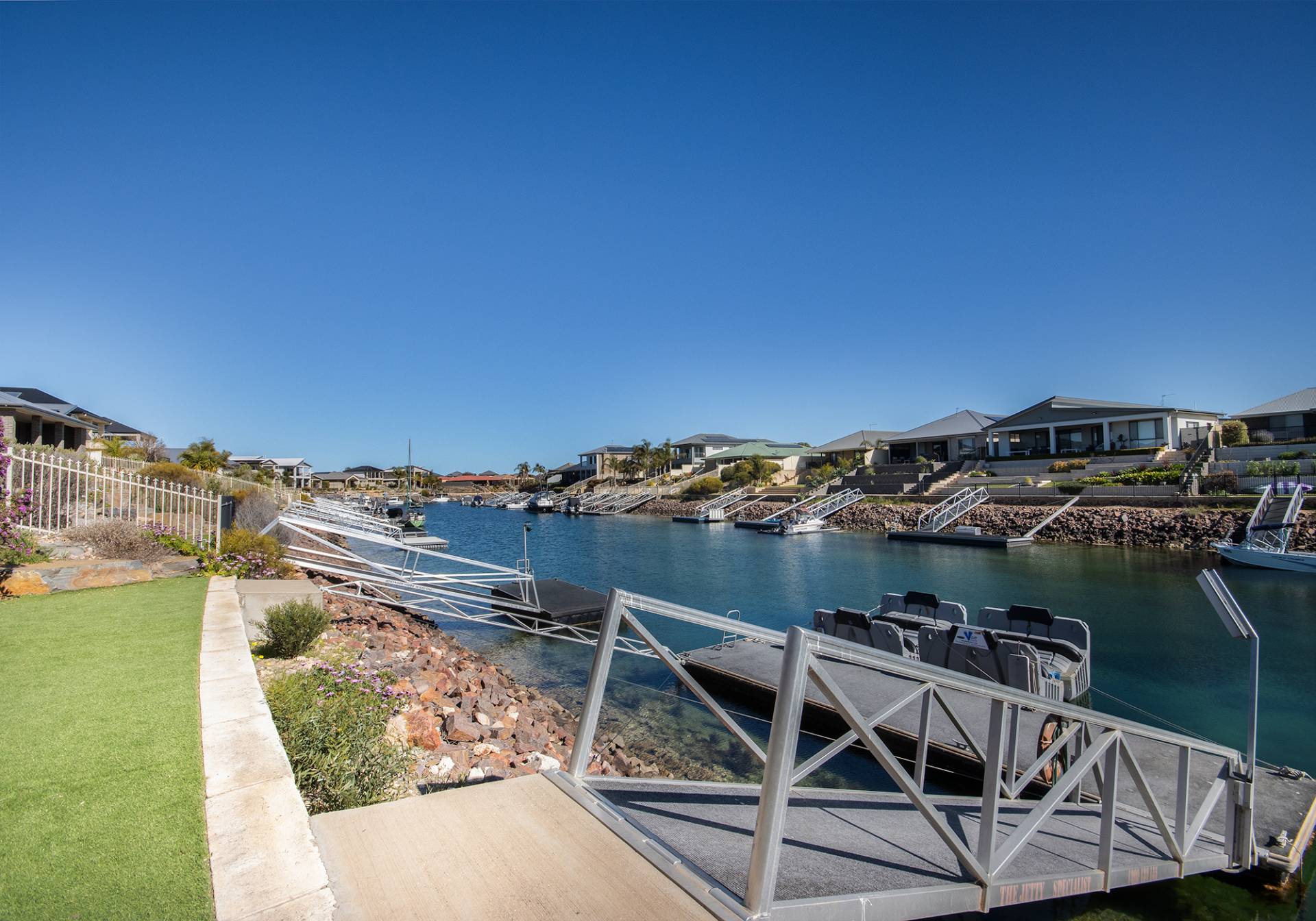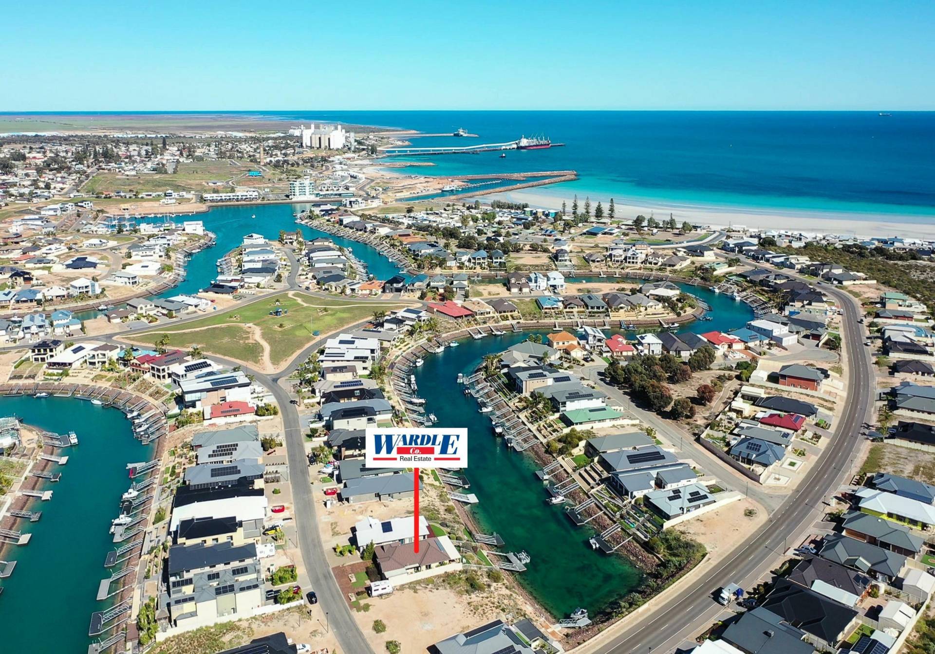 A stunning waterfront marina property that offers the ultimate in waterfront living and walking distance to the amazing North Beach. This beautiful home boasts 4 bedrooms and a 2-way bathroom with separate shower and double vanity and a spa, perfect for relaxing after a long day. With multiple living areas, there is plenty of space for the whole family to enjoy. Laundry, store room and 2nd toilet. The large alfresco area with water views is perfect for entertaining guests or simply enjoying the beautiful surroundings. The property also features a double garage umr, plus carport with extra off-street parking, providing ample space for all your vehicles. With solar panels and beautiful landscaping to water, this home is both energy-efficient and environmentally friendly. And with your own 10m pontoon for your boat or jet ski, you can enjoy easy access to the water whenever you want. Don’t miss out on this incredible opportunity to own your own piece of paradise! EOI Closes 2pm on Monday 11th September.