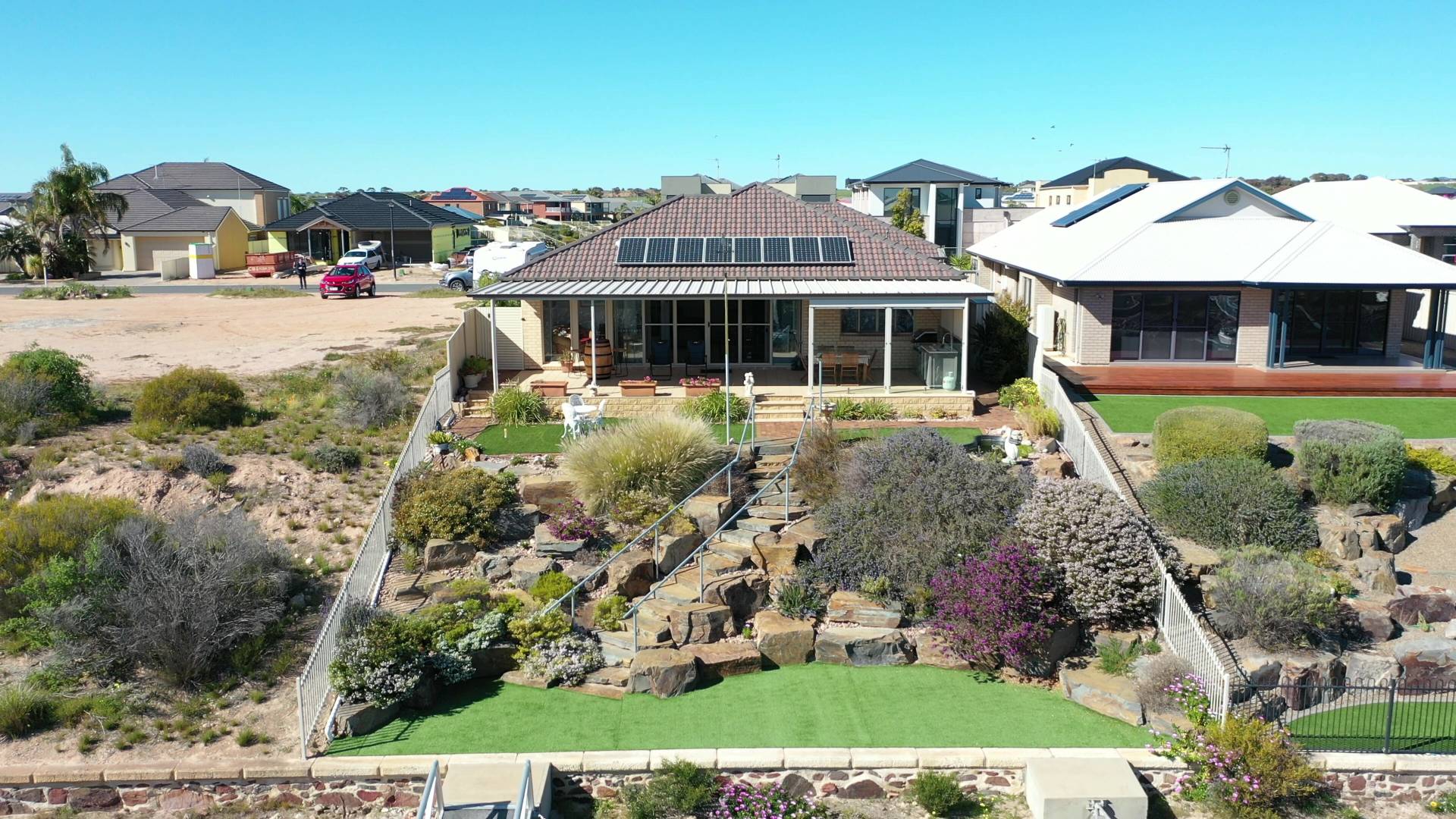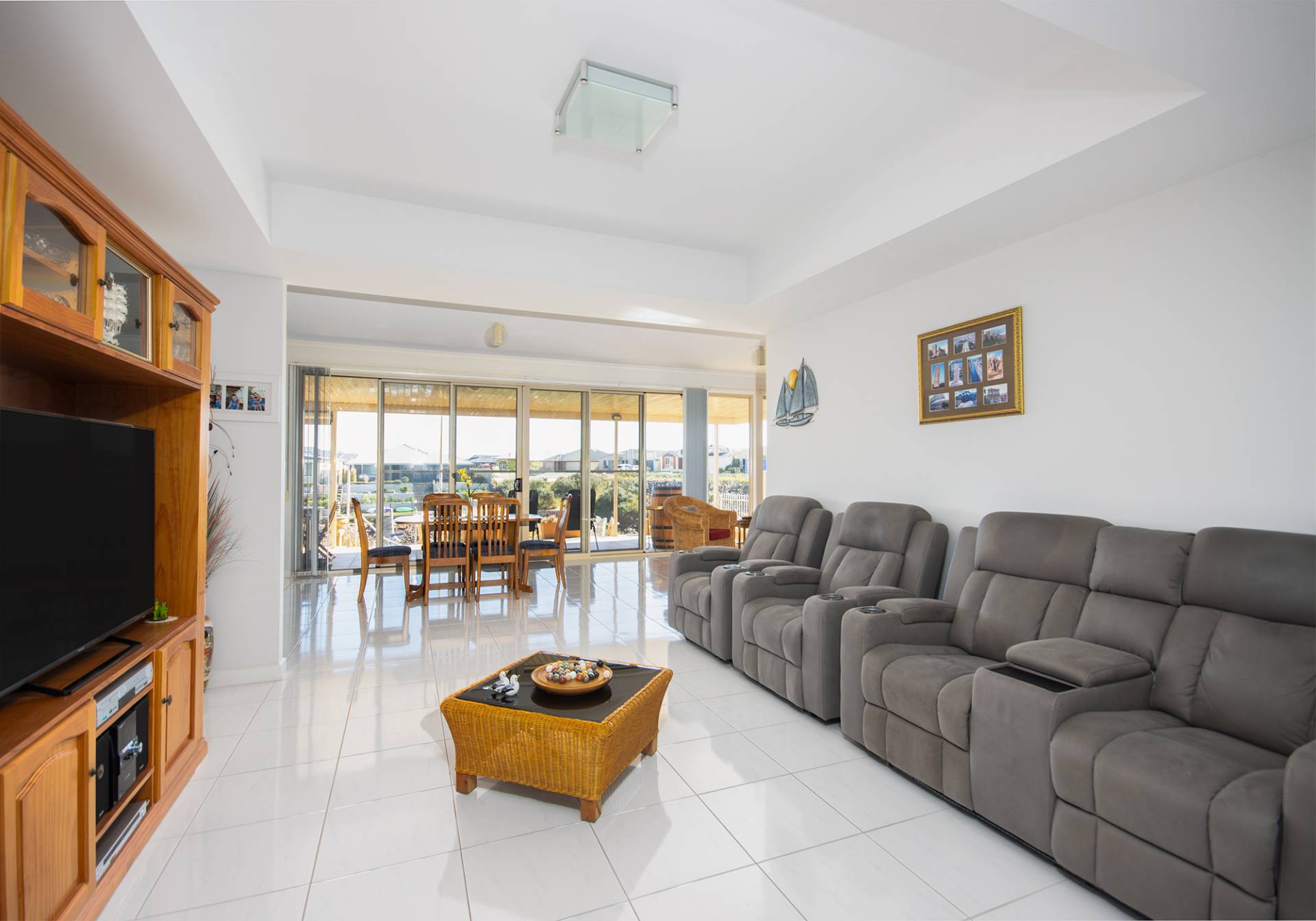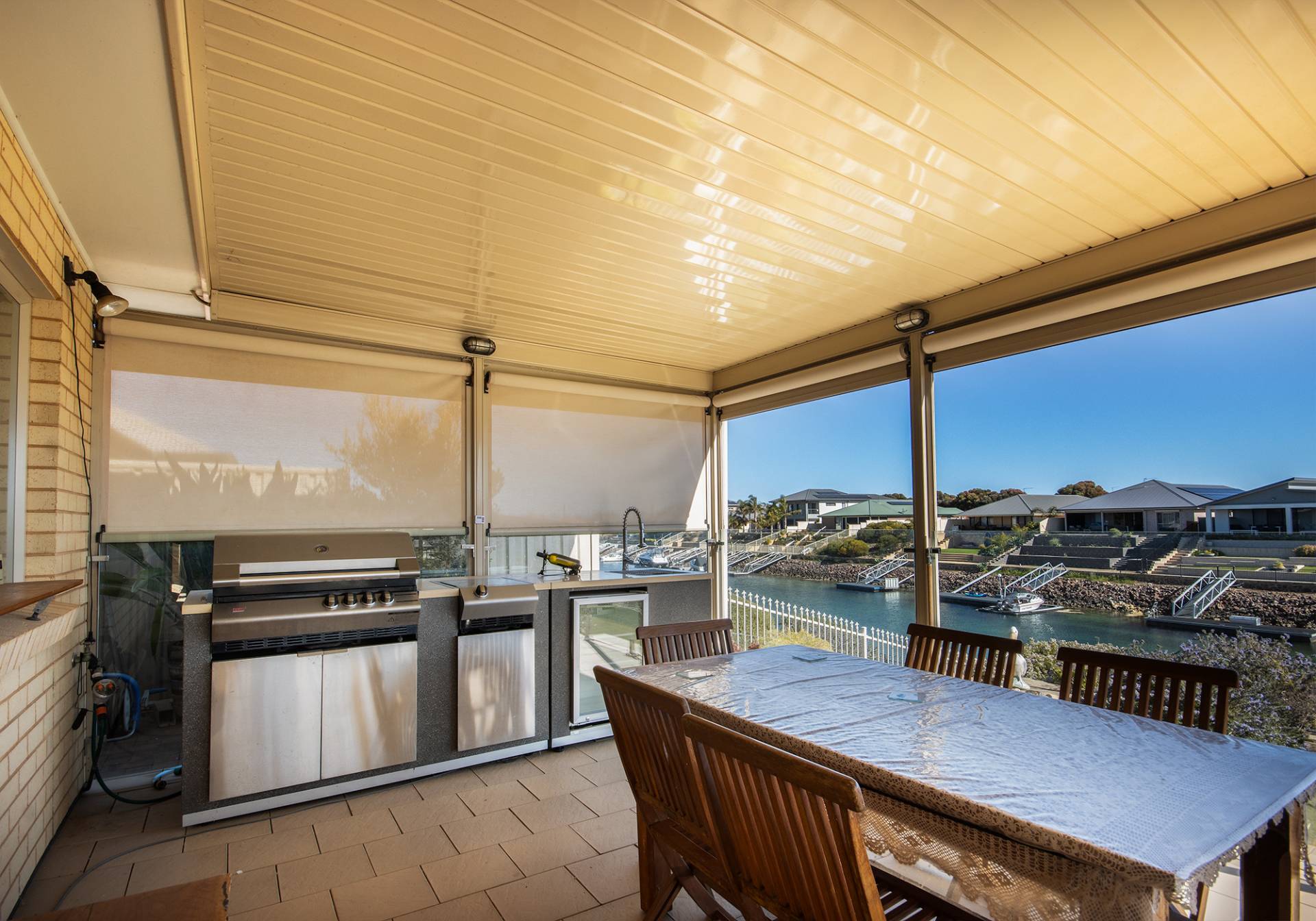 A stunning waterfront marina property that offers the ultimate in waterfront living and walking distance to the amazing North Beach. This beautiful home boasts 4 bedrooms and a 2-way bathroom with separate shower and double vanity and a spa, perfect for relaxing after a long day. With multiple living areas, there is plenty of space for the whole family to enjoy. Laundry, store room and 2nd toilet. The large alfresco area with water views is perfect for entertaining guests or simply enjoying the beautiful surroundings. The property also features a double garage umr, plus carport with extra off-street parking, providing ample space for all your vehicles. With solar panels and beautiful landscaping to water, this home is both energy-efficient and environmentally friendly. And with your own 10m pontoon for your boat or jet ski, you can enjoy easy access to the water whenever you want. Don’t miss out on this incredible opportunity to own your own piece of paradise! EOI Closes 2pm on Monday 11th September.