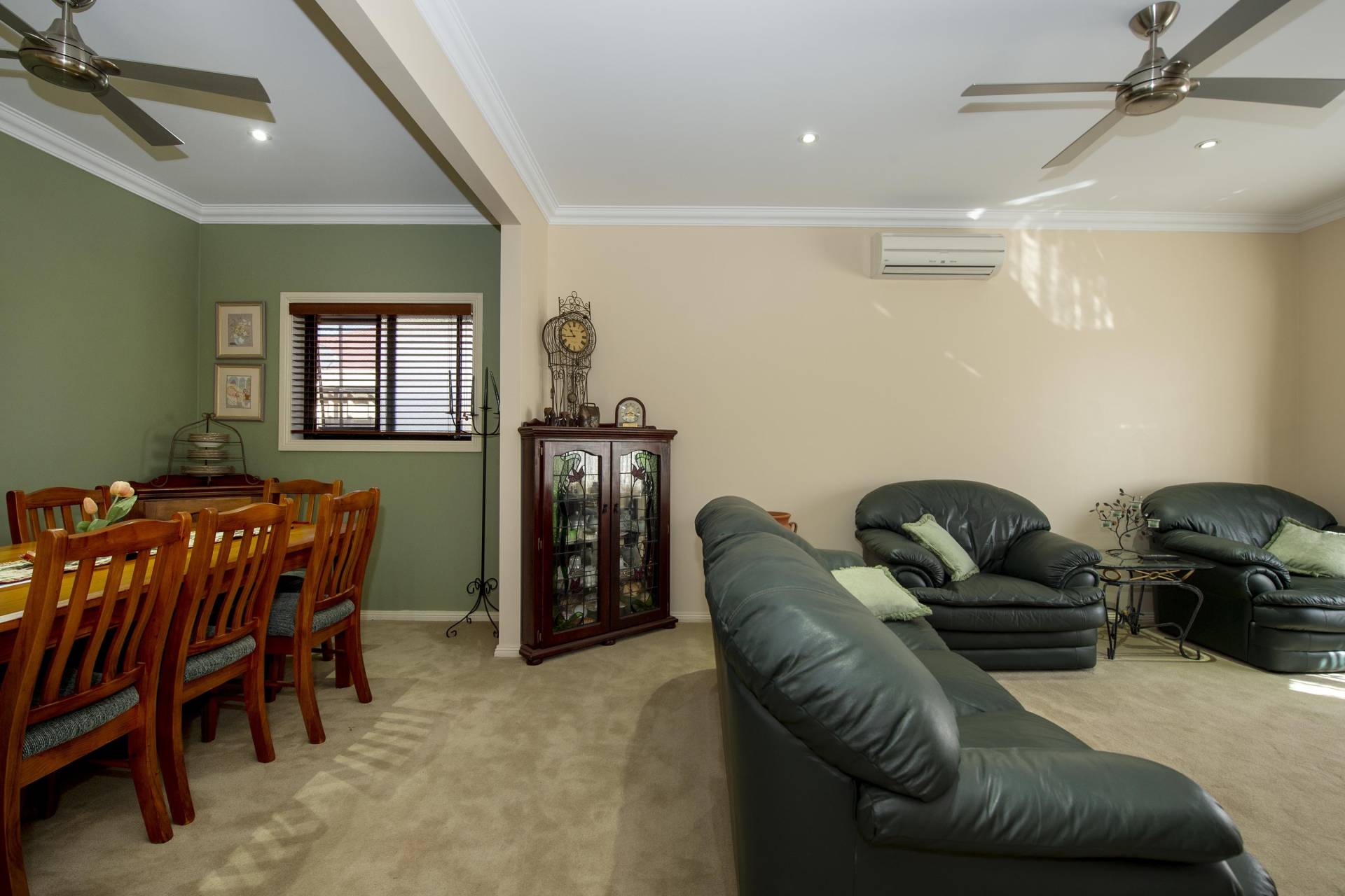 Step into a world of refined living in this stunning 2008 built brick veneer home. Boasting three generous bedrooms with plush carpeting and built-in robes, it offers both comfort and convenience. Two luxurious bathrooms with modern fixtures elevate your daily routine. The elegant formal dining area and two spacious living areas provide versatility for relaxation and entertaining.
