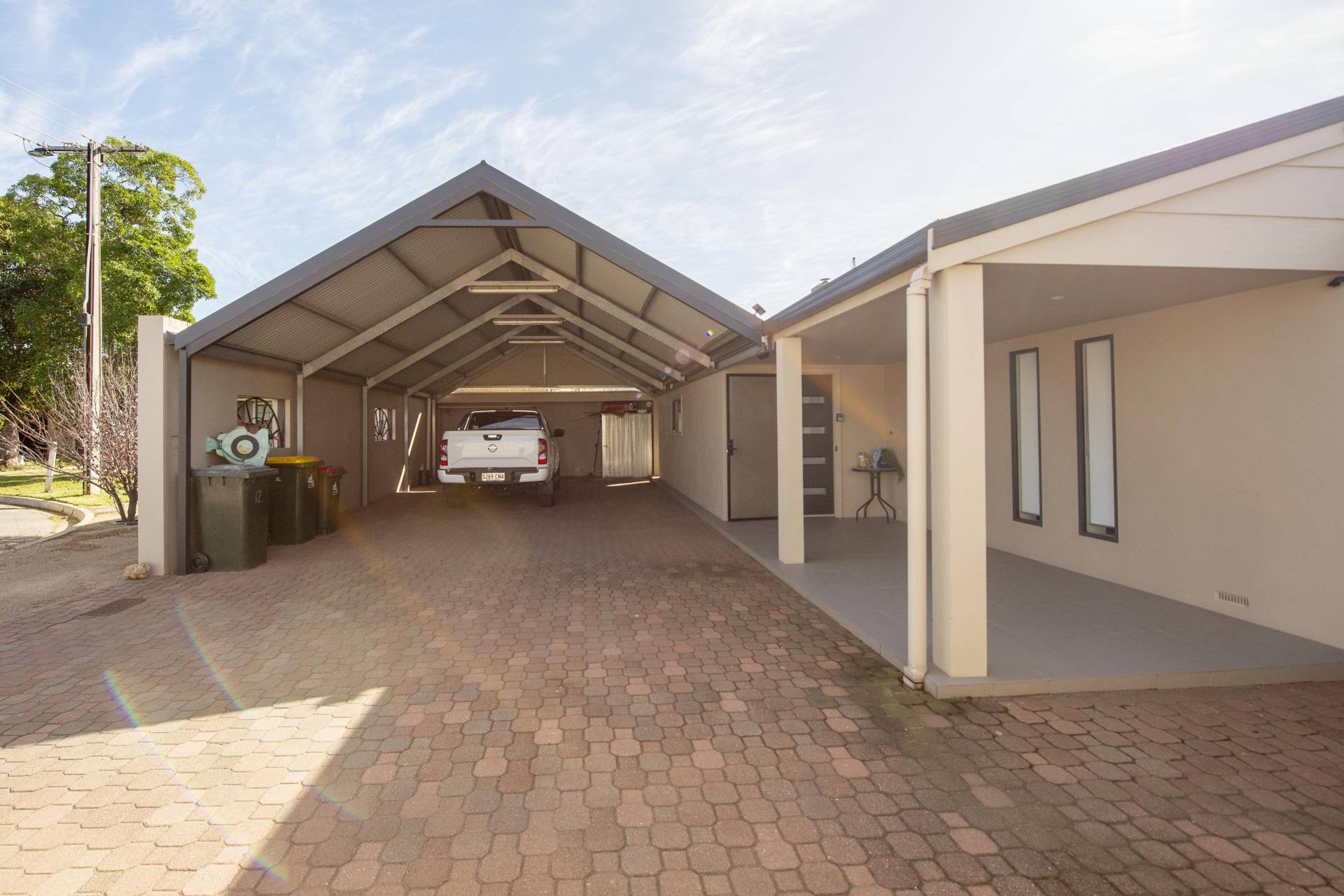 - Undercover parking for multiple vehicles/caravan or trailer with roller door access through to the shed