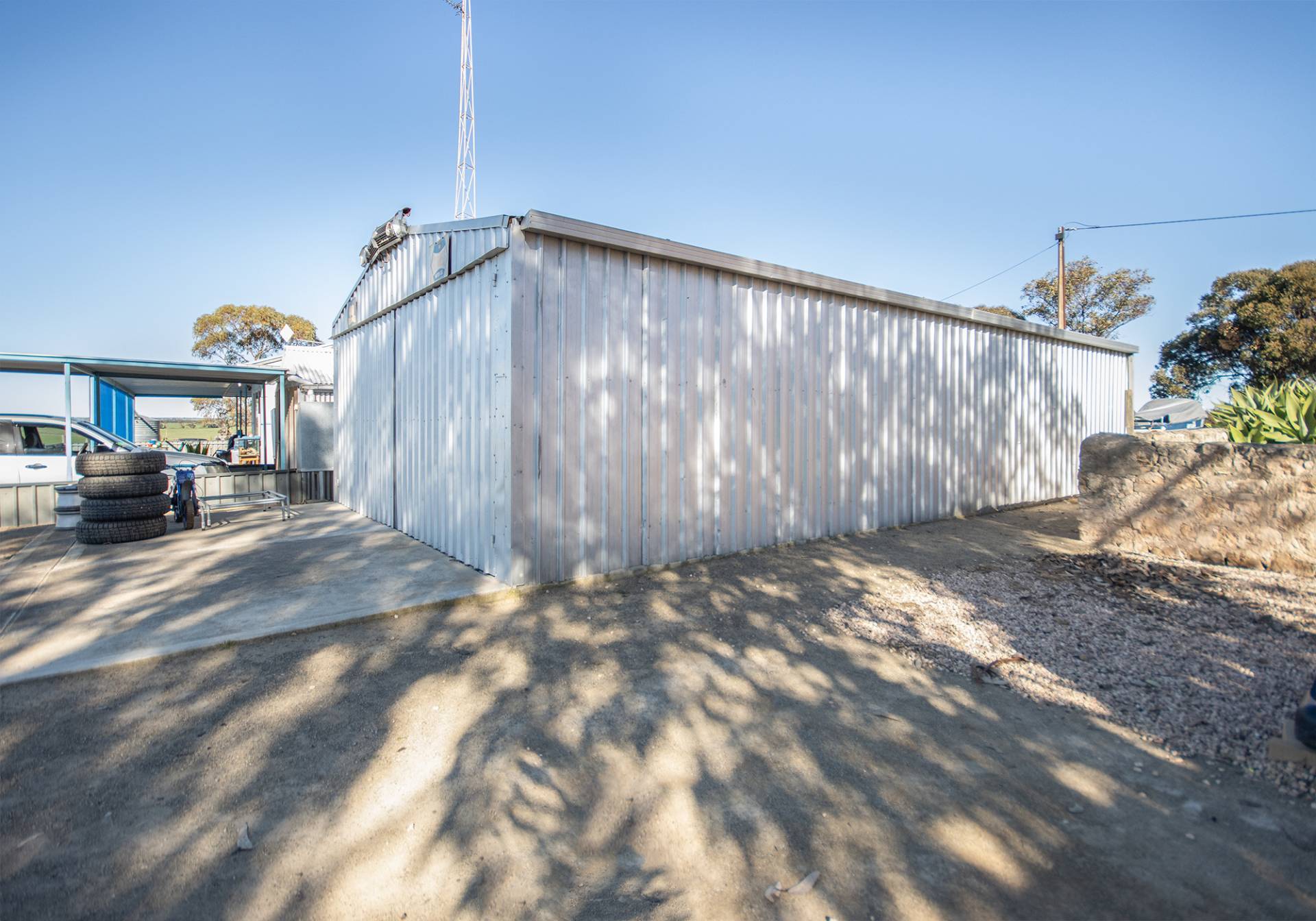 The sheds around this property include a machinery shed 12.5m x 18.6m x 3.6m with 2 sliding doors, machinery shed 12.5m x 19.4m x 4.2m with 3 sliding doors, concrete floor & power, hay shed, car garage 6m x 12m x 2.1m with 2 sliding doors, old stone shed with service pit, old pig shed, horse stables & stock yards, several rain water tanks & old boiler tank.