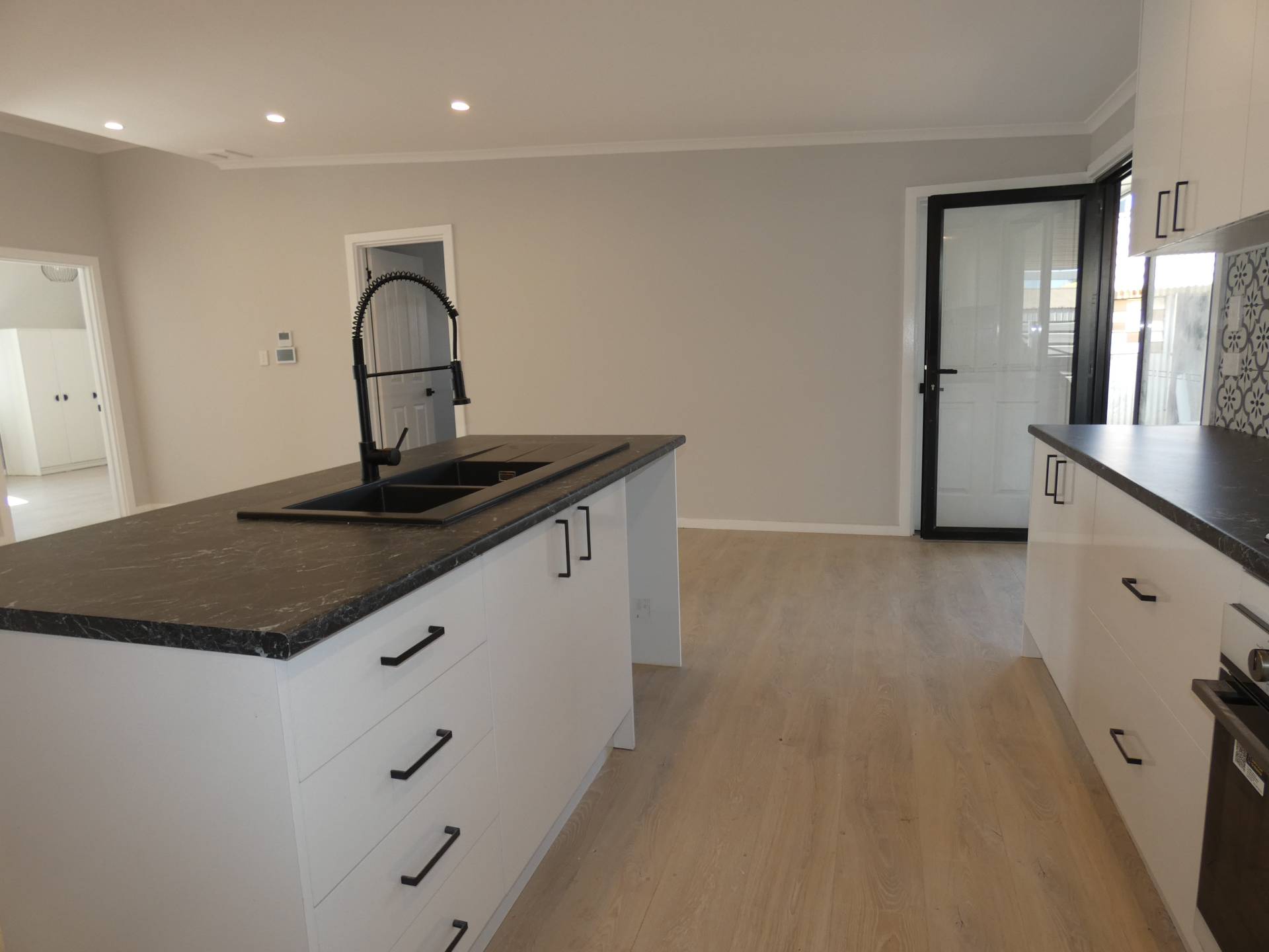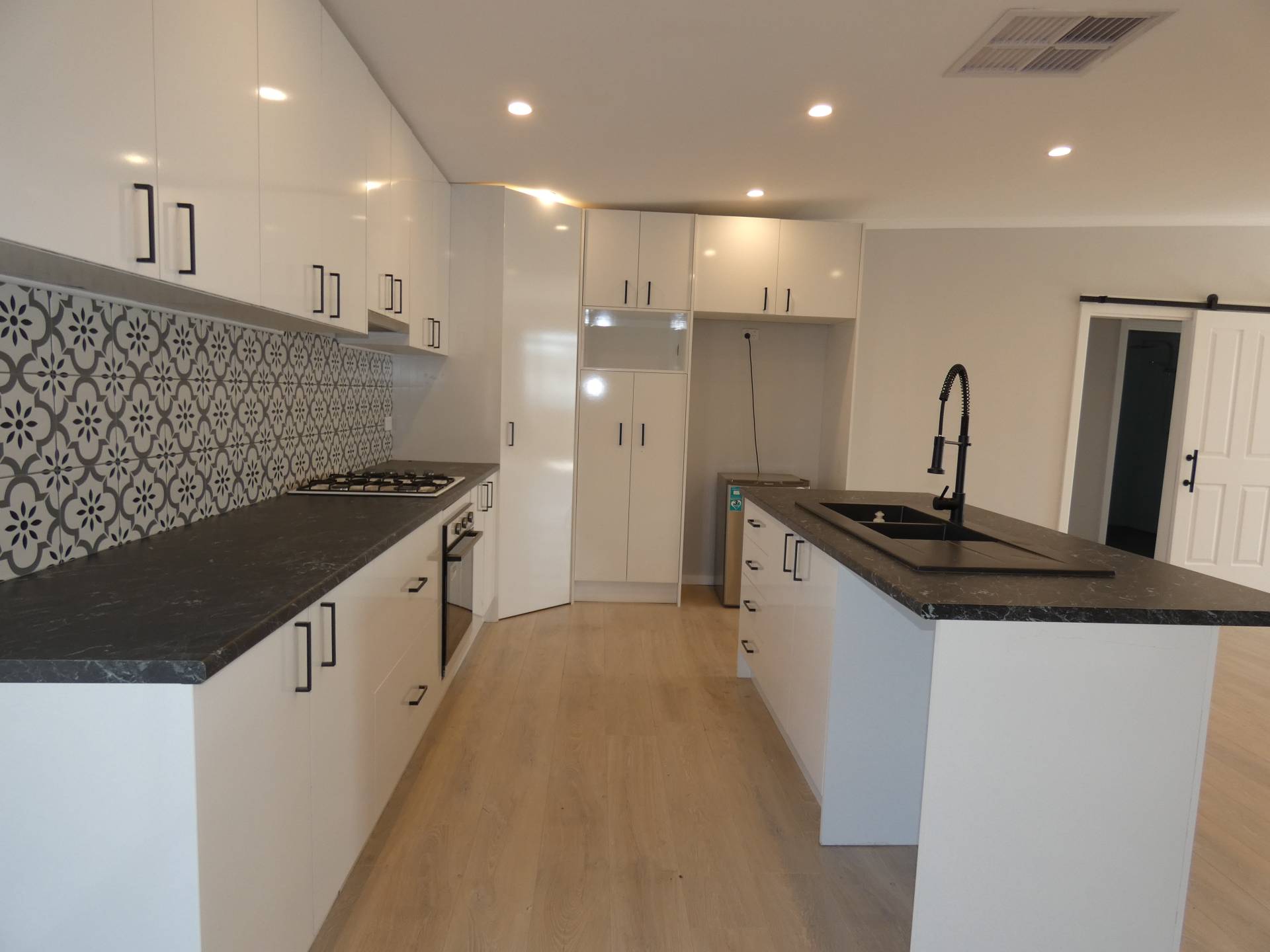 * Modern kitchen with ample bench and cupboard space with gas cooking
